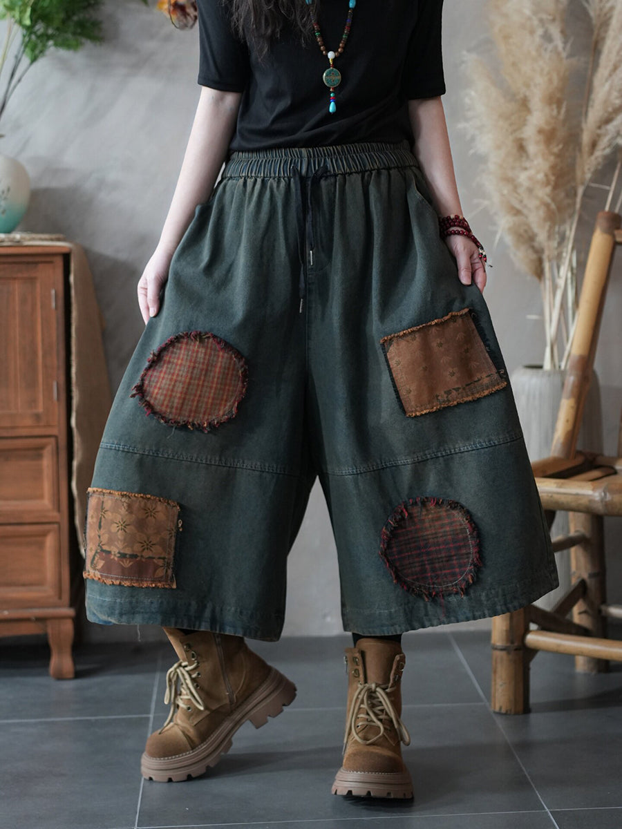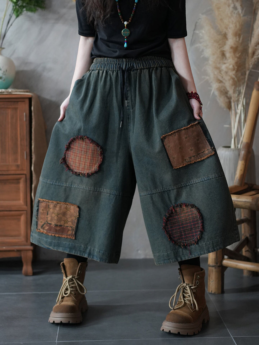 Calça Harem Feminina Vintage de Primavera em Jeans com Recortes