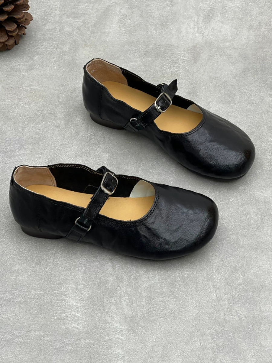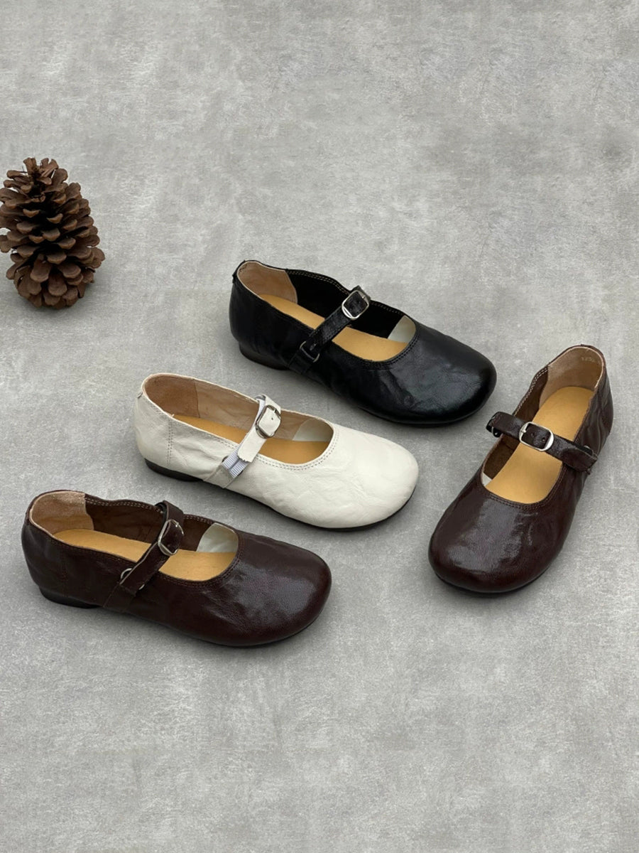 Sapatos femininos de salto baixo em couro legítimo estilo vintage para a primavera