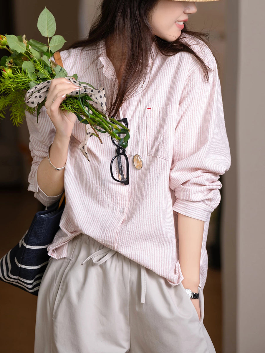 Conjunto feminino de primavera com estampa vintage de listras, 100% algodão.