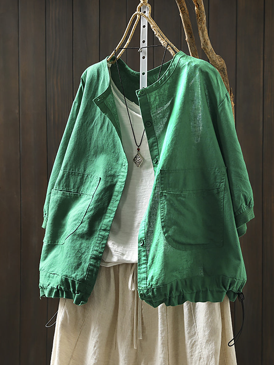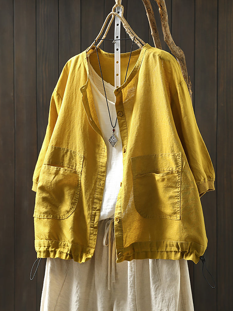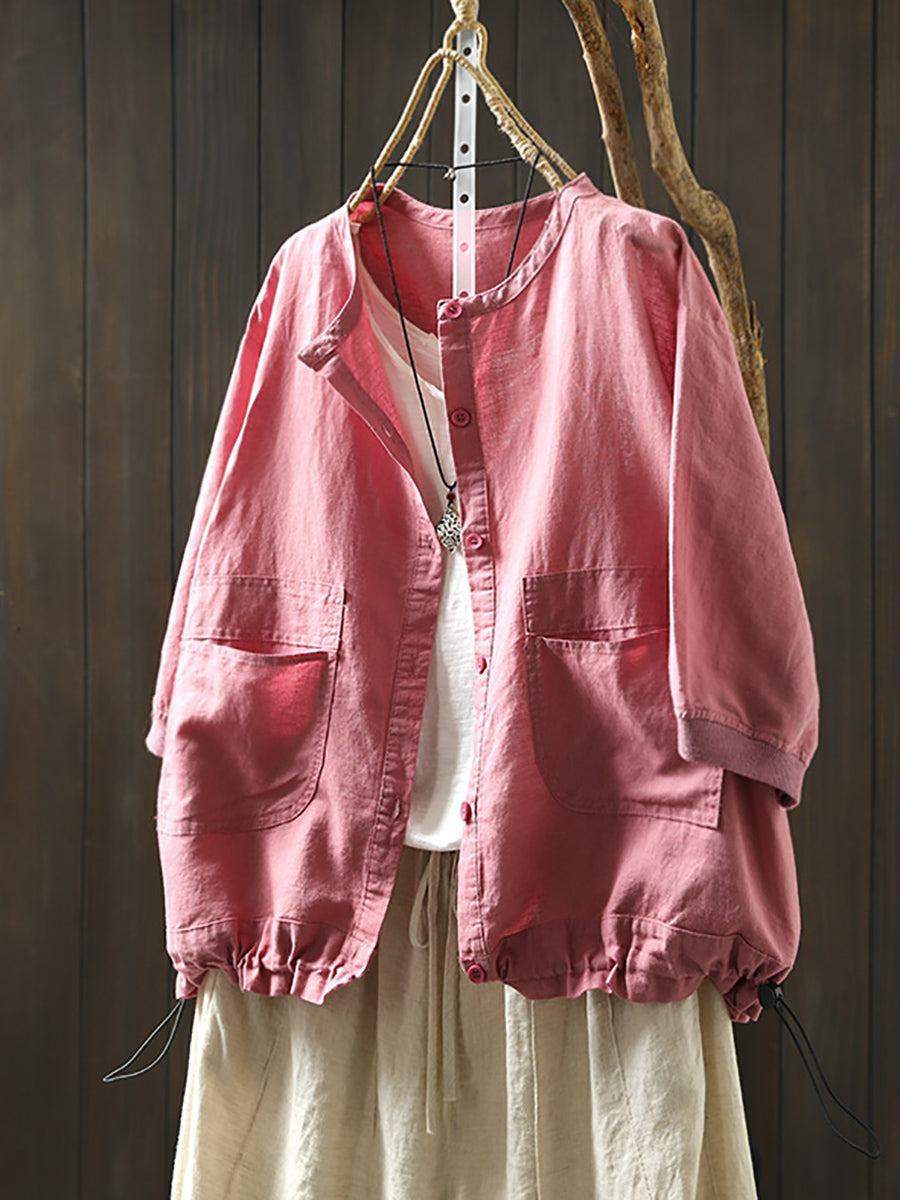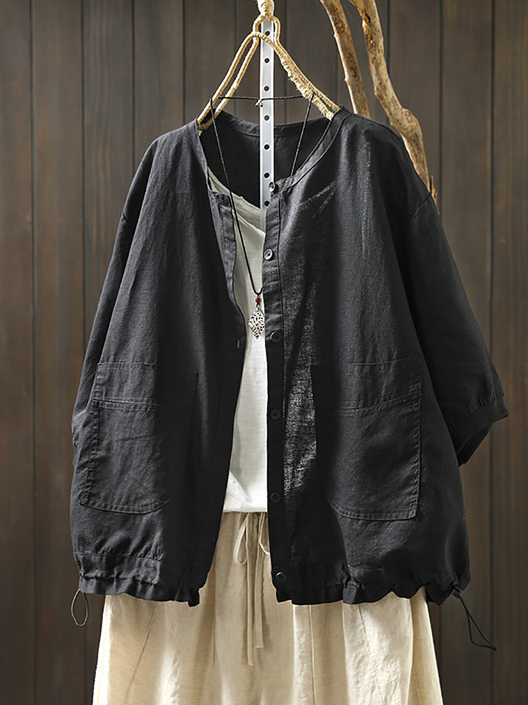 Camisa feminina de verão Artsy Pure Color com gola redonda