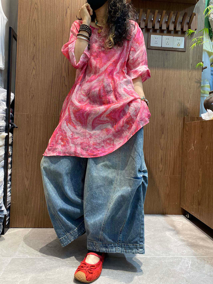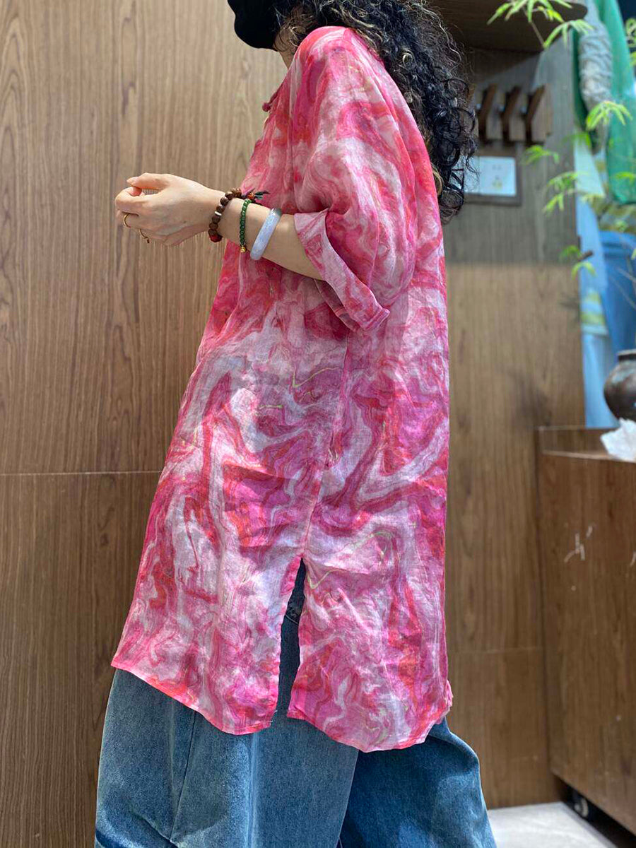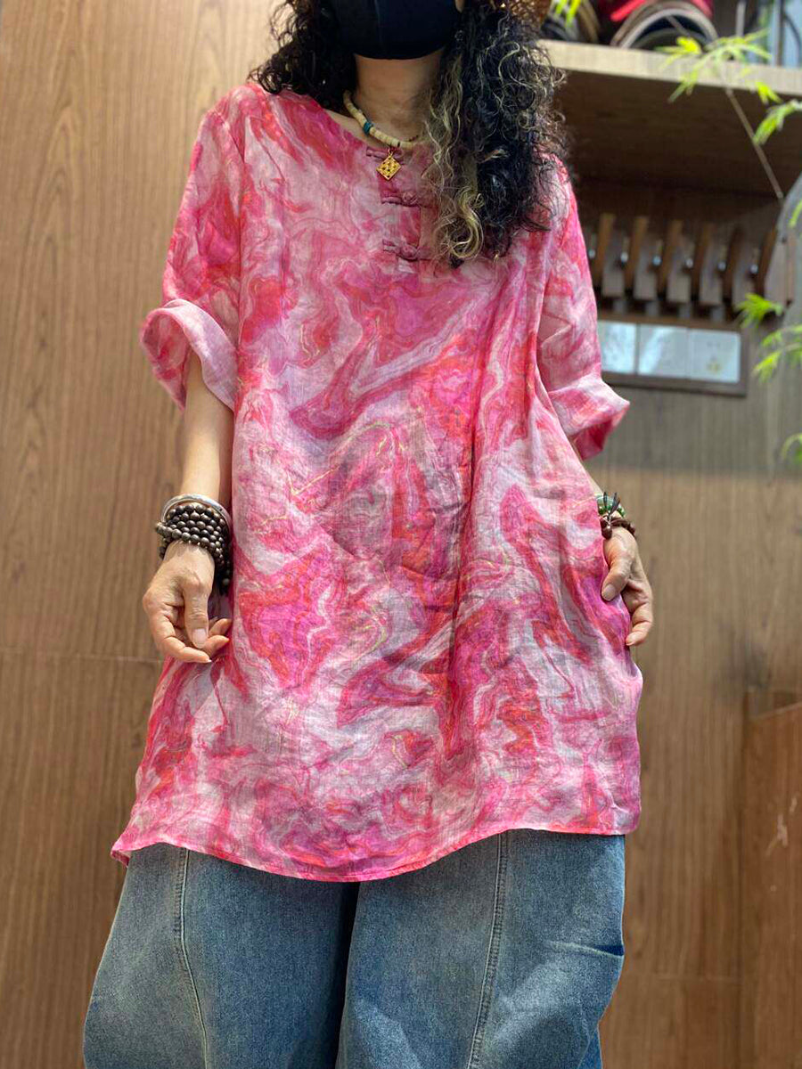 Blusa feminina de verão em rami com estampa tie-dye artística