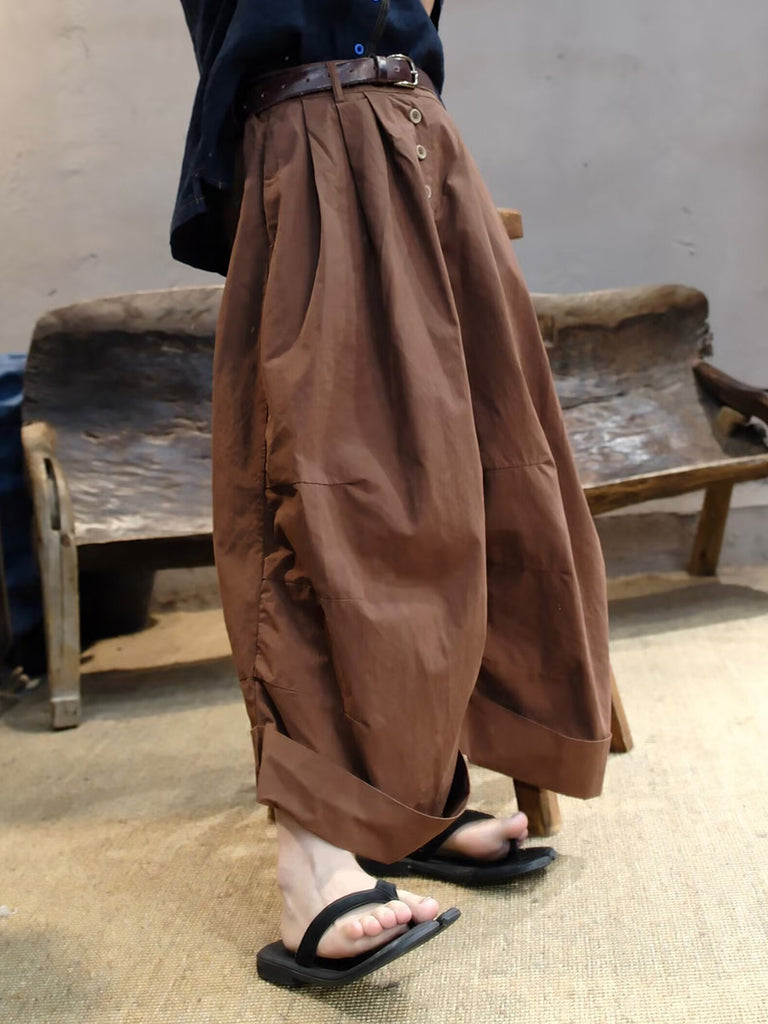 Calças femininas casuais de verão em algodão com pernas largas
