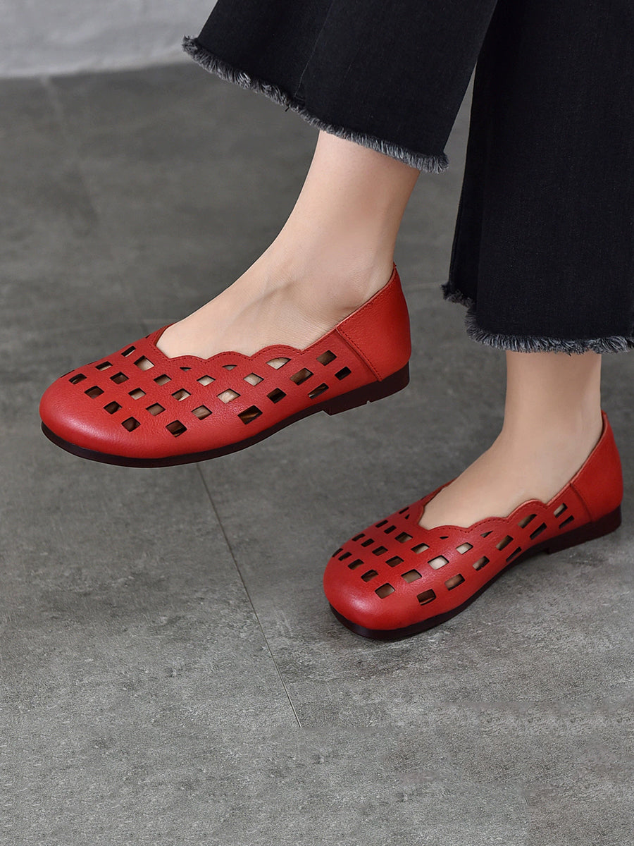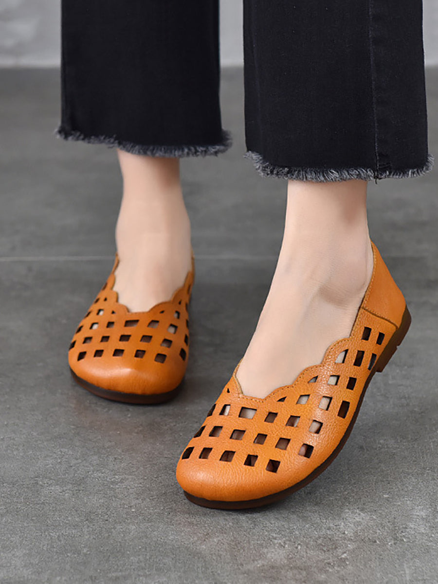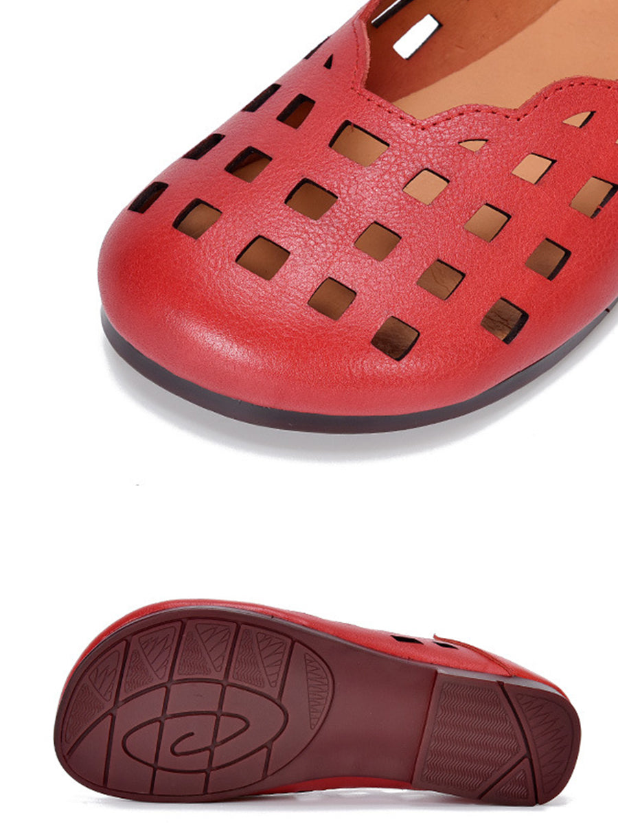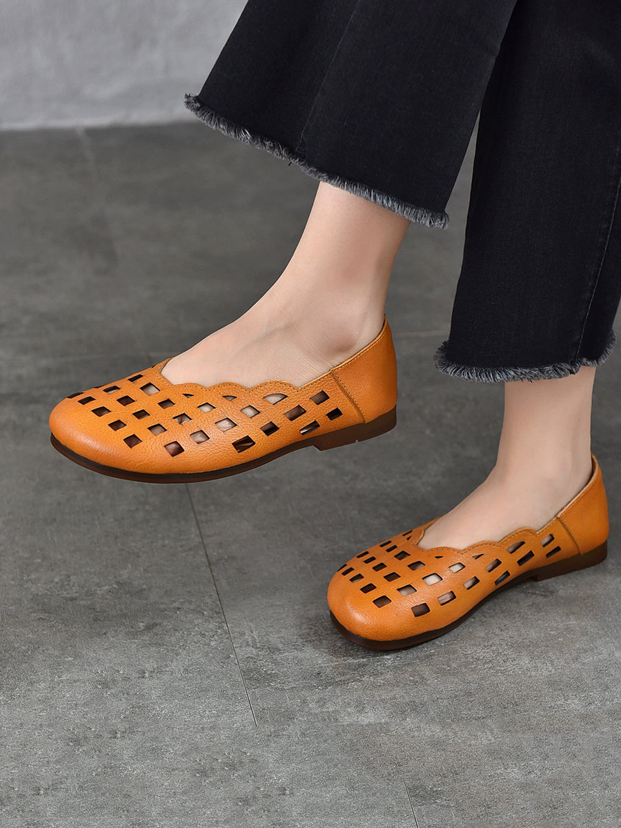 Sandálias rasteiras femininas de couro legítimo para o verão.