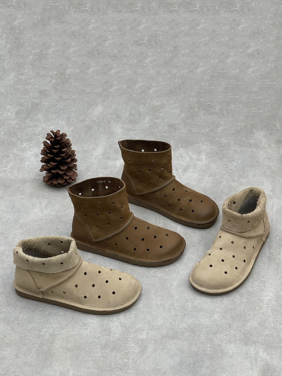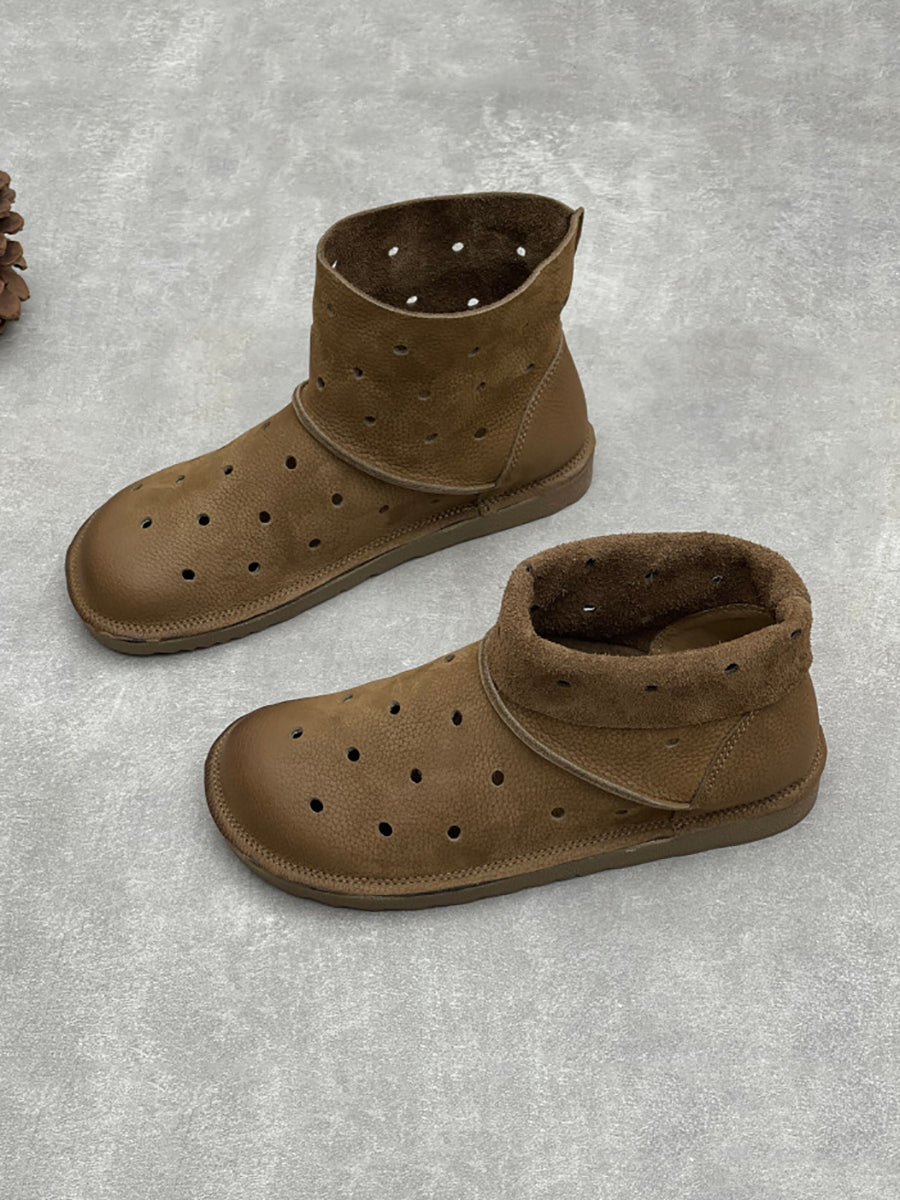 Botas/Sandálias Femininas de Verão Casuais em Couro Genuíno com Furos