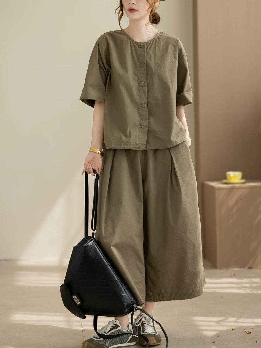 Conjuntos femininos de verão casuais em algodão de cor lisa.