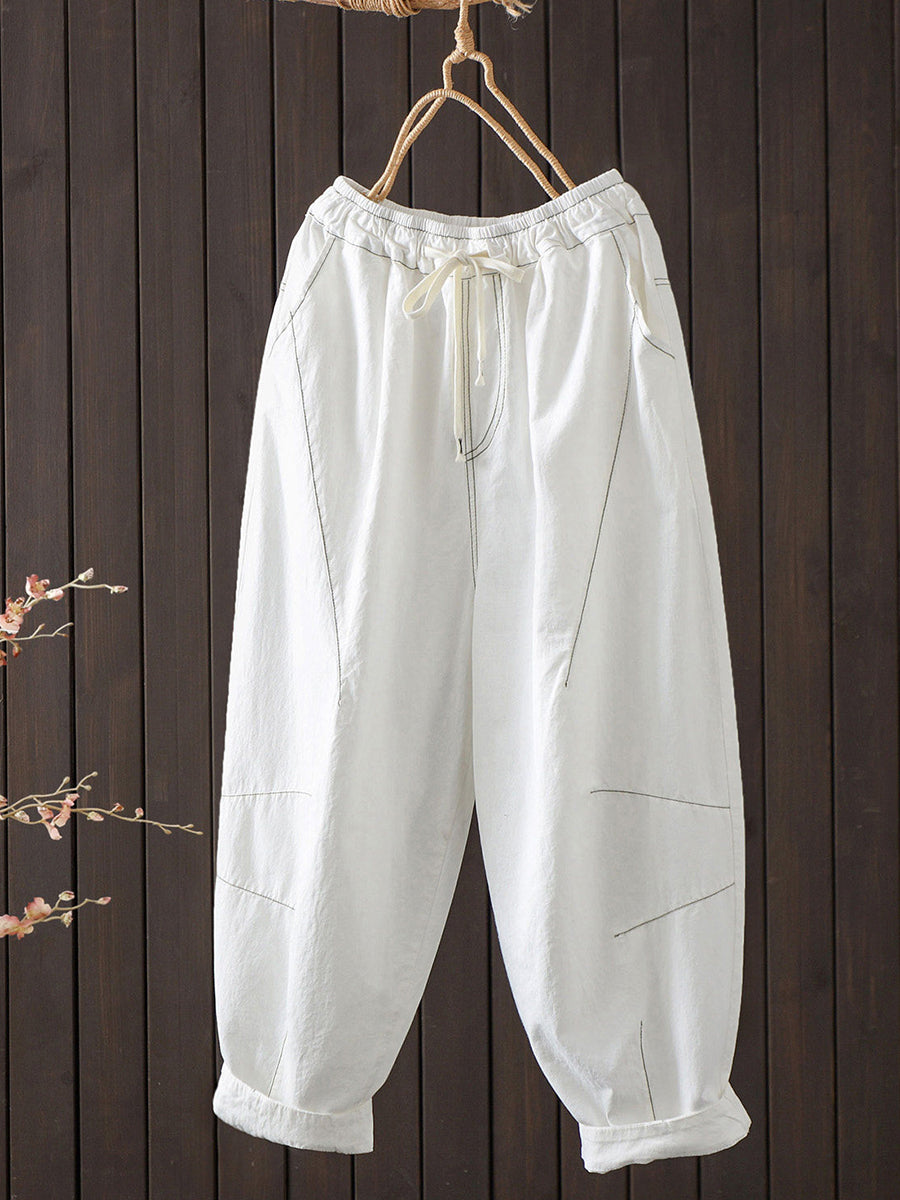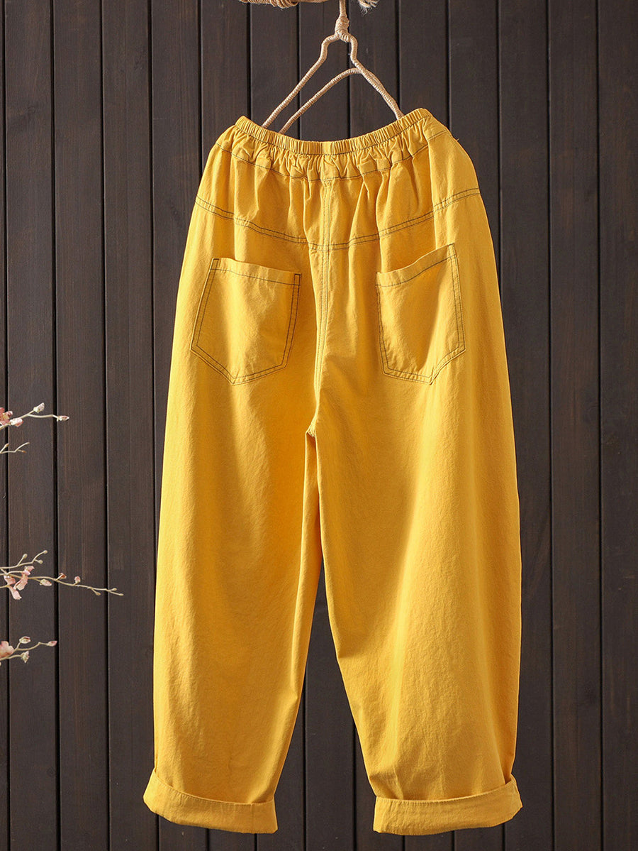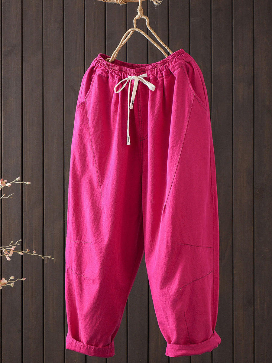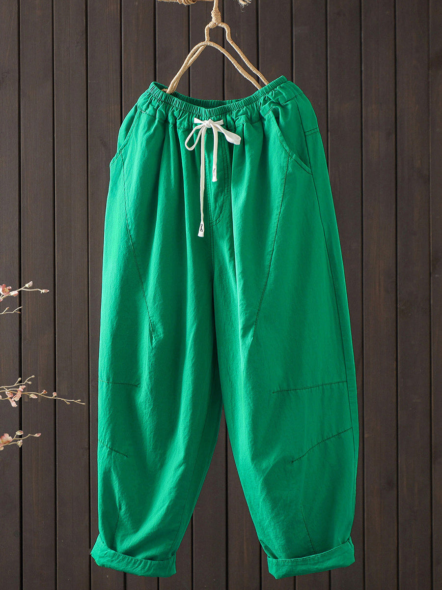 Calça Harem Feminina Casual de Verão em Cor Lisa