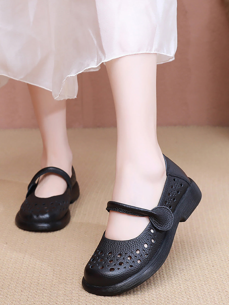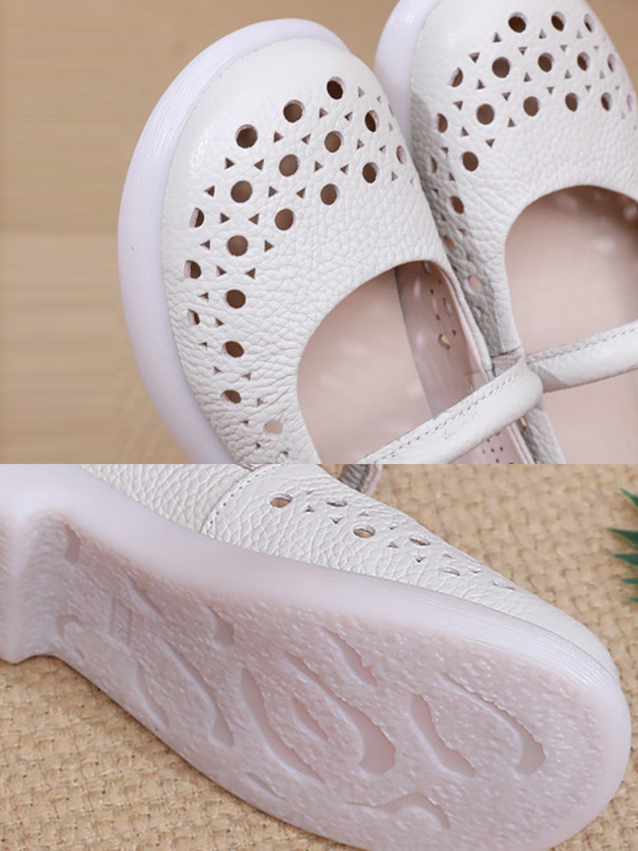 Sapatos femininos de verão em couro legítimo, sapatos baixos.