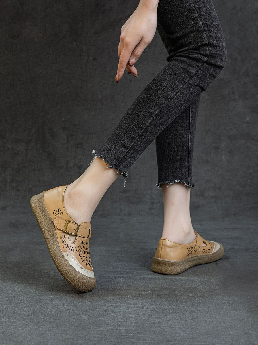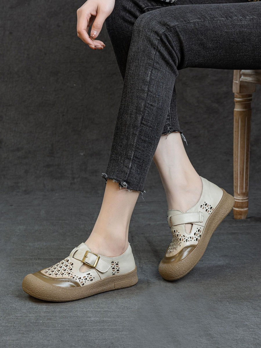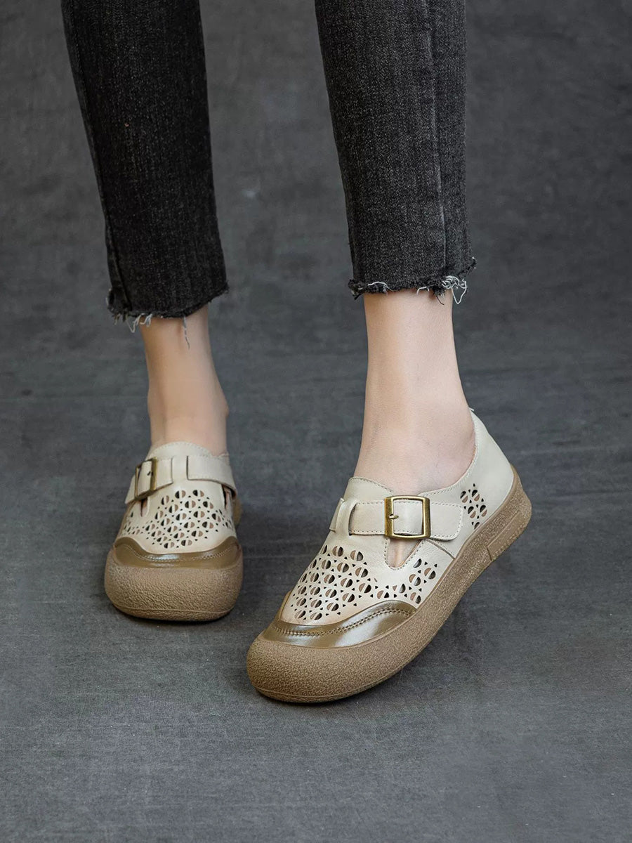 Sapatos femininos de verão em couro legítimo, sapatos baixos.