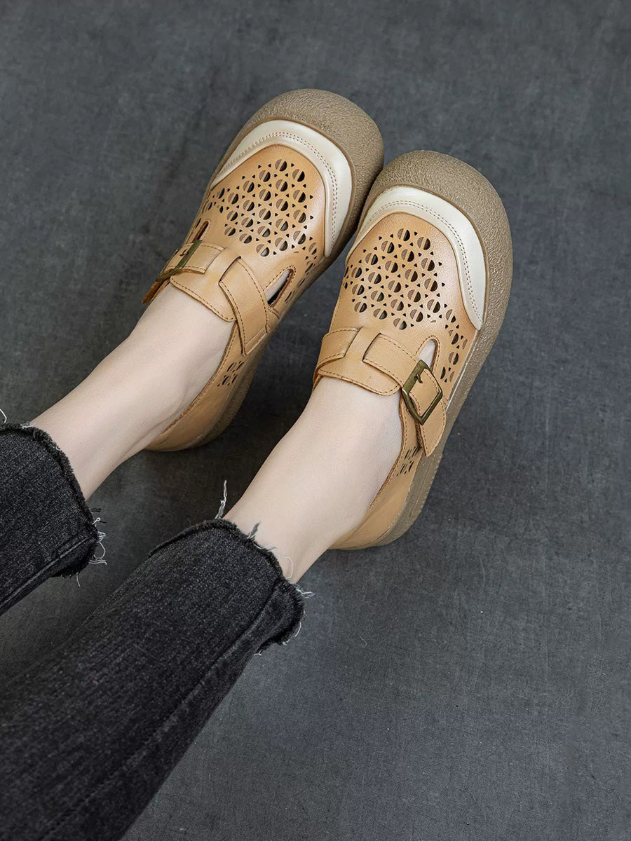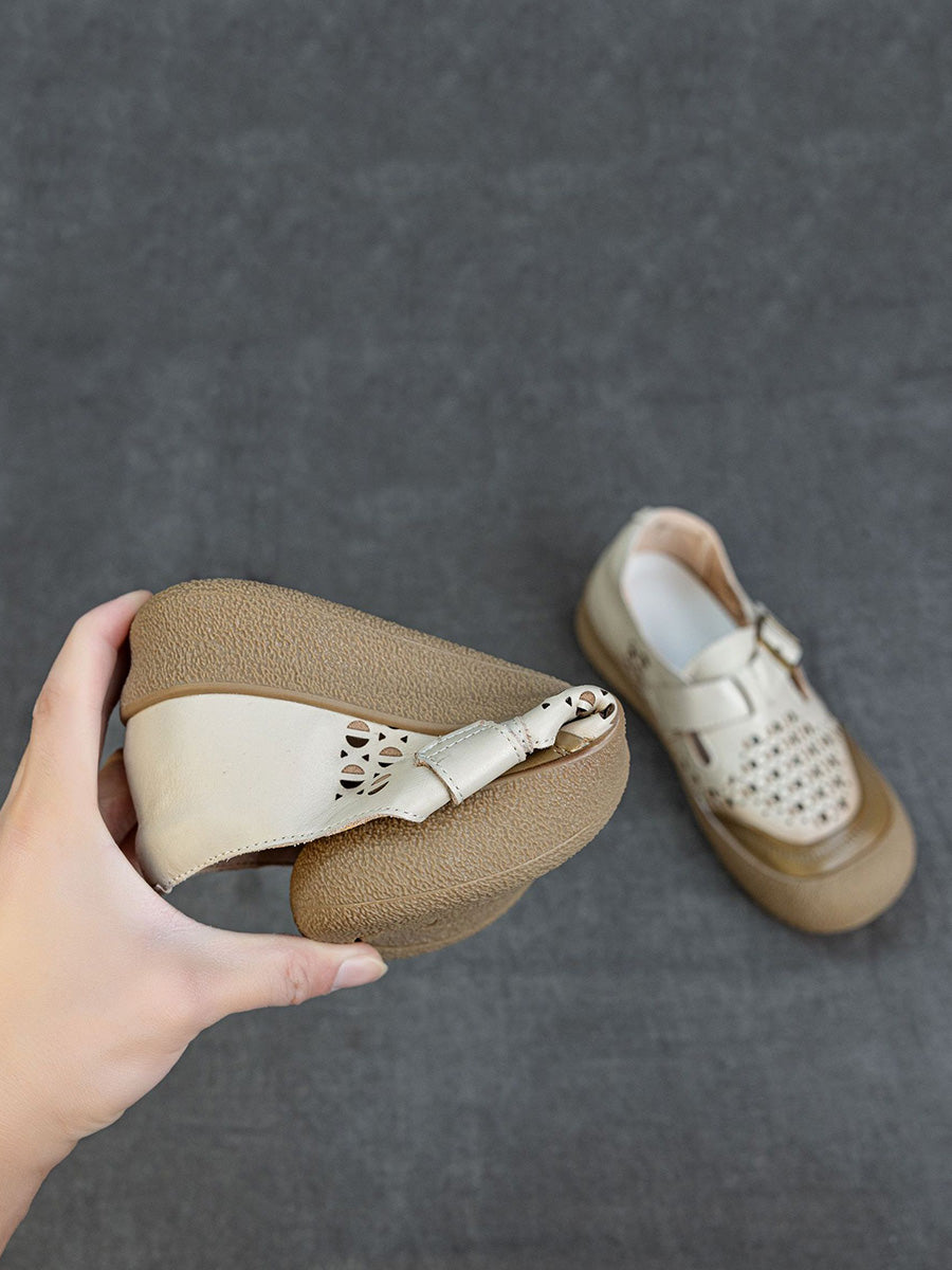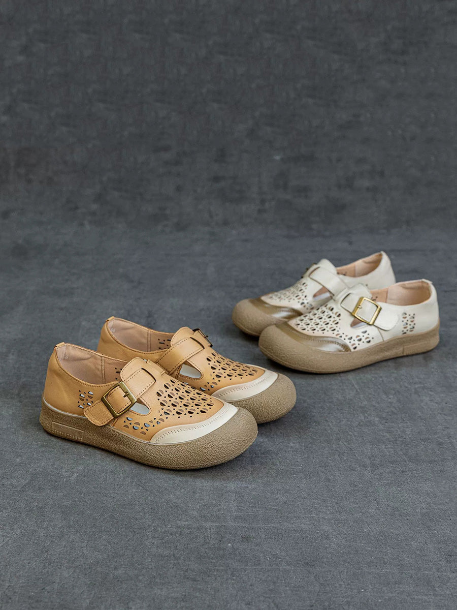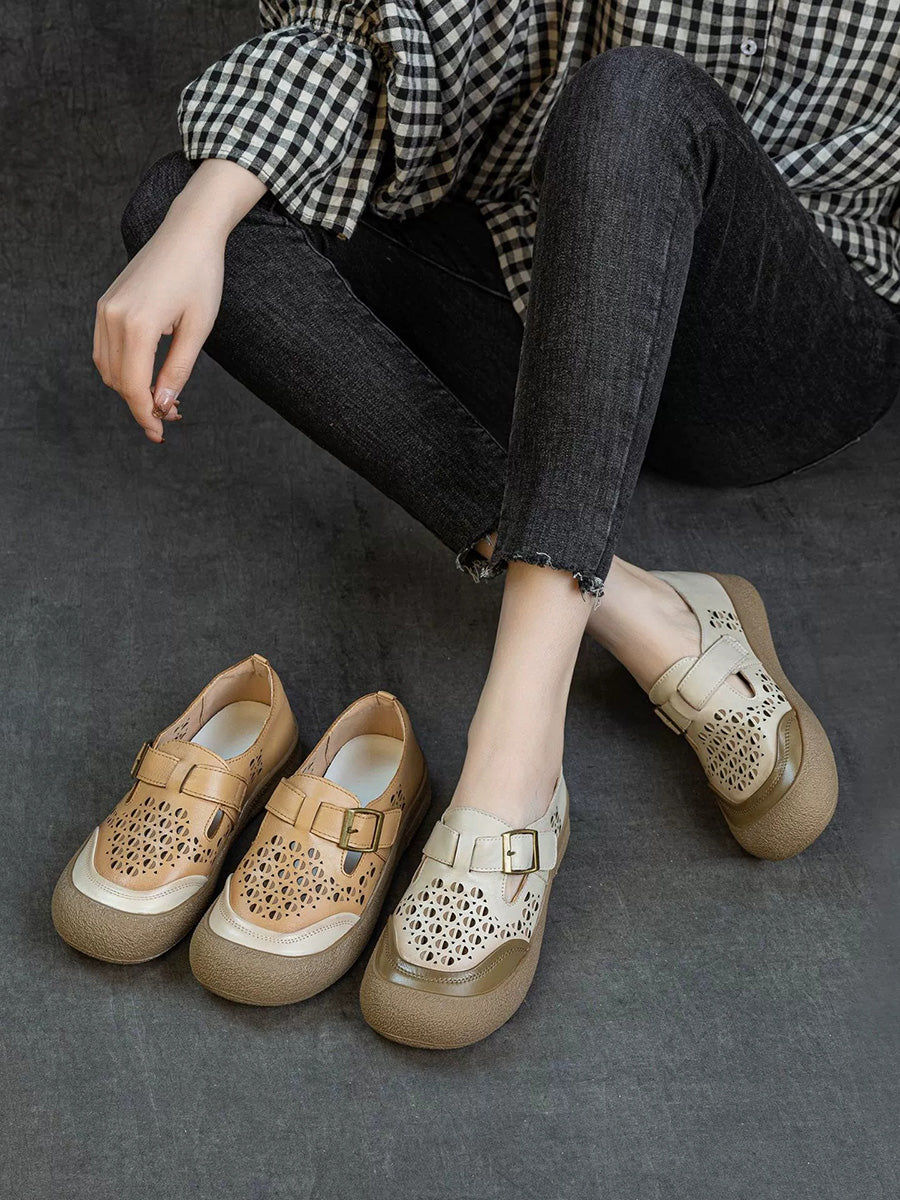 Sapatos femininos de verão em couro legítimo, sapatos baixos.