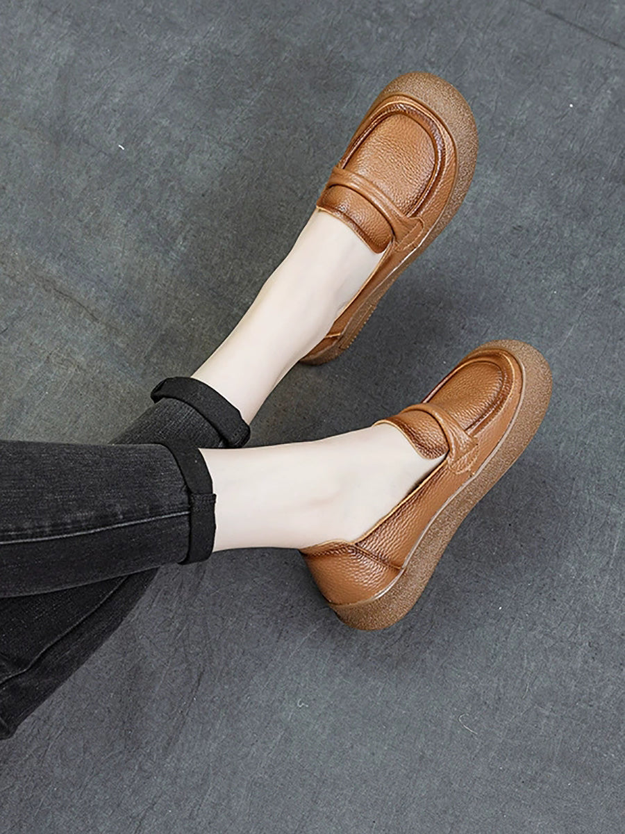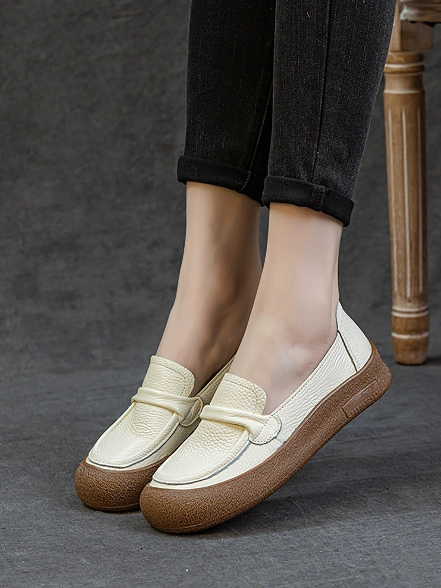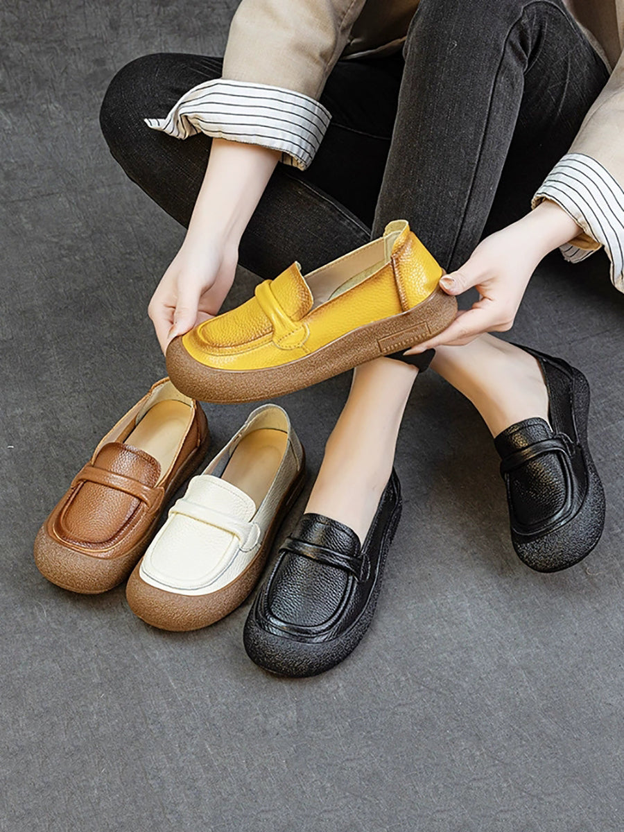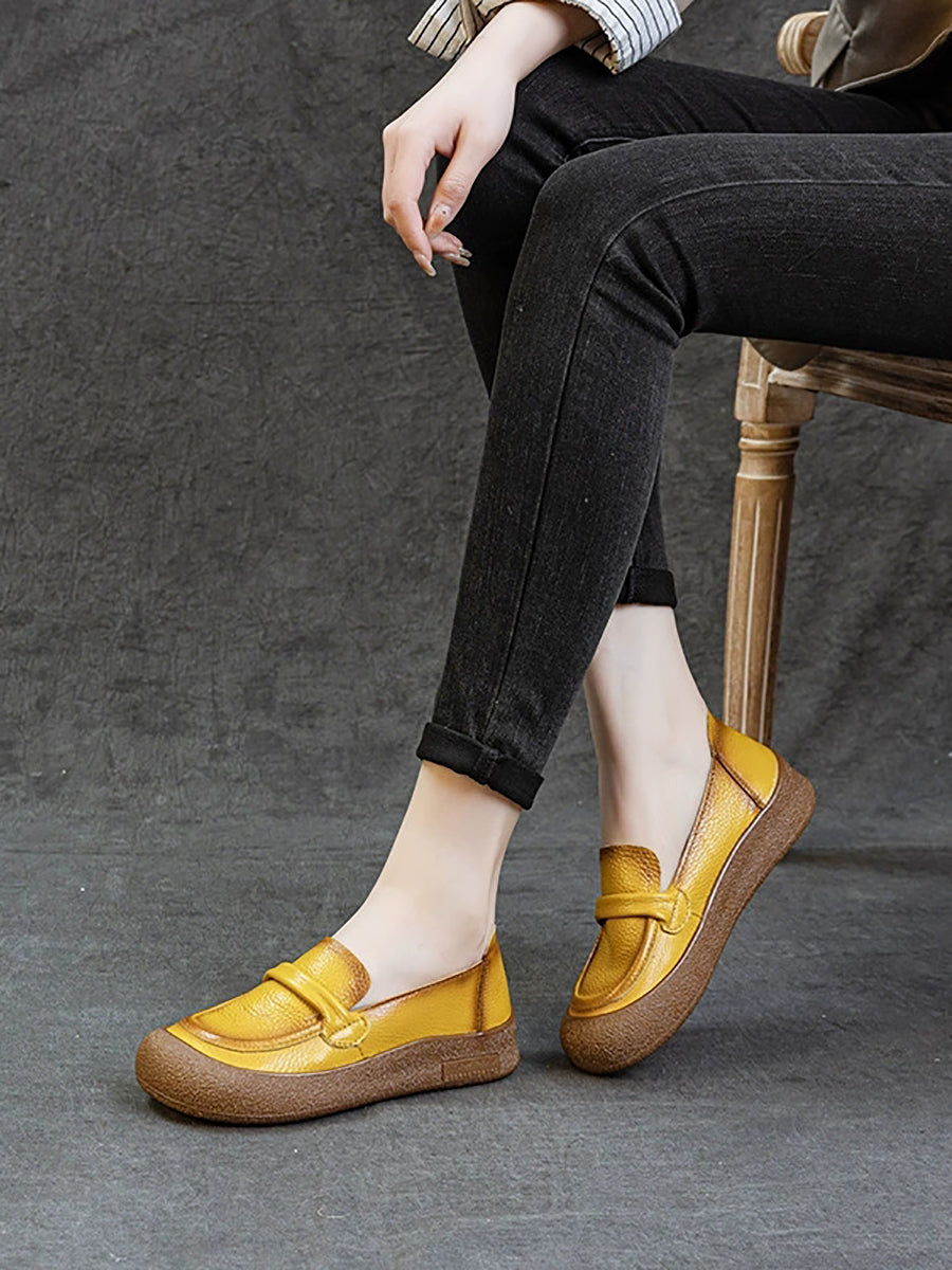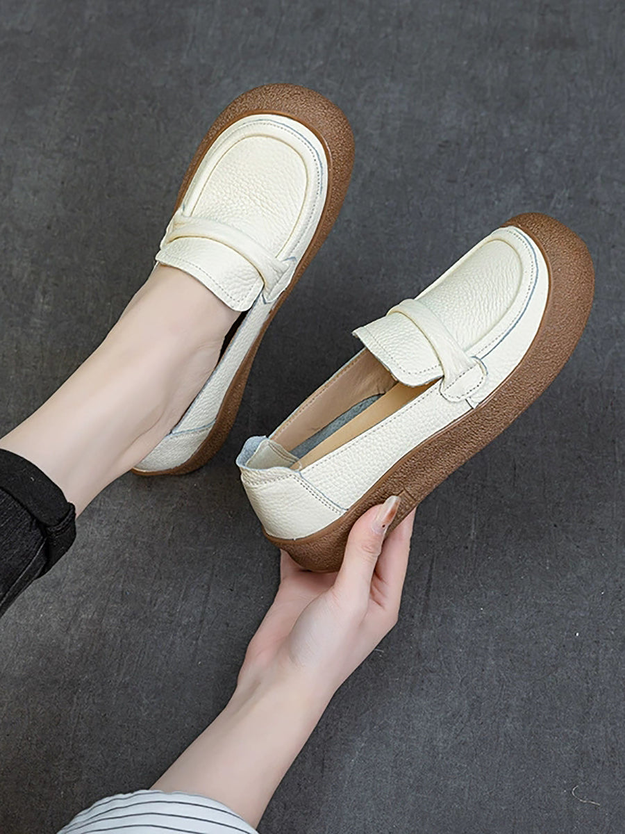 Sapatos femininos de verão em couro legítimo, sapatos baixos.