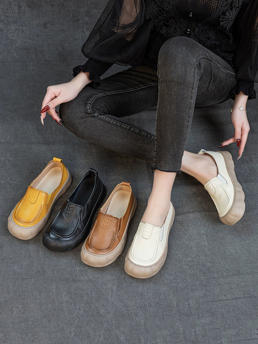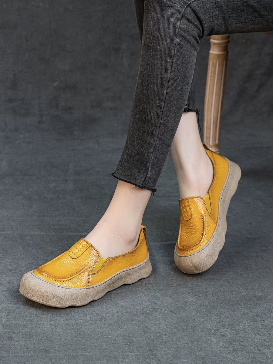 Sapatos femininos de verão em couro legítimo, sapatos baixos.