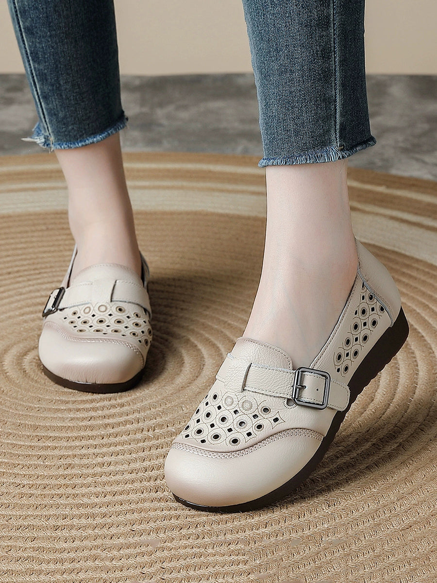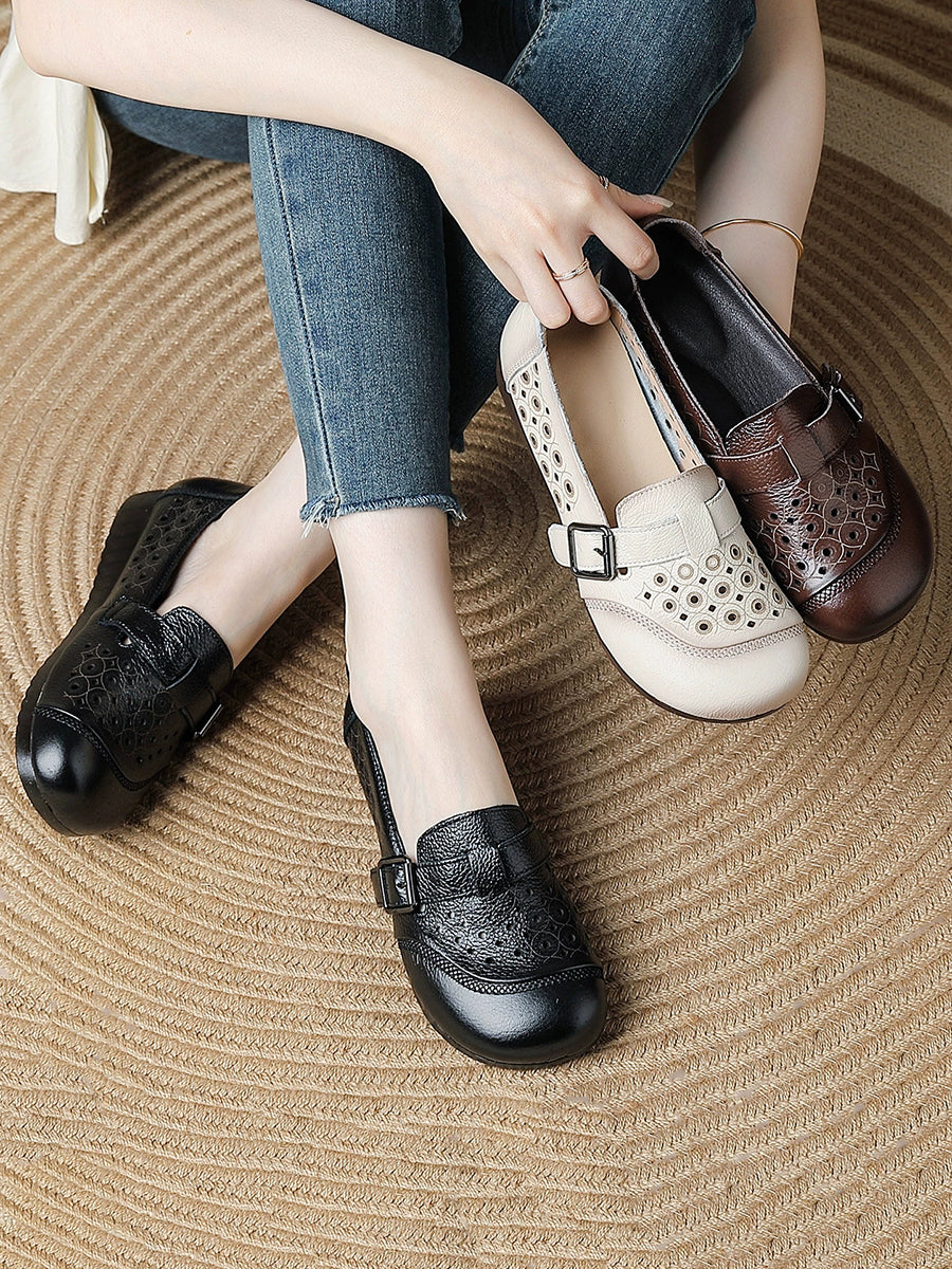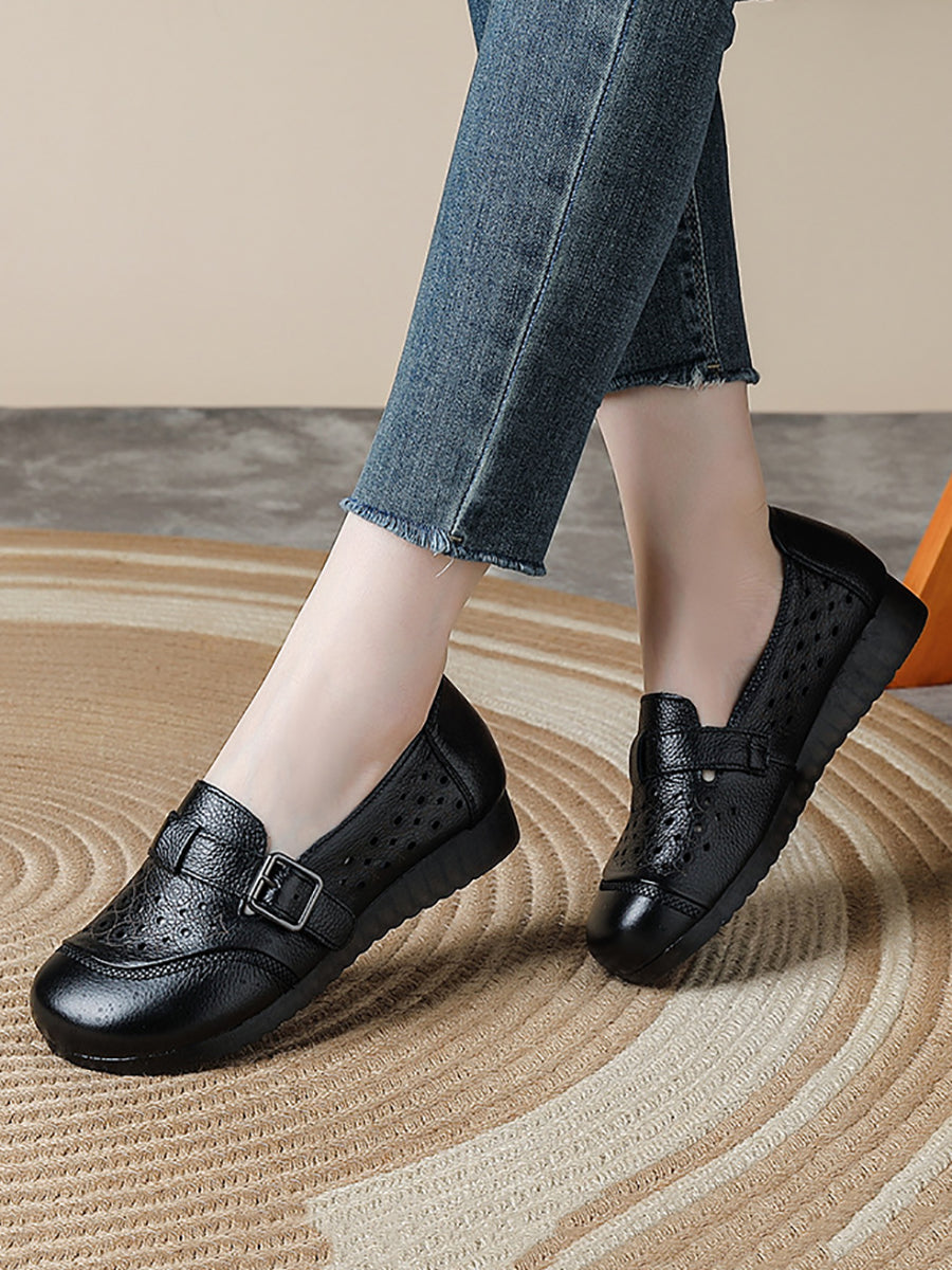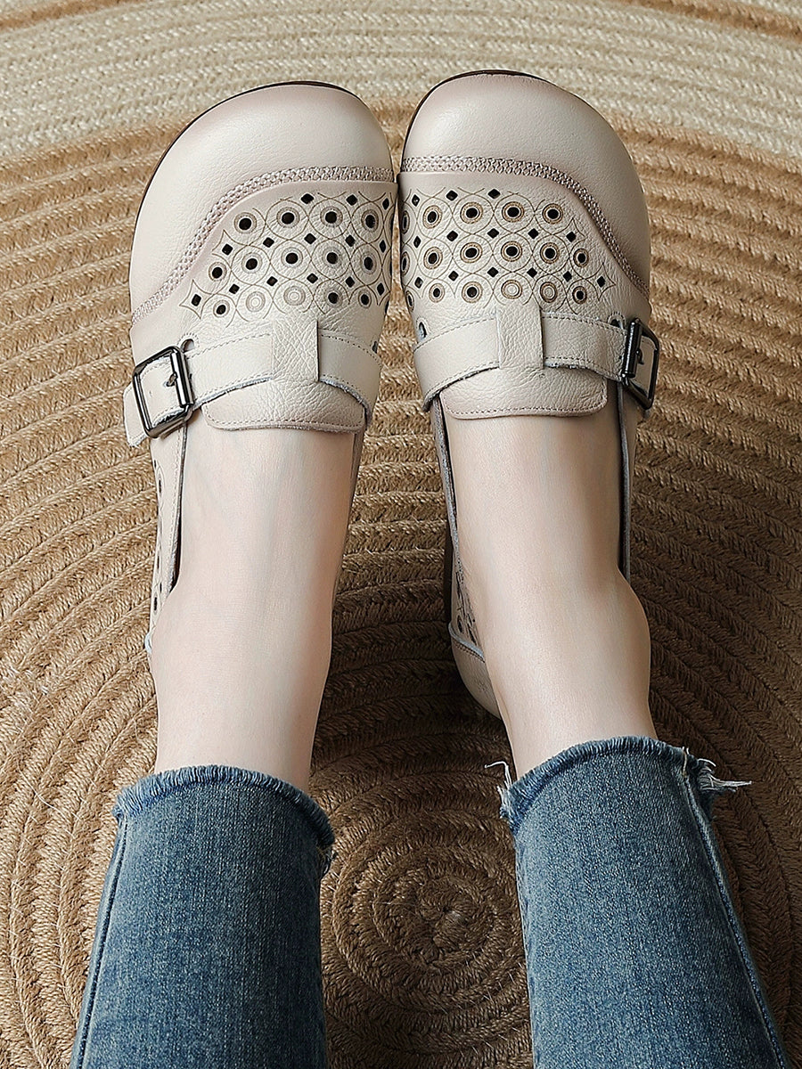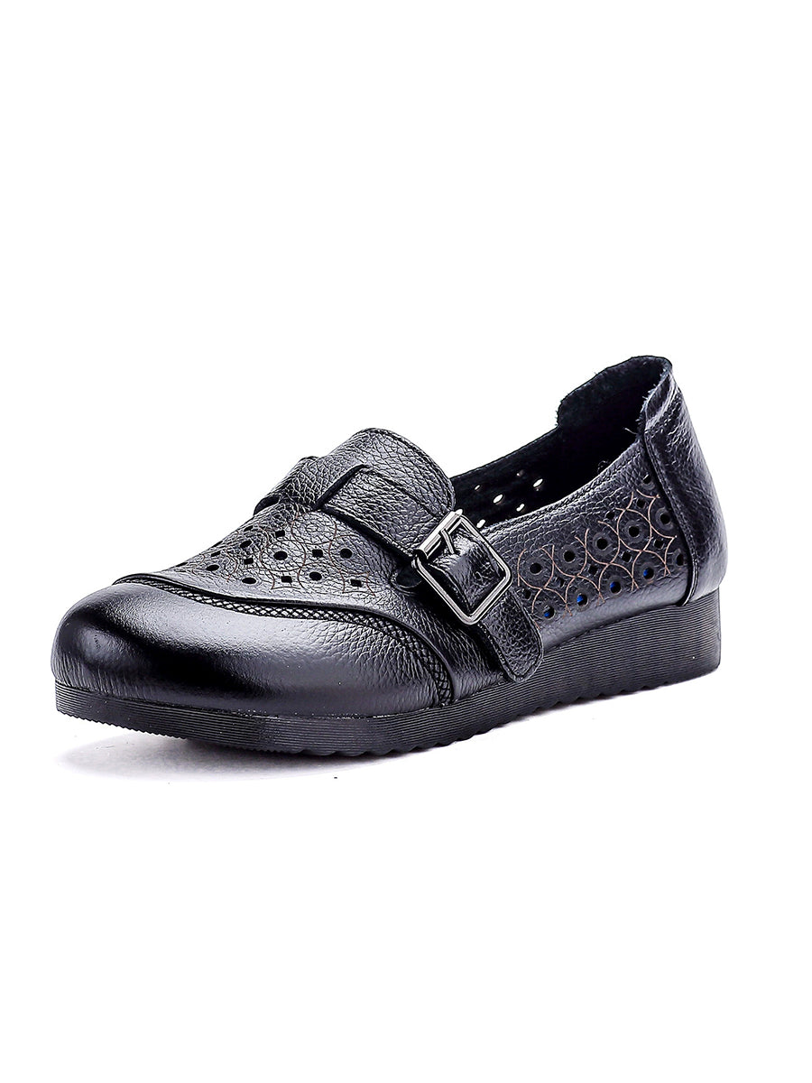 Sapatos femininos de verão em couro legítimo com salto baixo