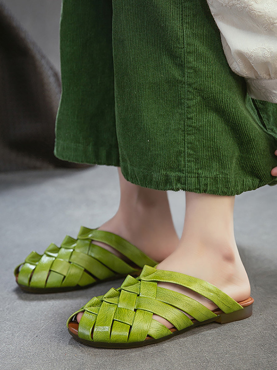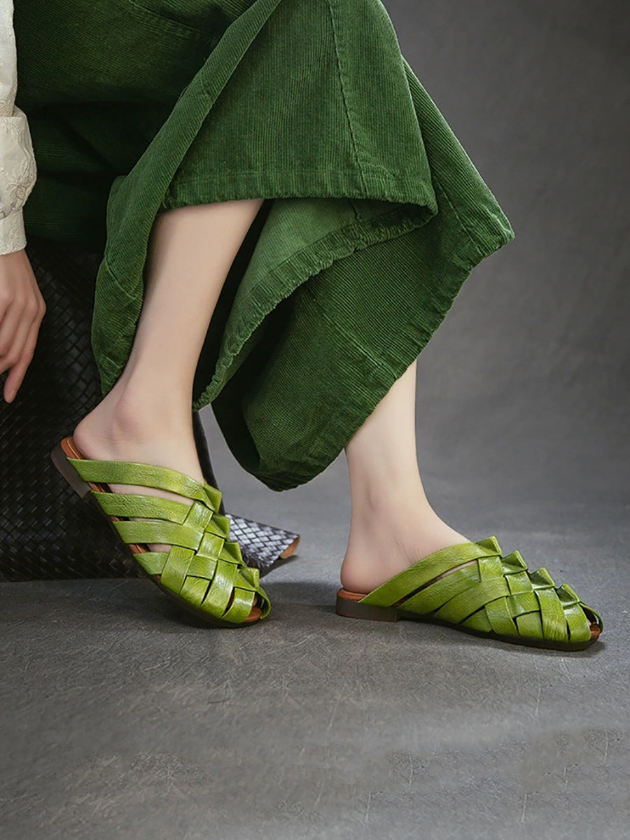 Chinelo feminino de verão em couro trançado