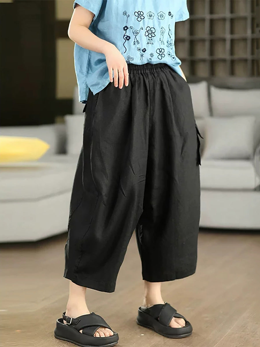 Calça Harem Feminina de Verão em Linho 100% Lisa, Cor Sólida