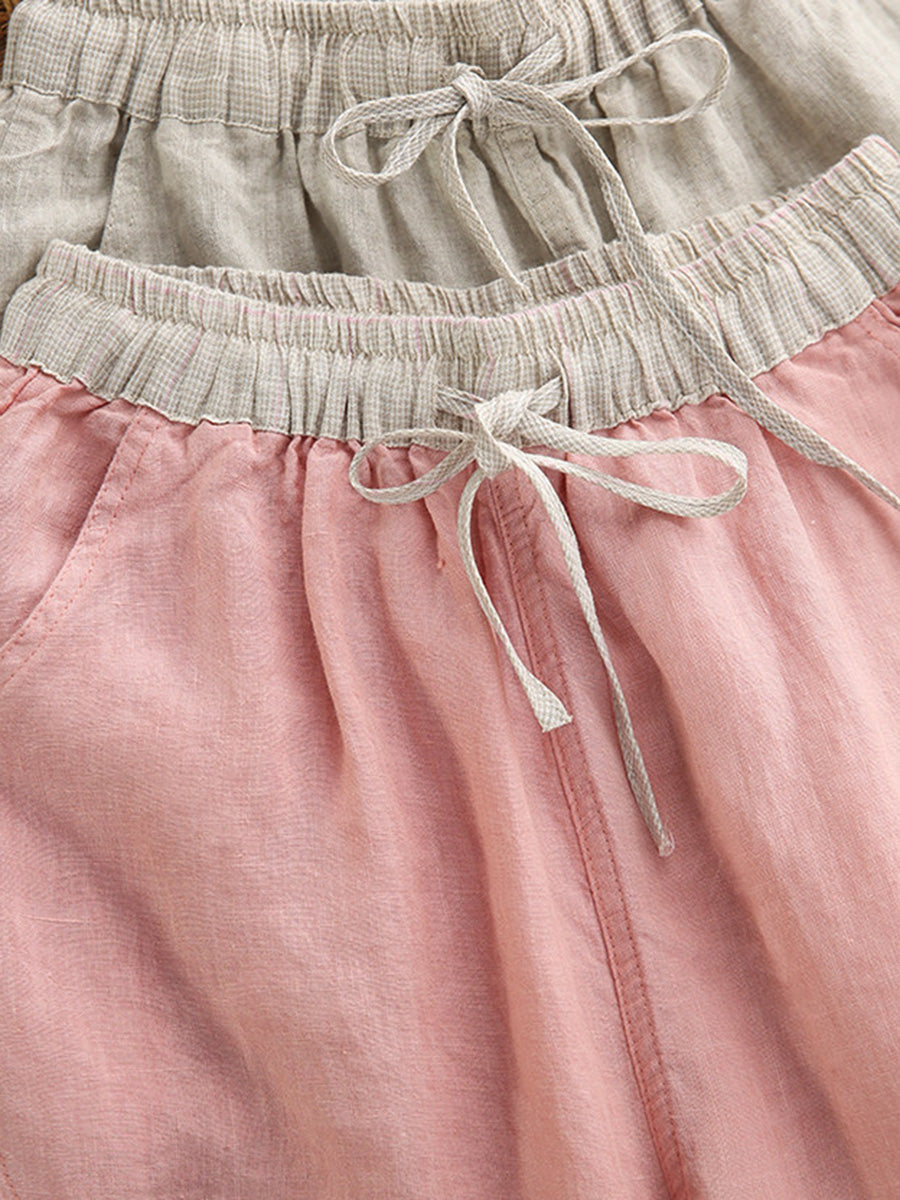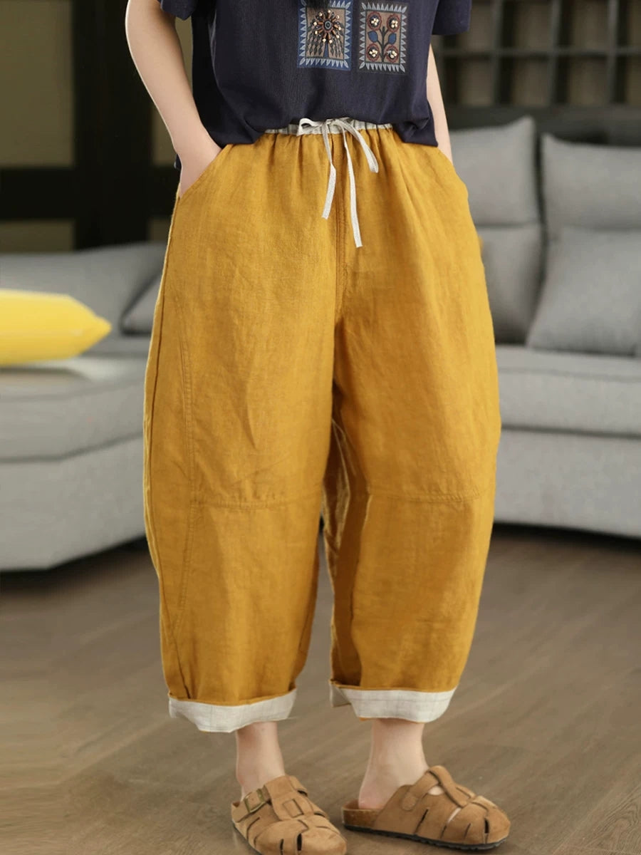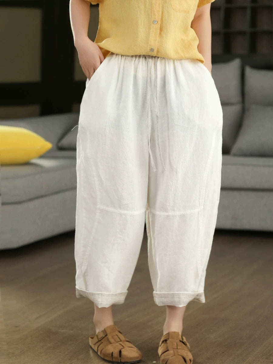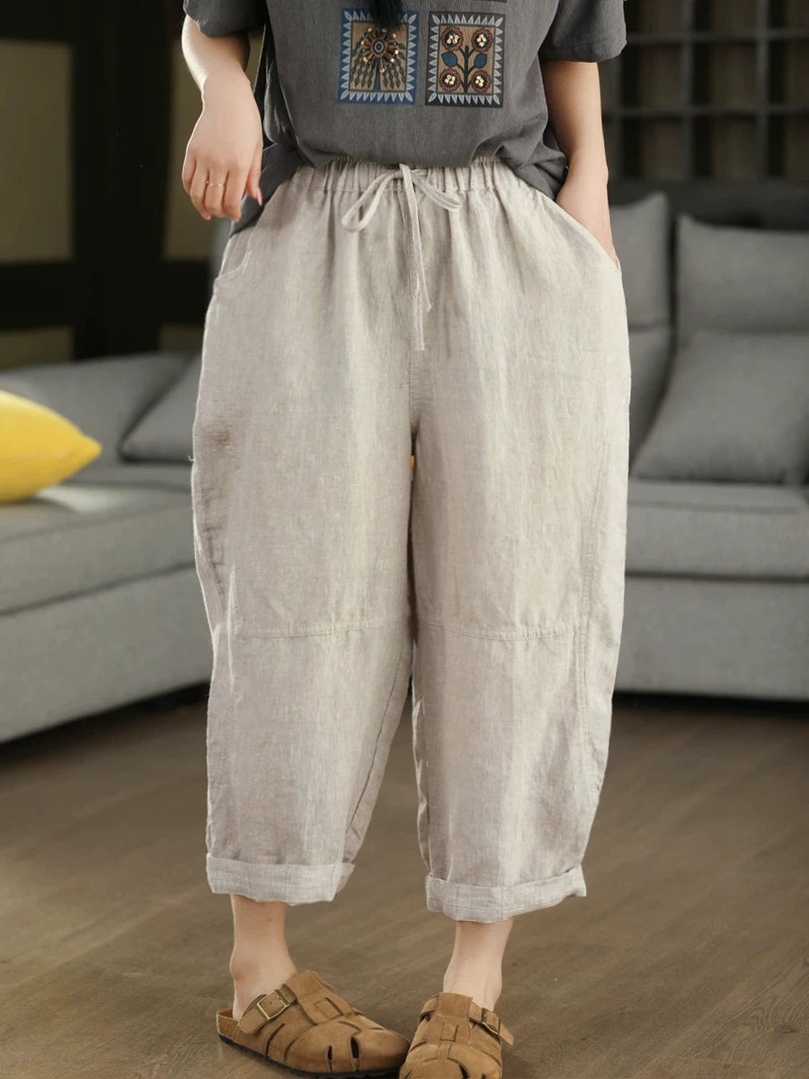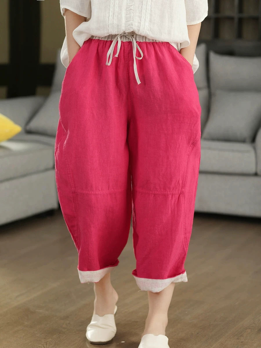 Calça Harem Feminina de Verão em Linho 100% Lisa, Cor Sólida