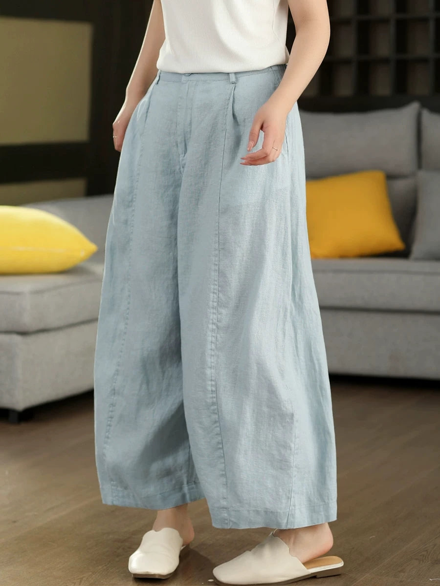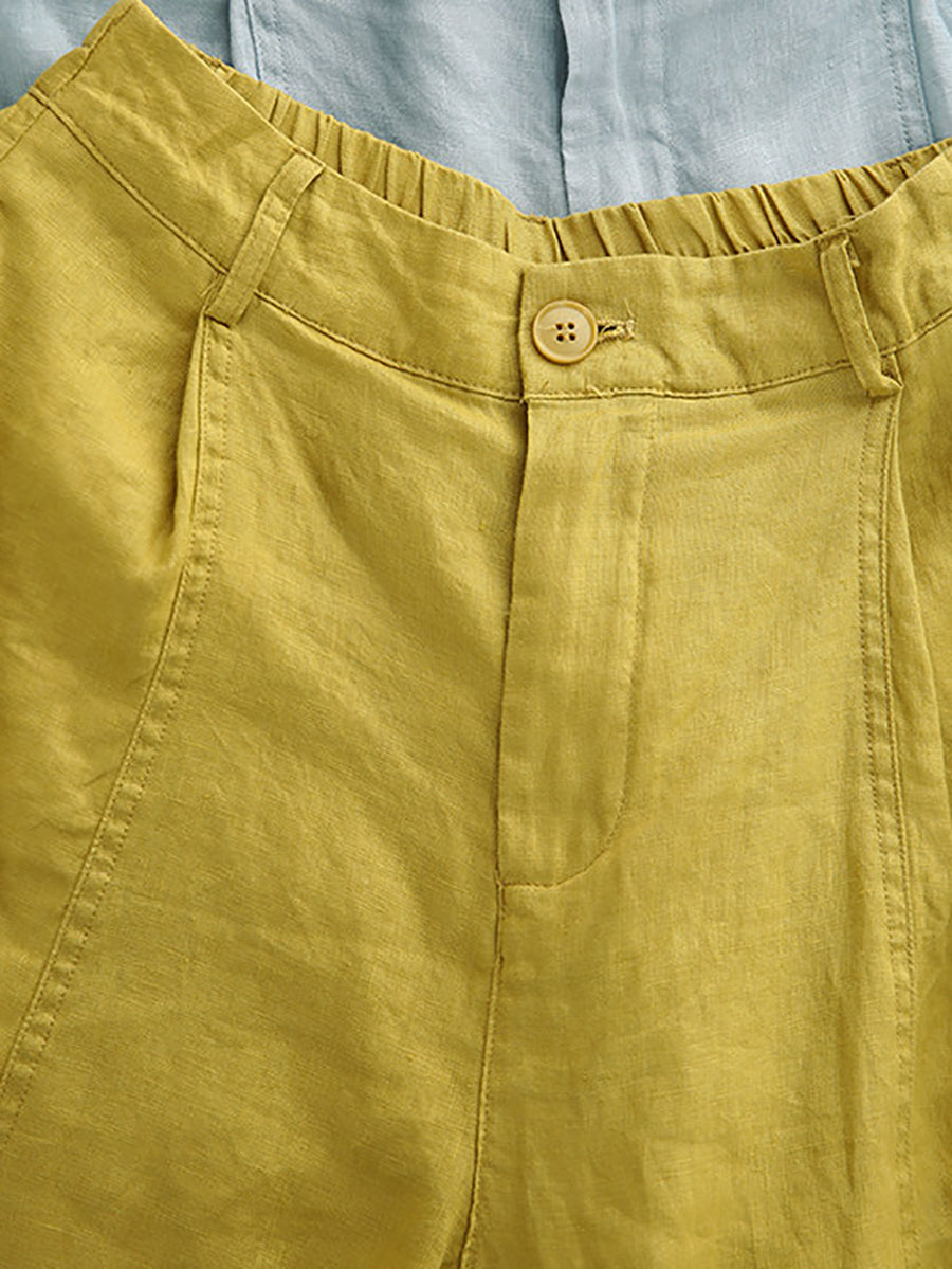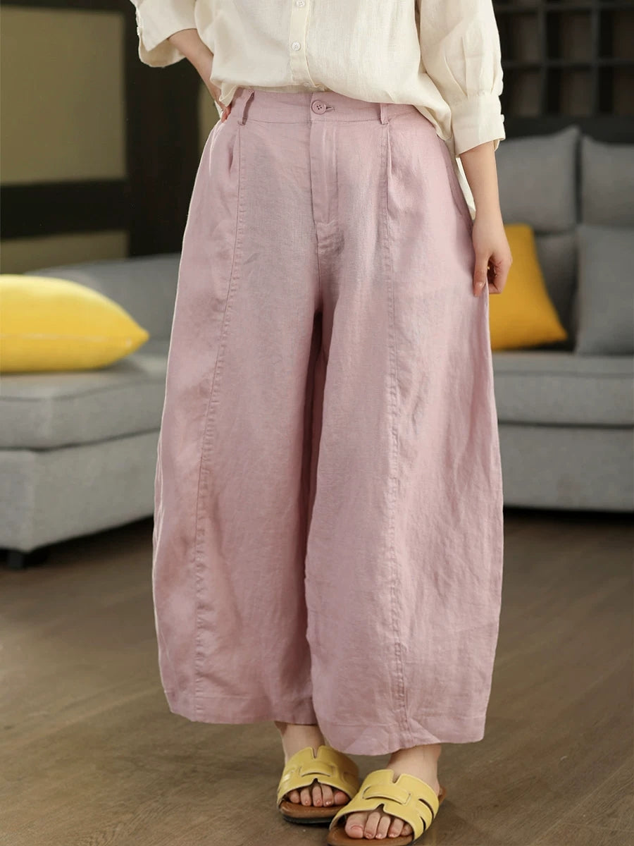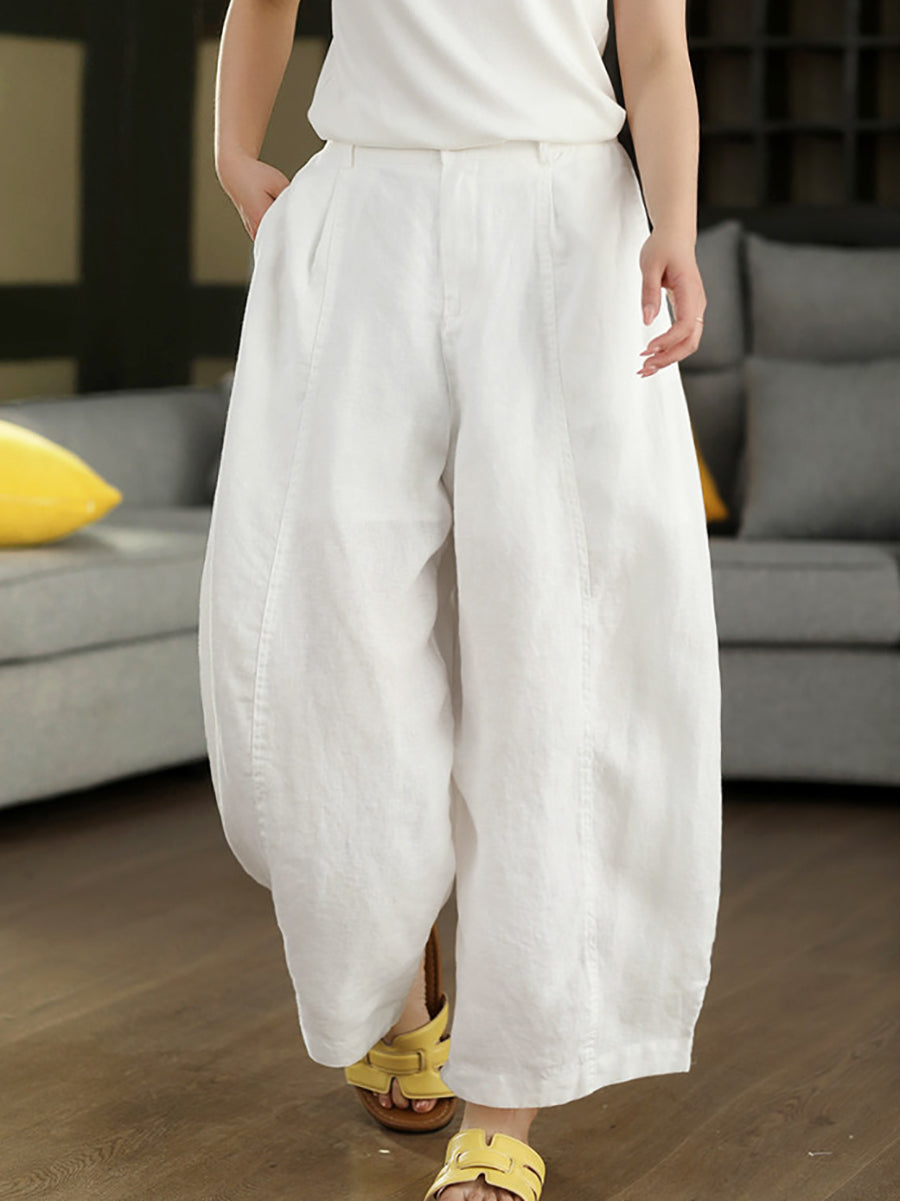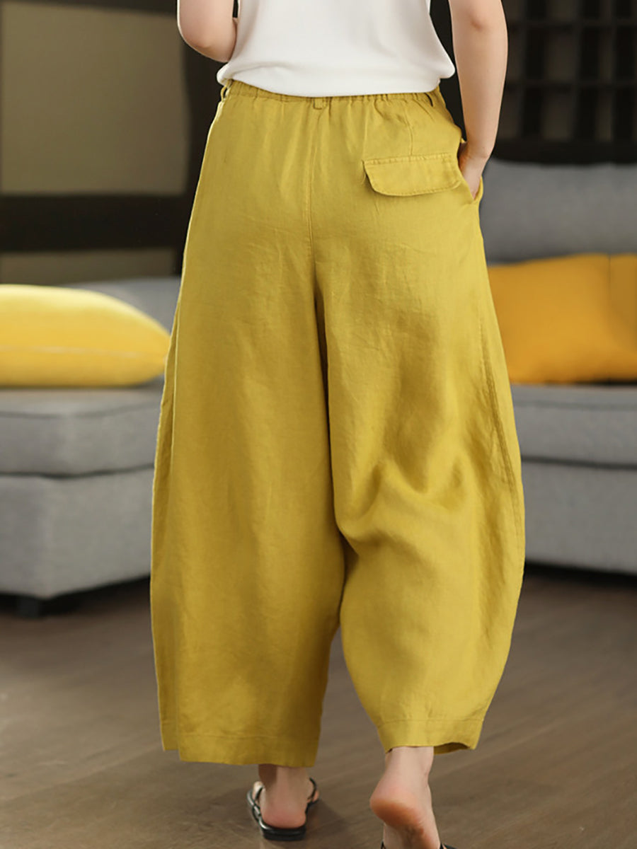 Calça Harem Feminina de Verão em Linho 100% Lisa, Cor Sólida