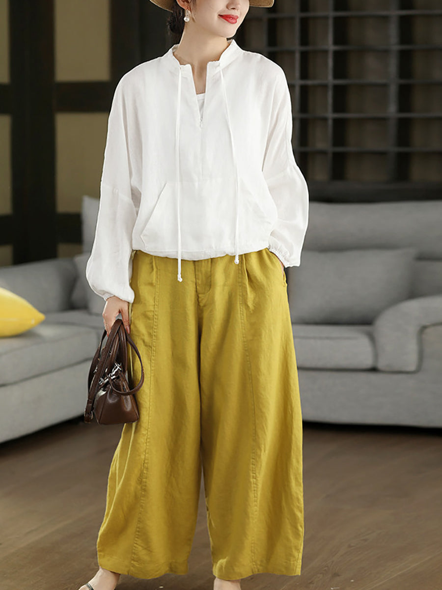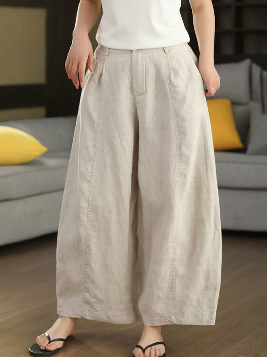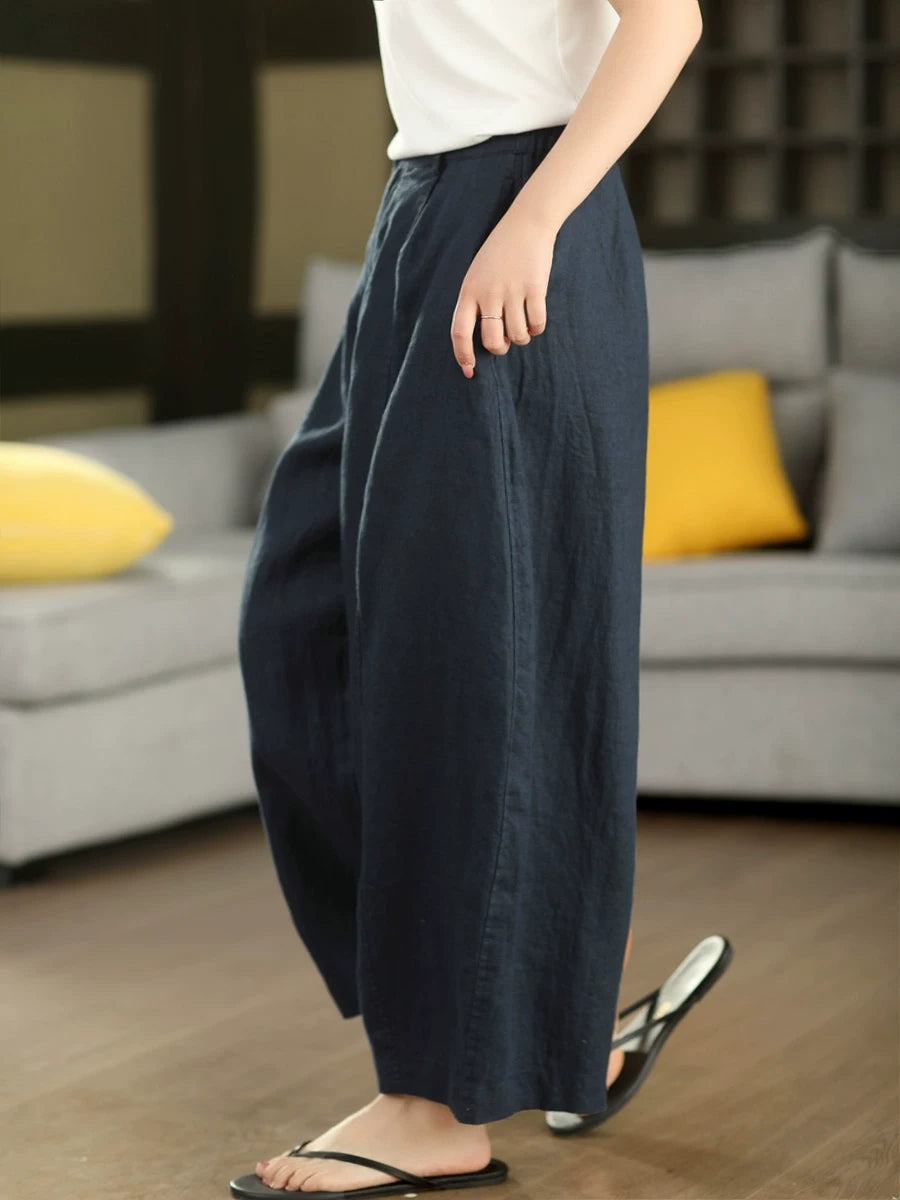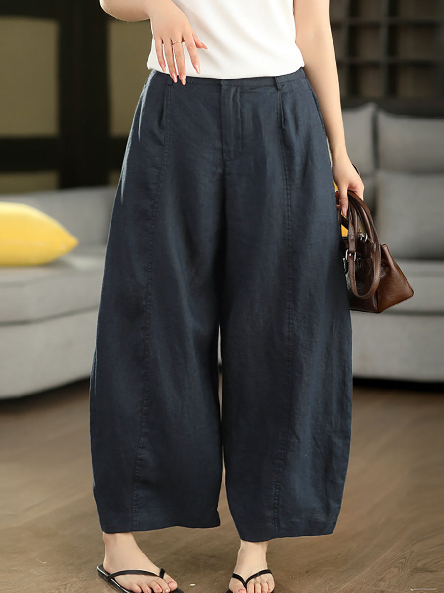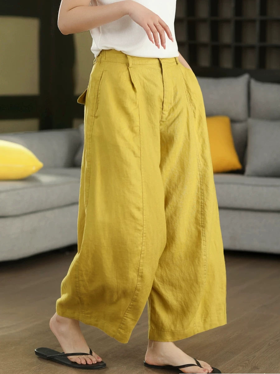 Calça Harem Feminina de Verão em Linho 100% Lisa, Cor Sólida