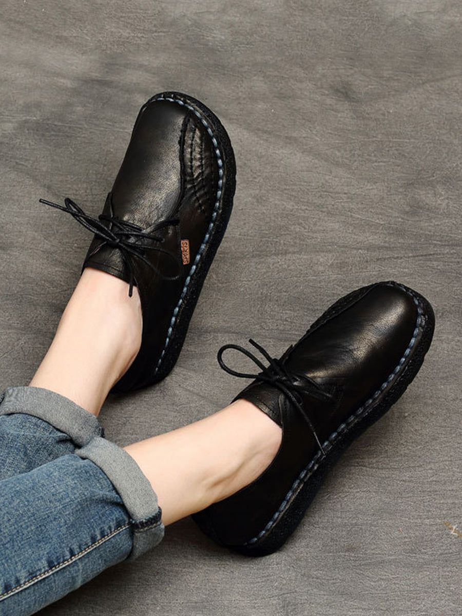 Sapatos baixos femininos retrô de couro legítimo com emendas para o verão
