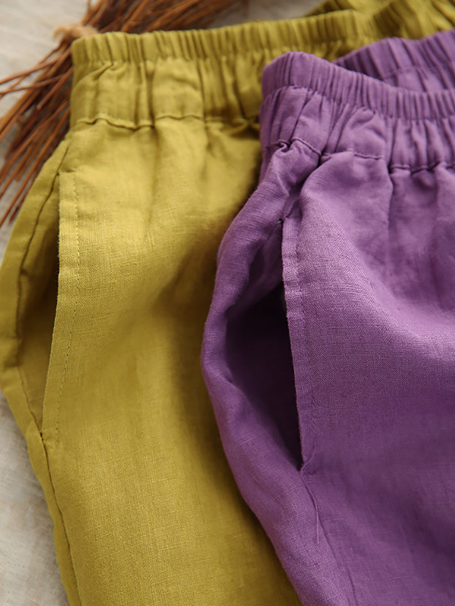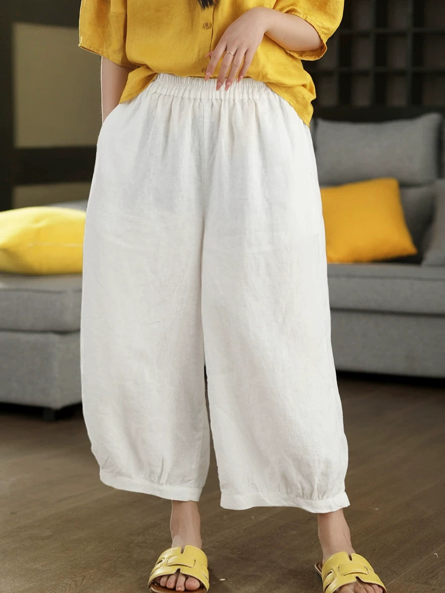 Calças de linho 100% lisas, estilo retrô, para mulheres, para o verão.