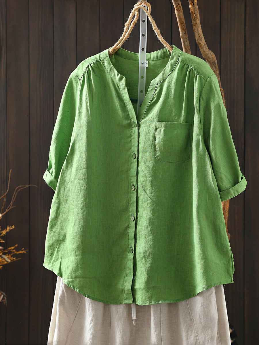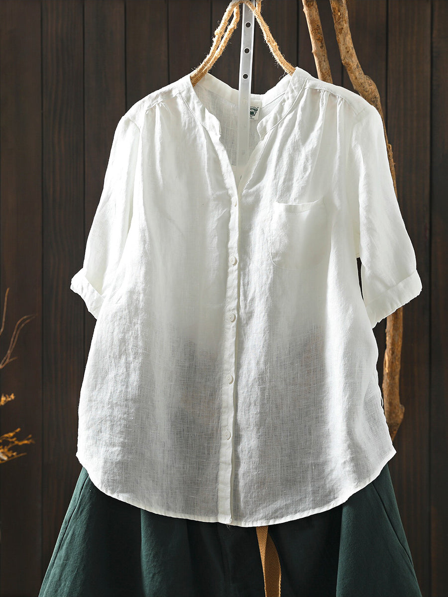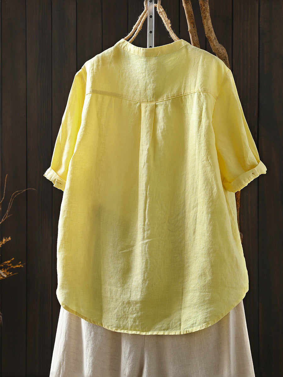 Blusa feminina de verão retrô, cor lisa, 100% linho.