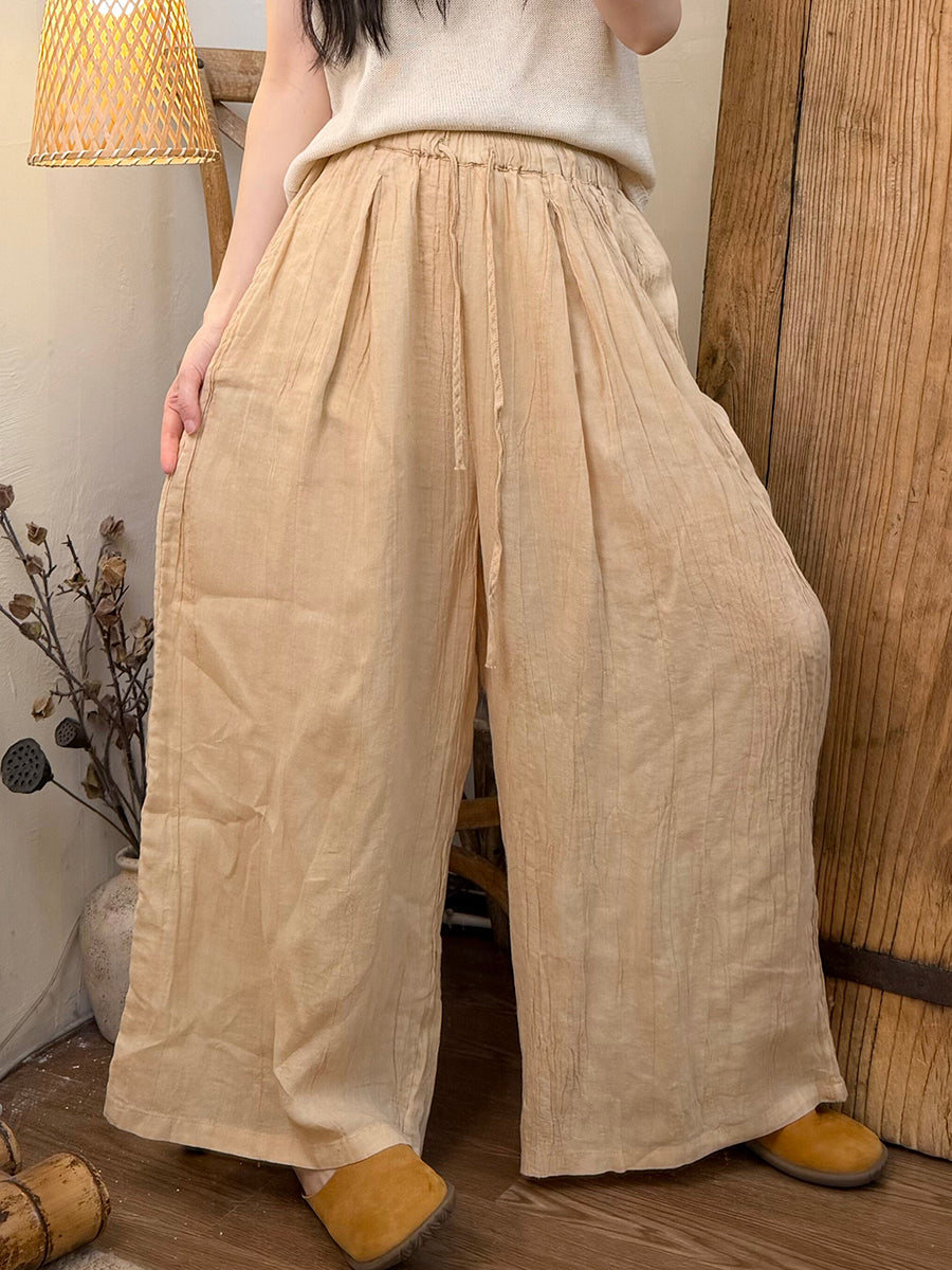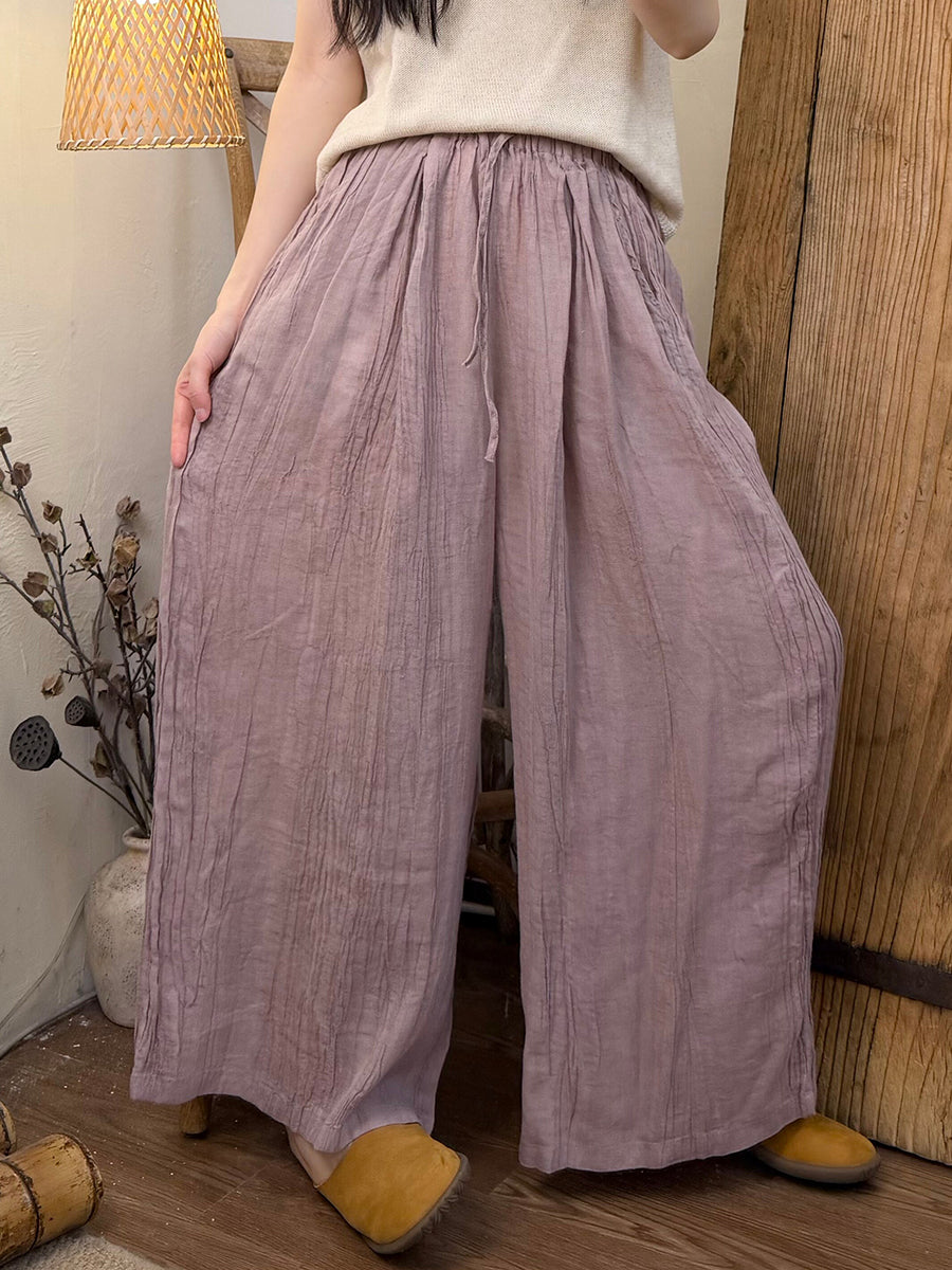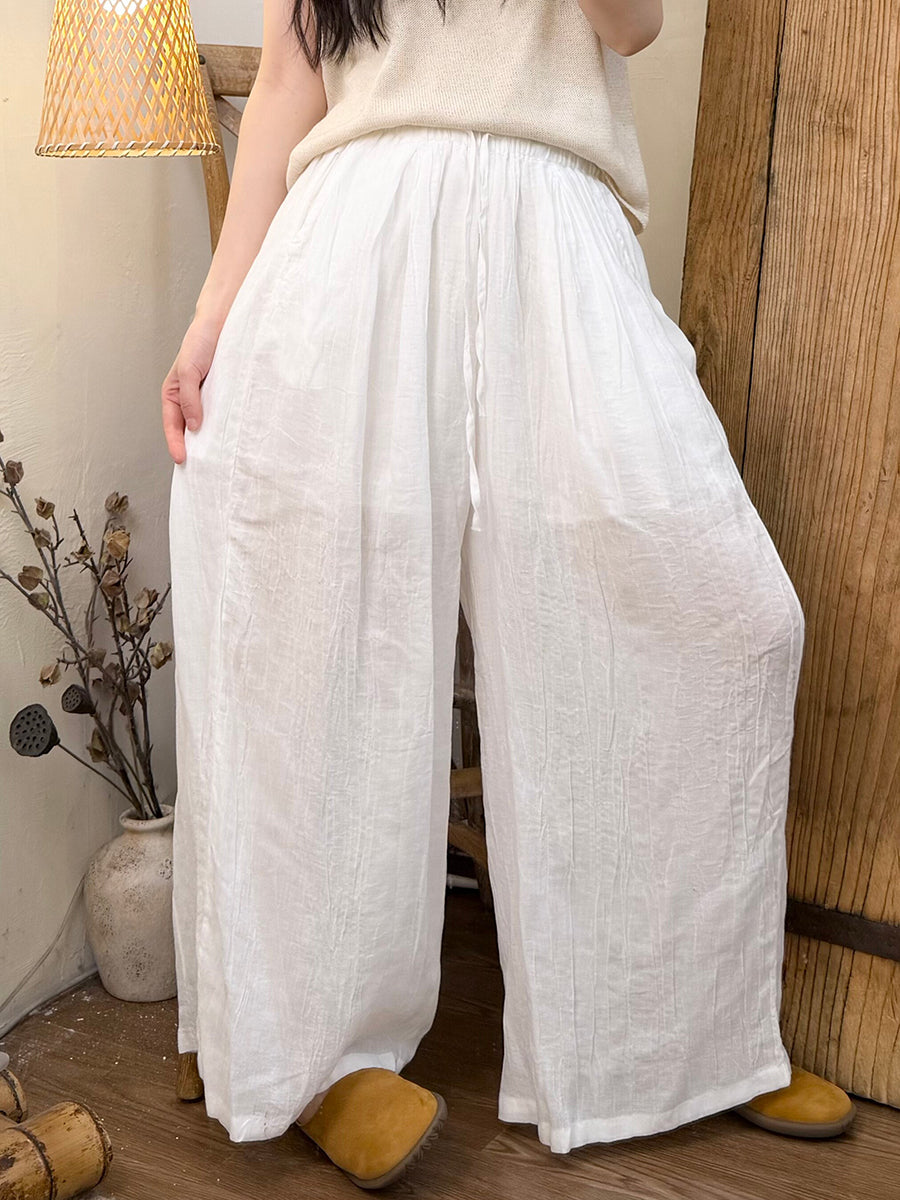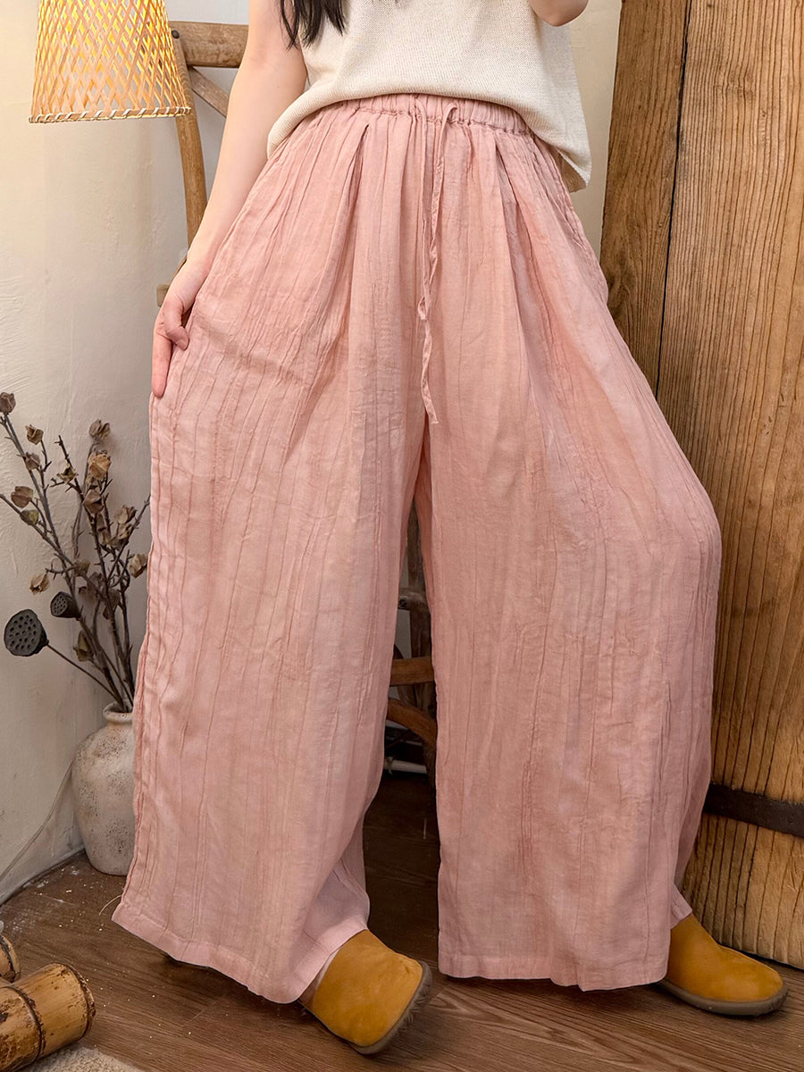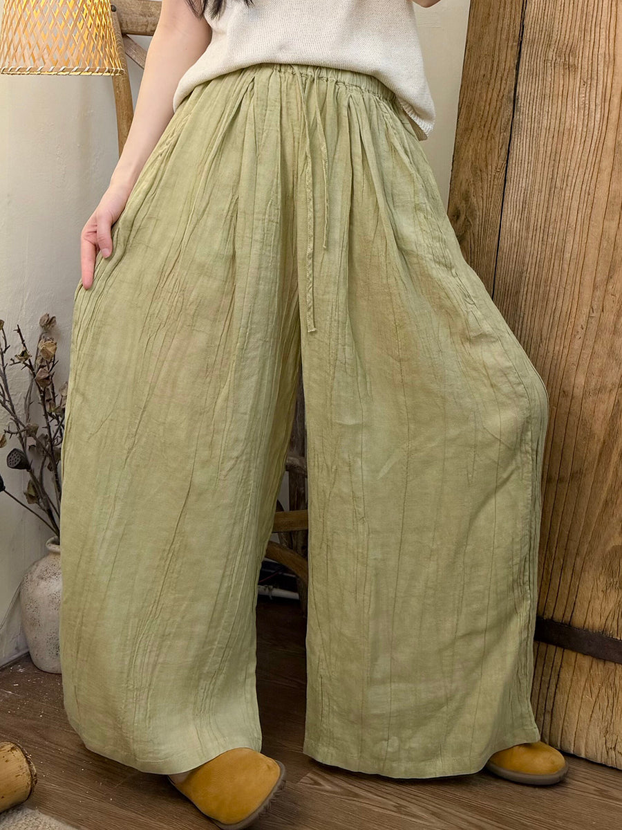 Calça reta feminina de rami de cor lisa retrô para o verão