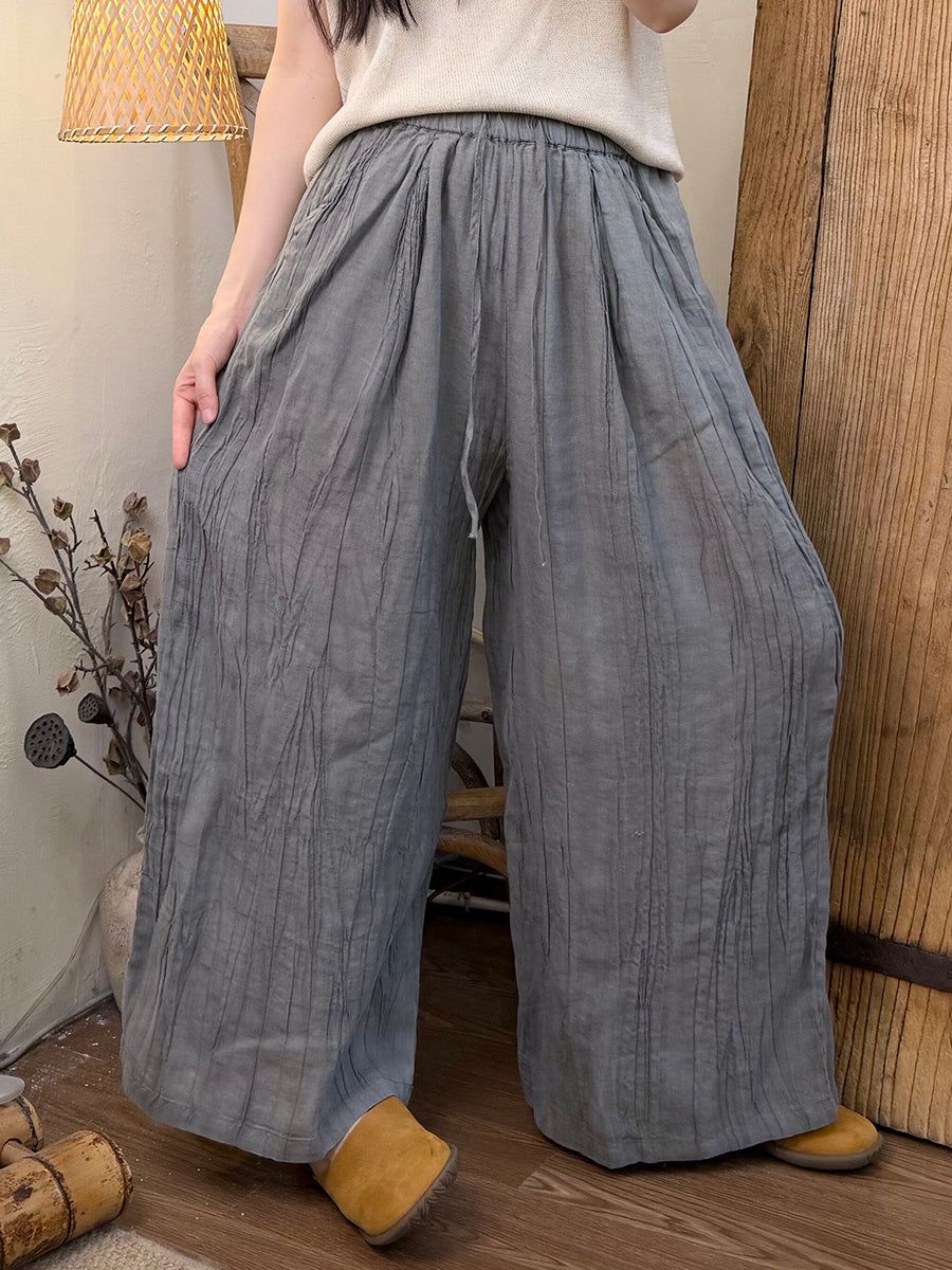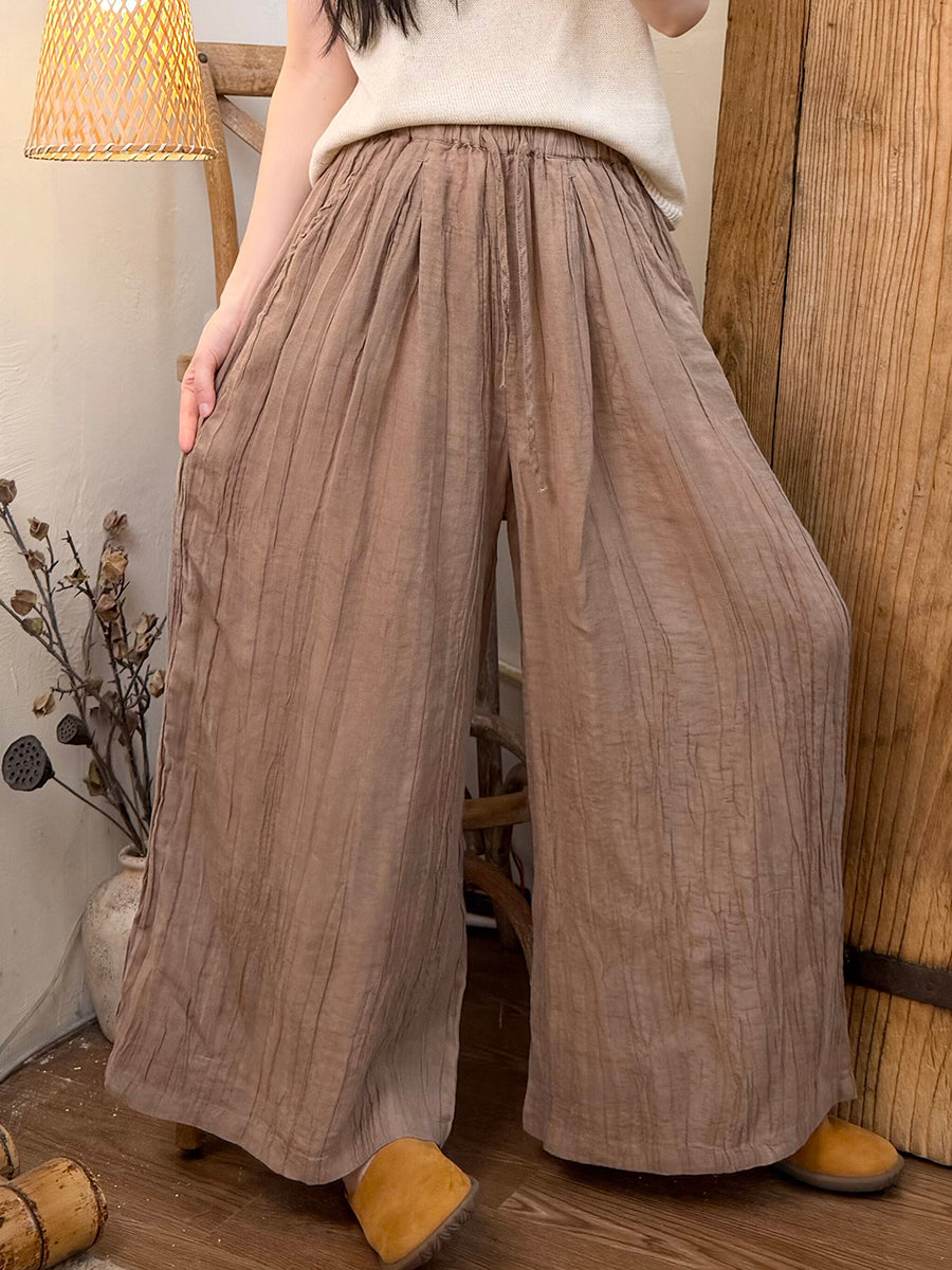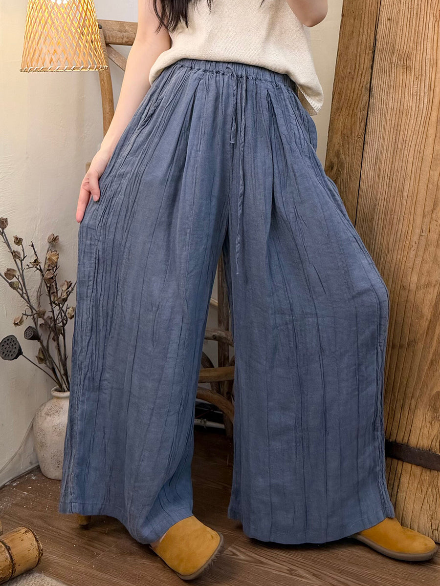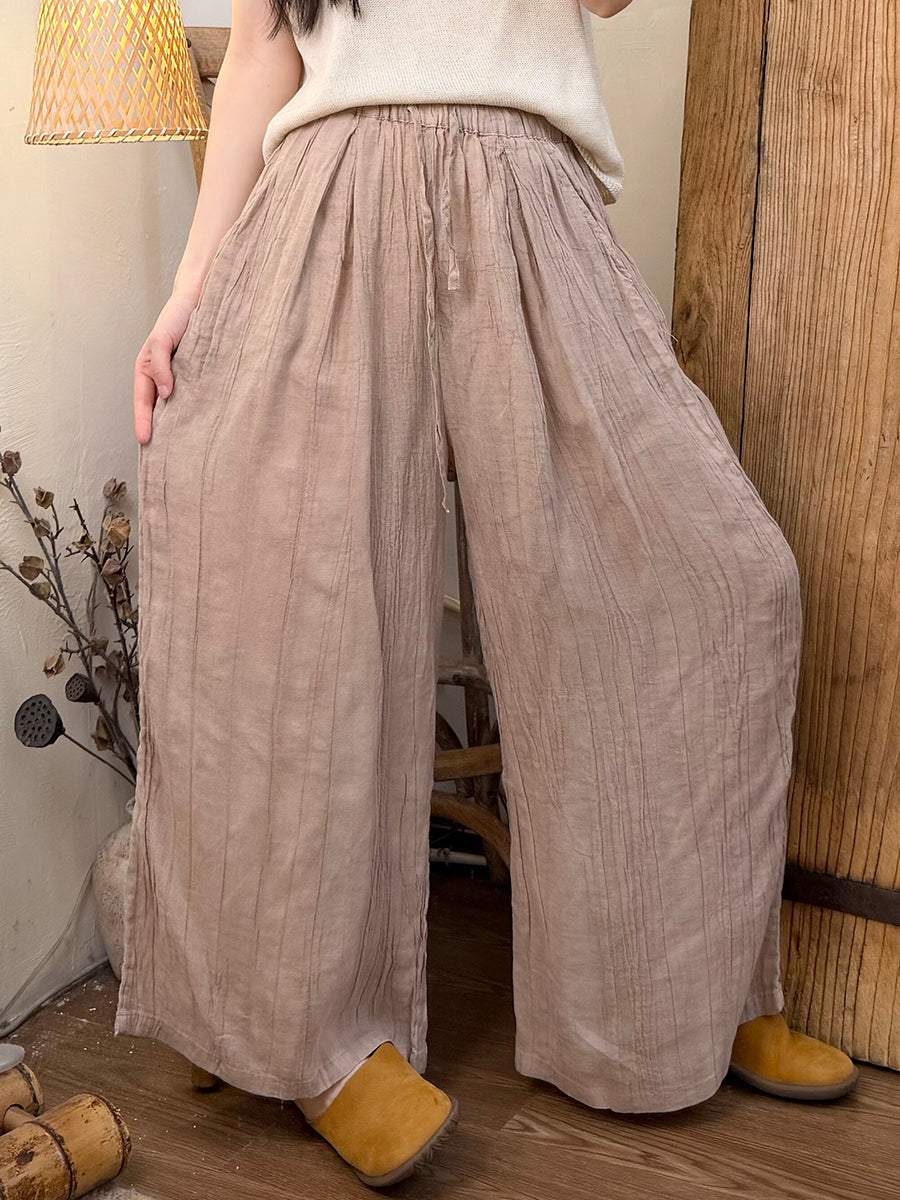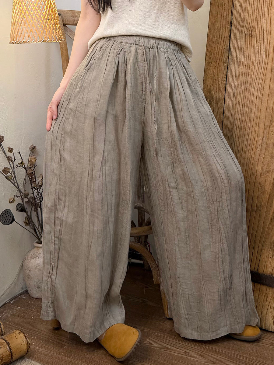 Calça reta feminina de rami de cor lisa retrô para o verão