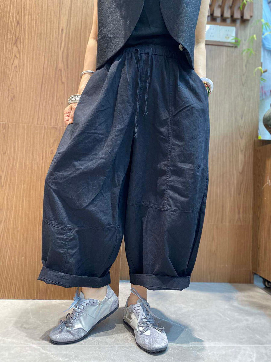 Calça feminina de verão retrô de cor lisa com pernas largas
