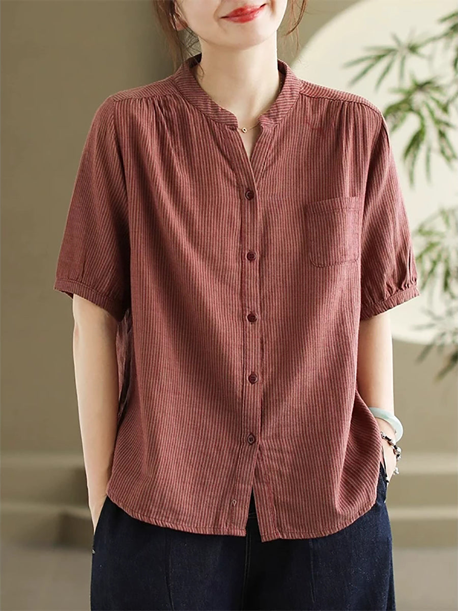 Blusa feminina de verão retrô listrada com decote em V, 100% algodão.
