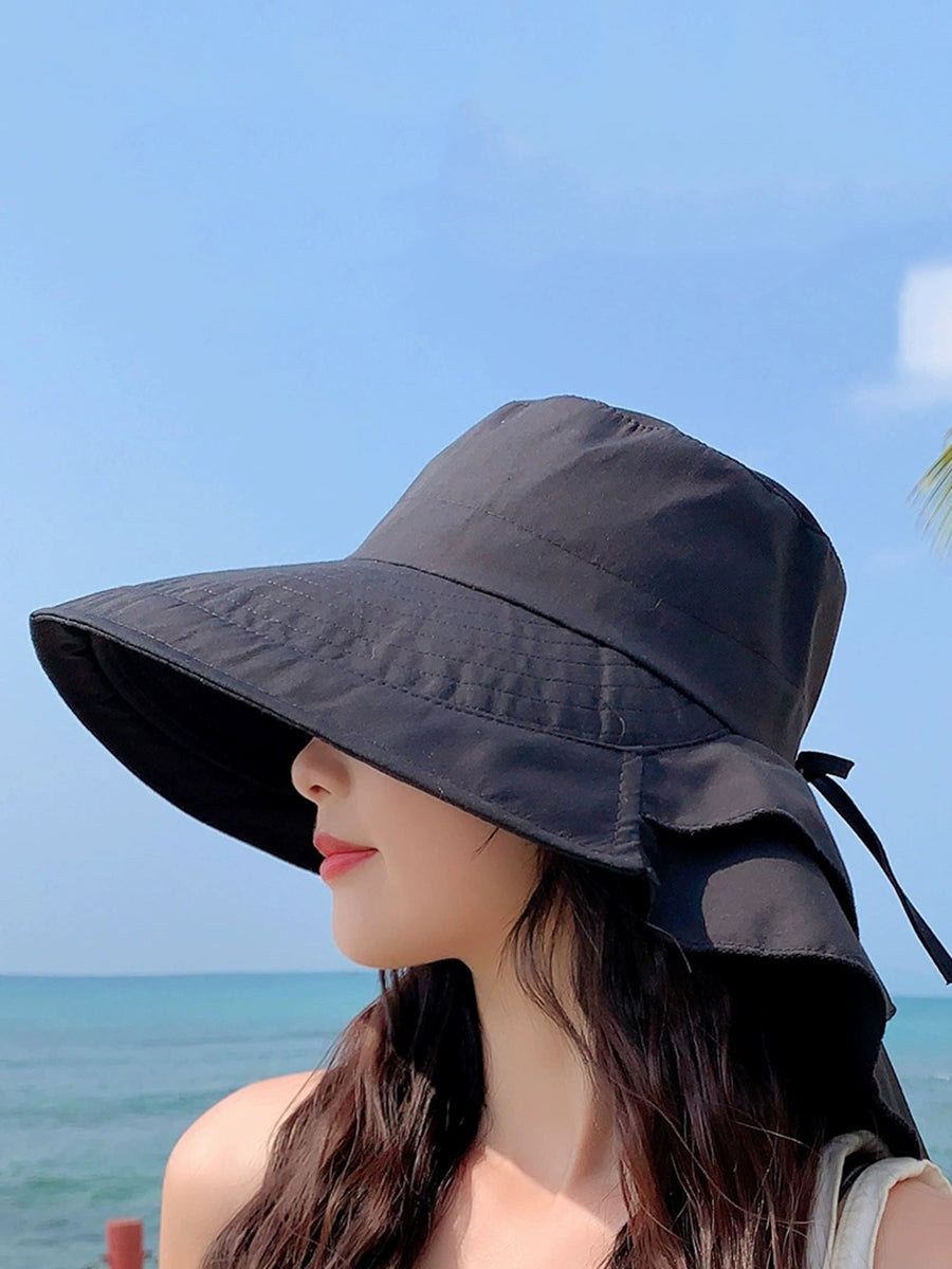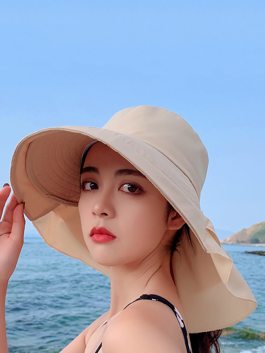 Chapéu feminino de verão à prova de sol, cor lisa