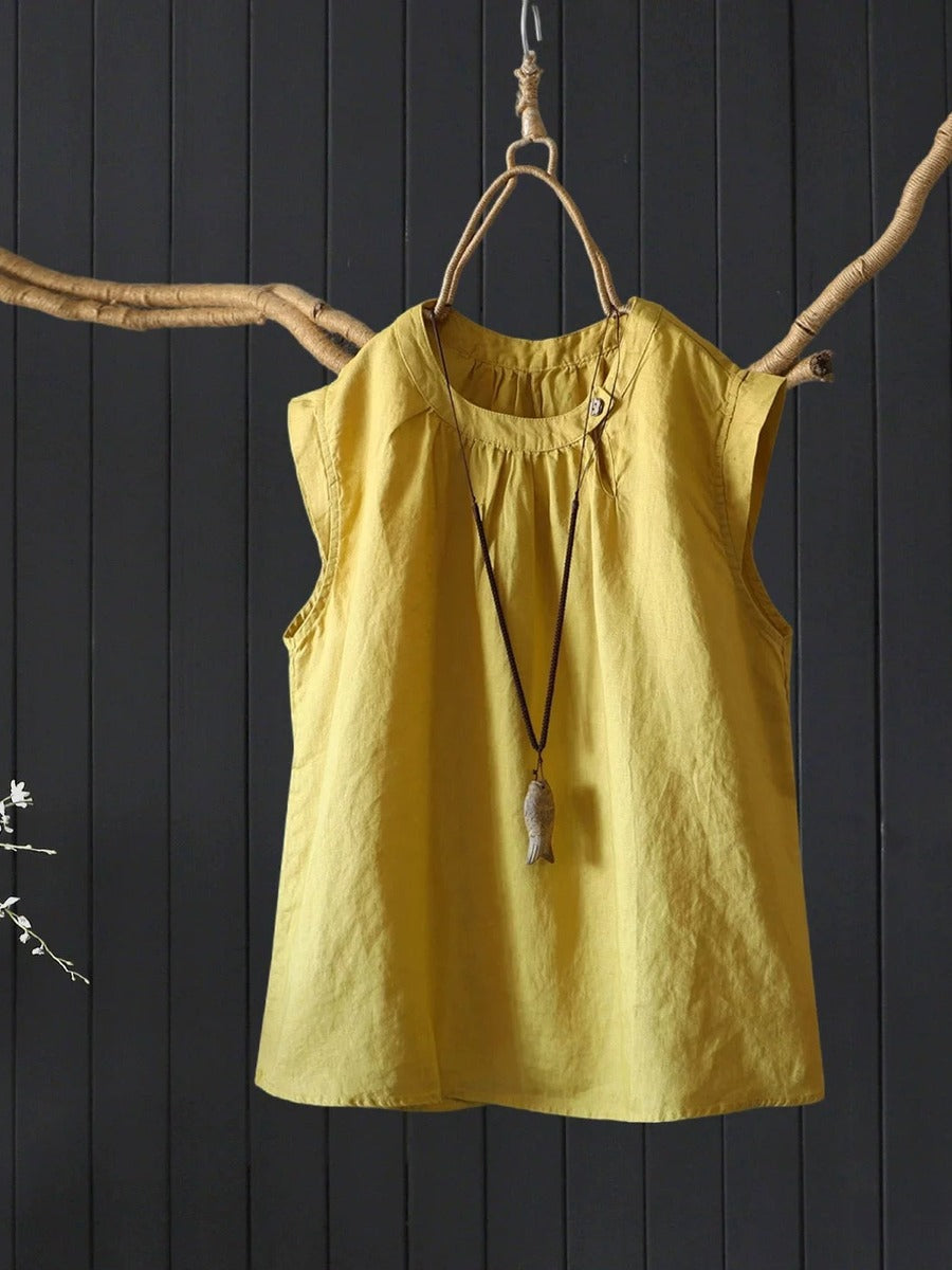 Blusa feminina de verão vintage sem mangas, 100% linho.