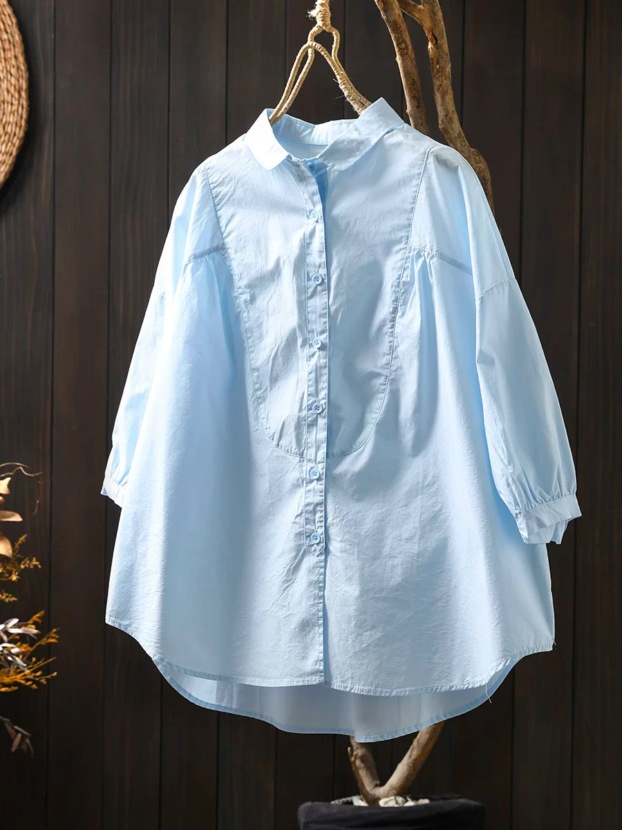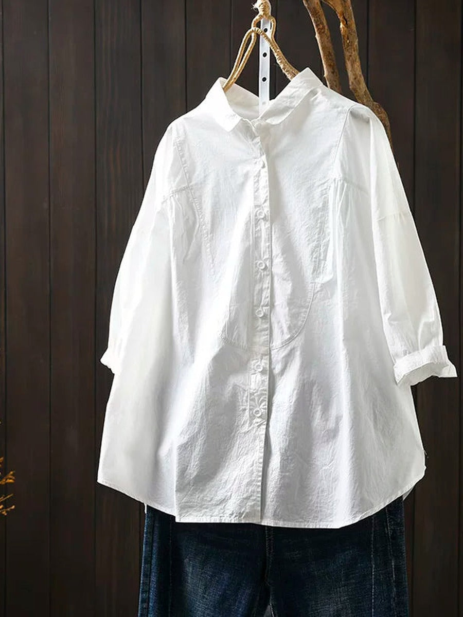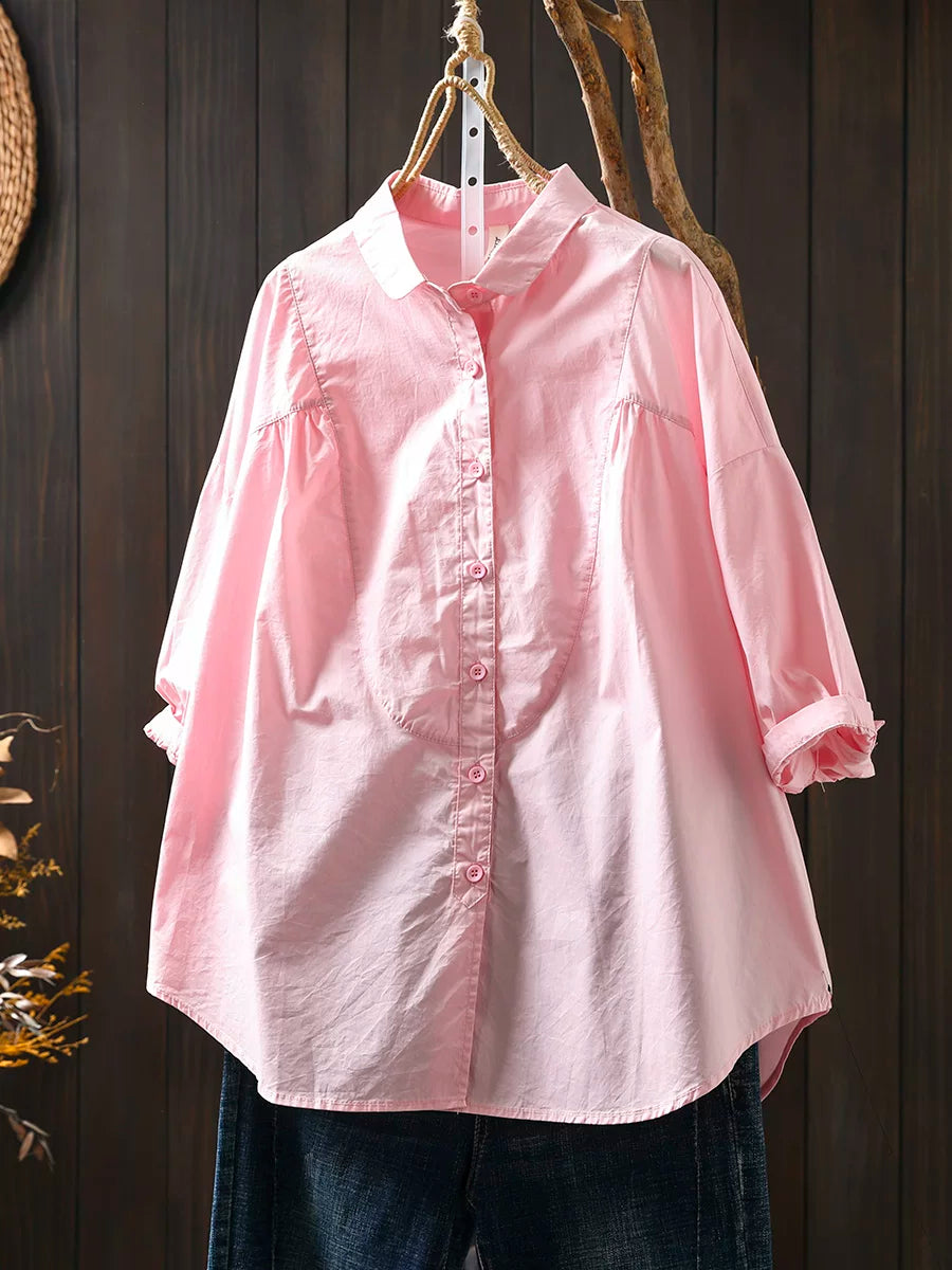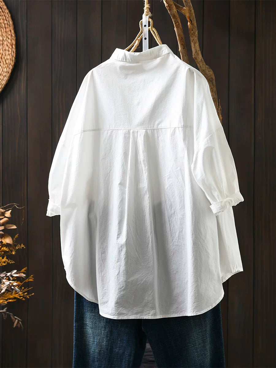 Camisa feminina de verão vintage de algodão com manga curta
