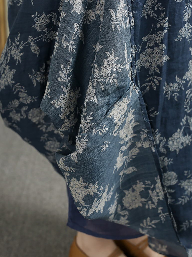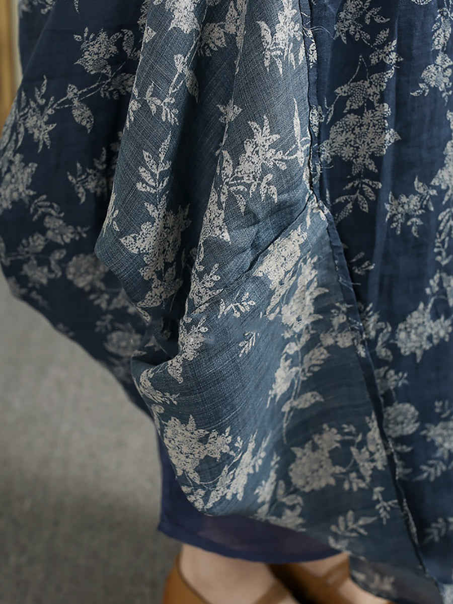Vestido feminino vintage de verão com decote em V e flores 100% rami