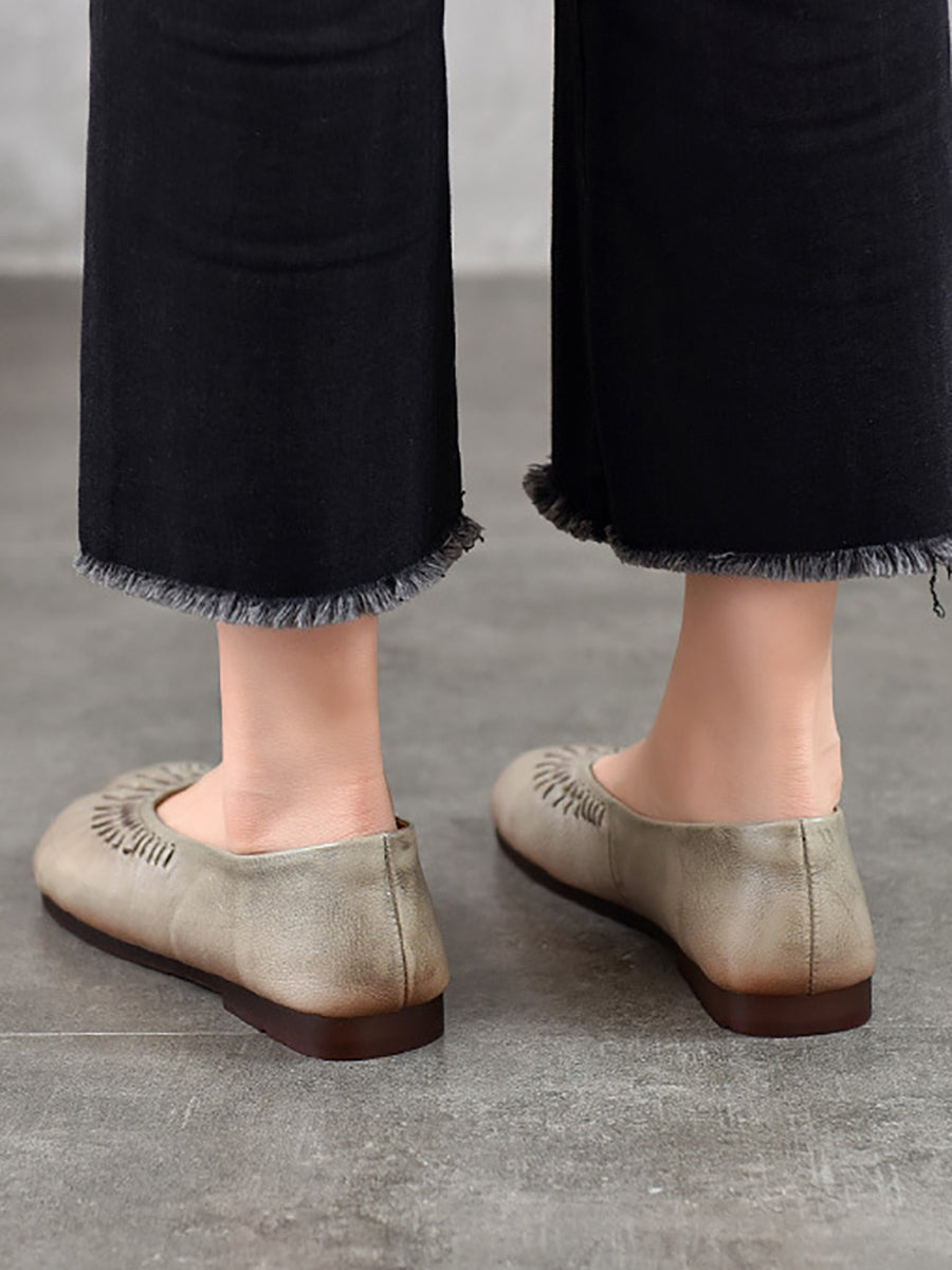 Sapatos femininos de verão vintage em couro legítimo, modelo baixo.