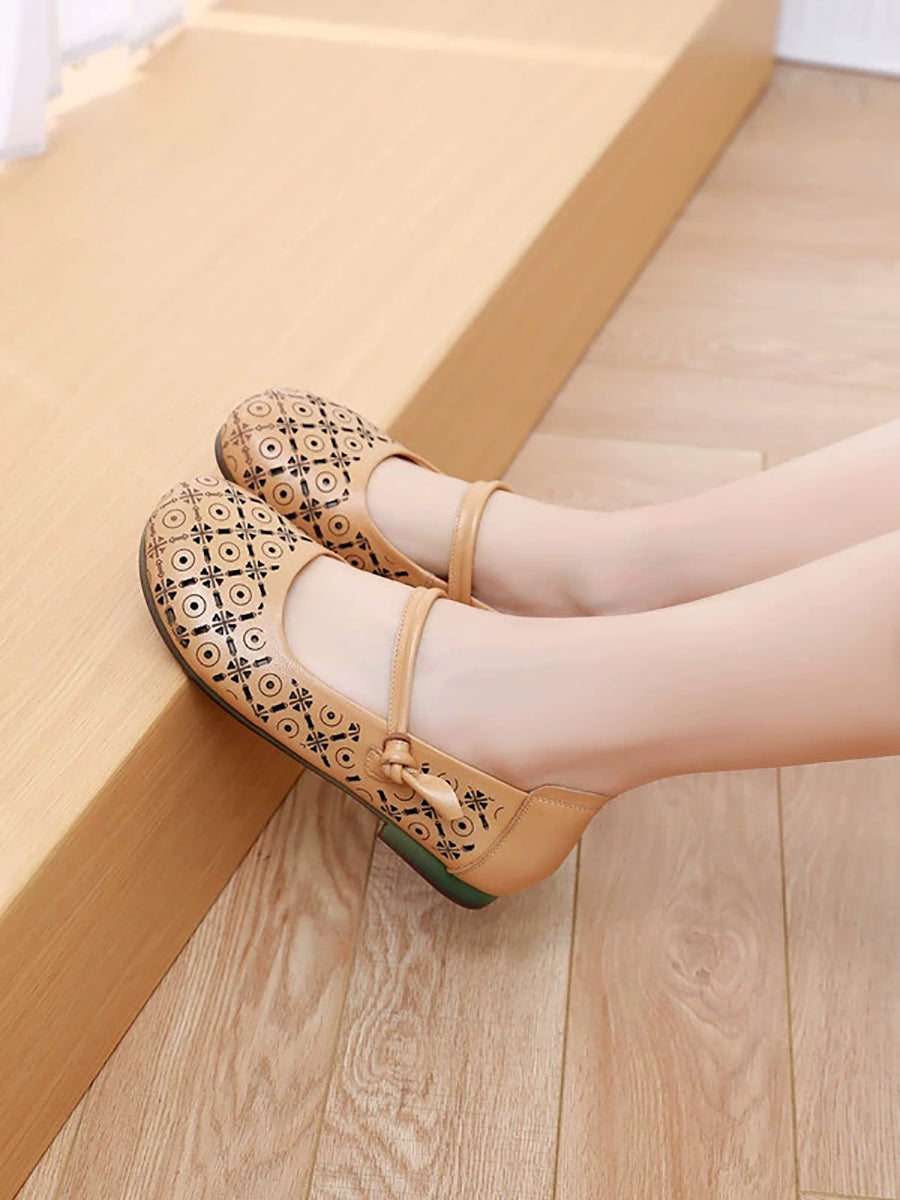 Sandálias femininas de verão em couro legítimo estilo vintage