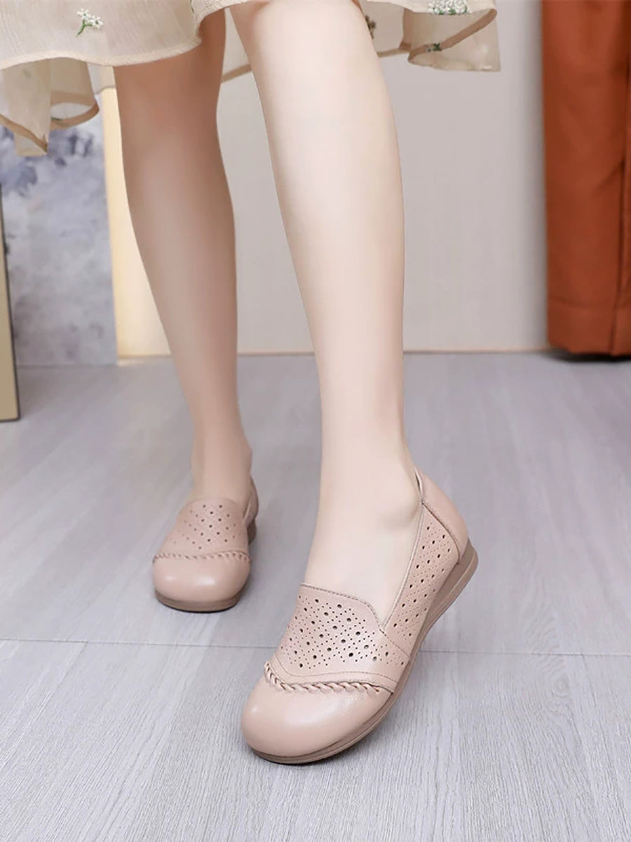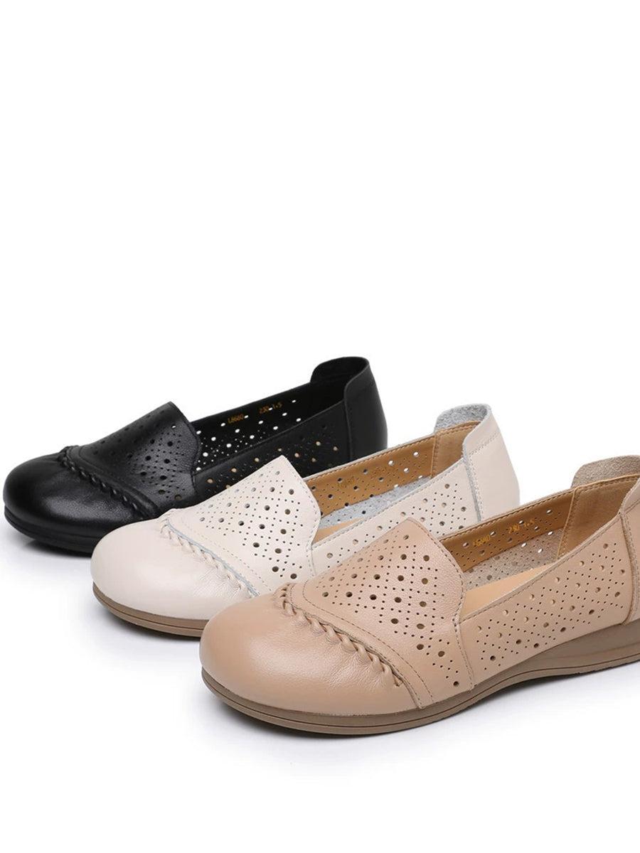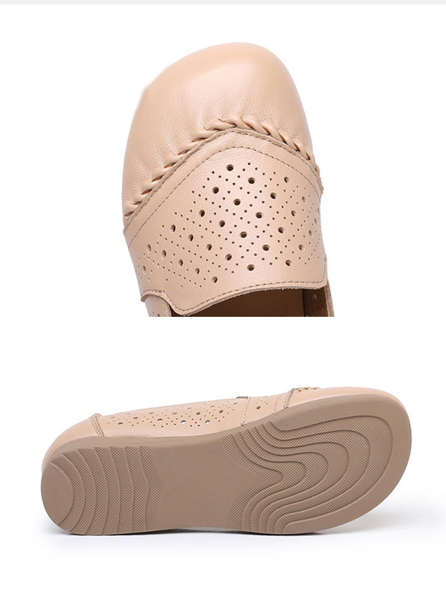 Sapatos femininos de verão vintage em couro legítimo