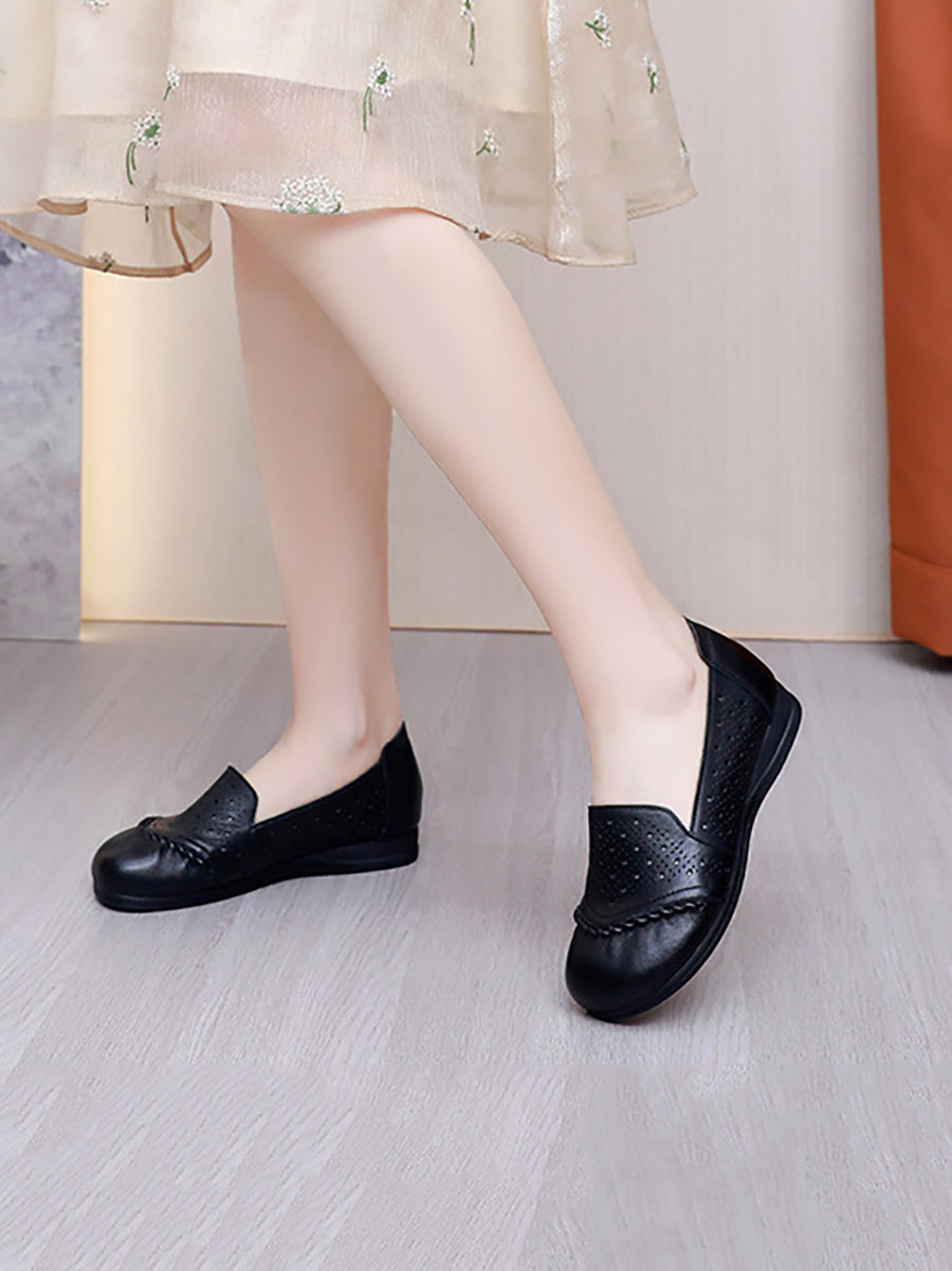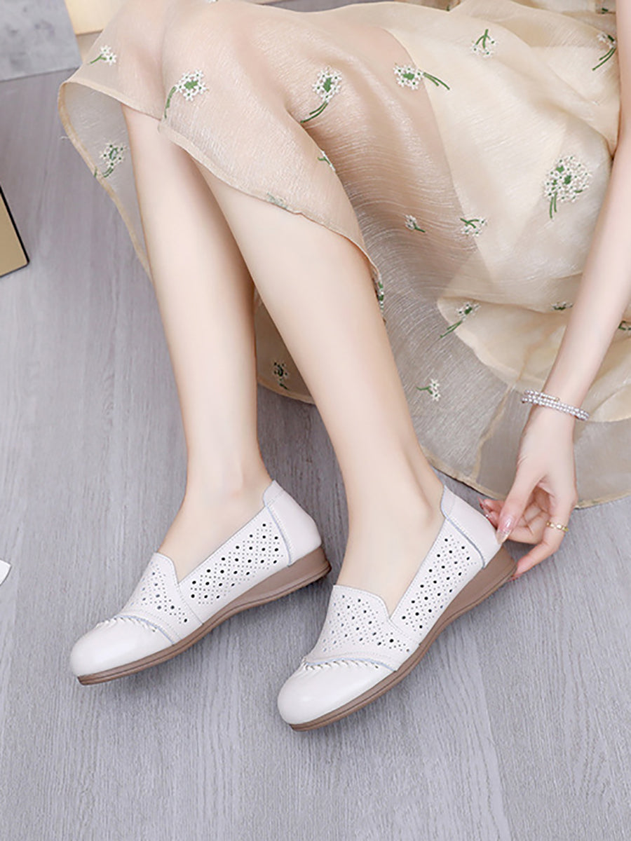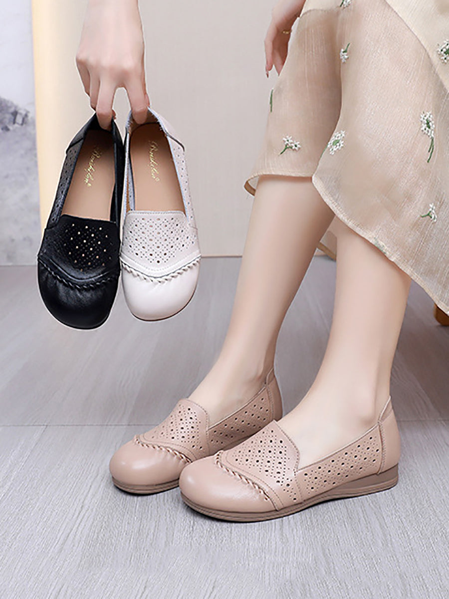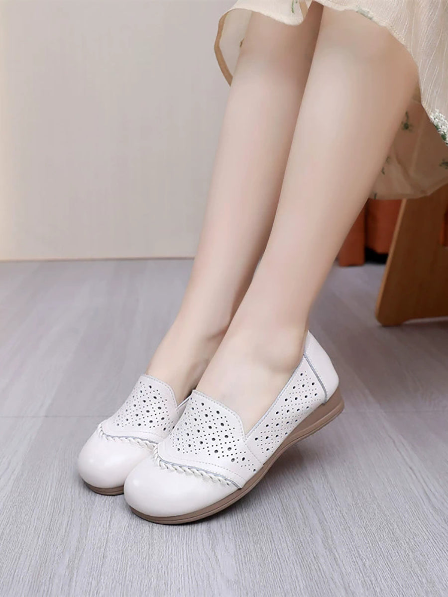 Sapatos femininos de verão vintage em couro legítimo