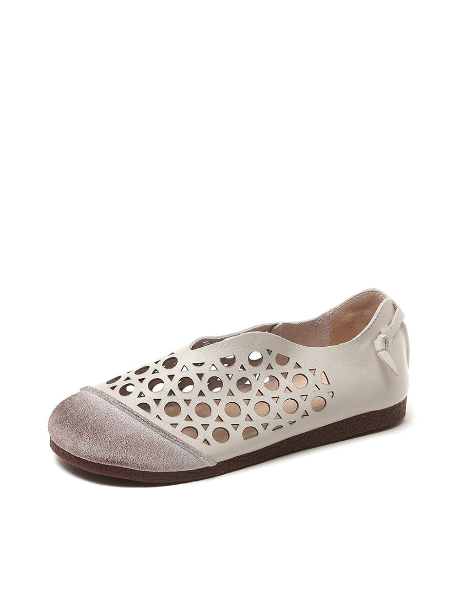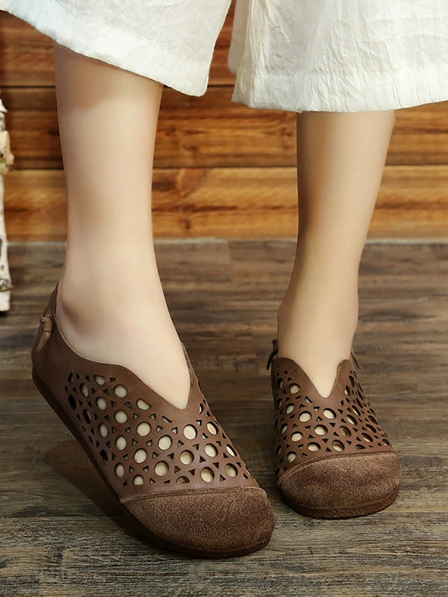 Sandálias femininas de couro vazado estilo vintage para o verão.