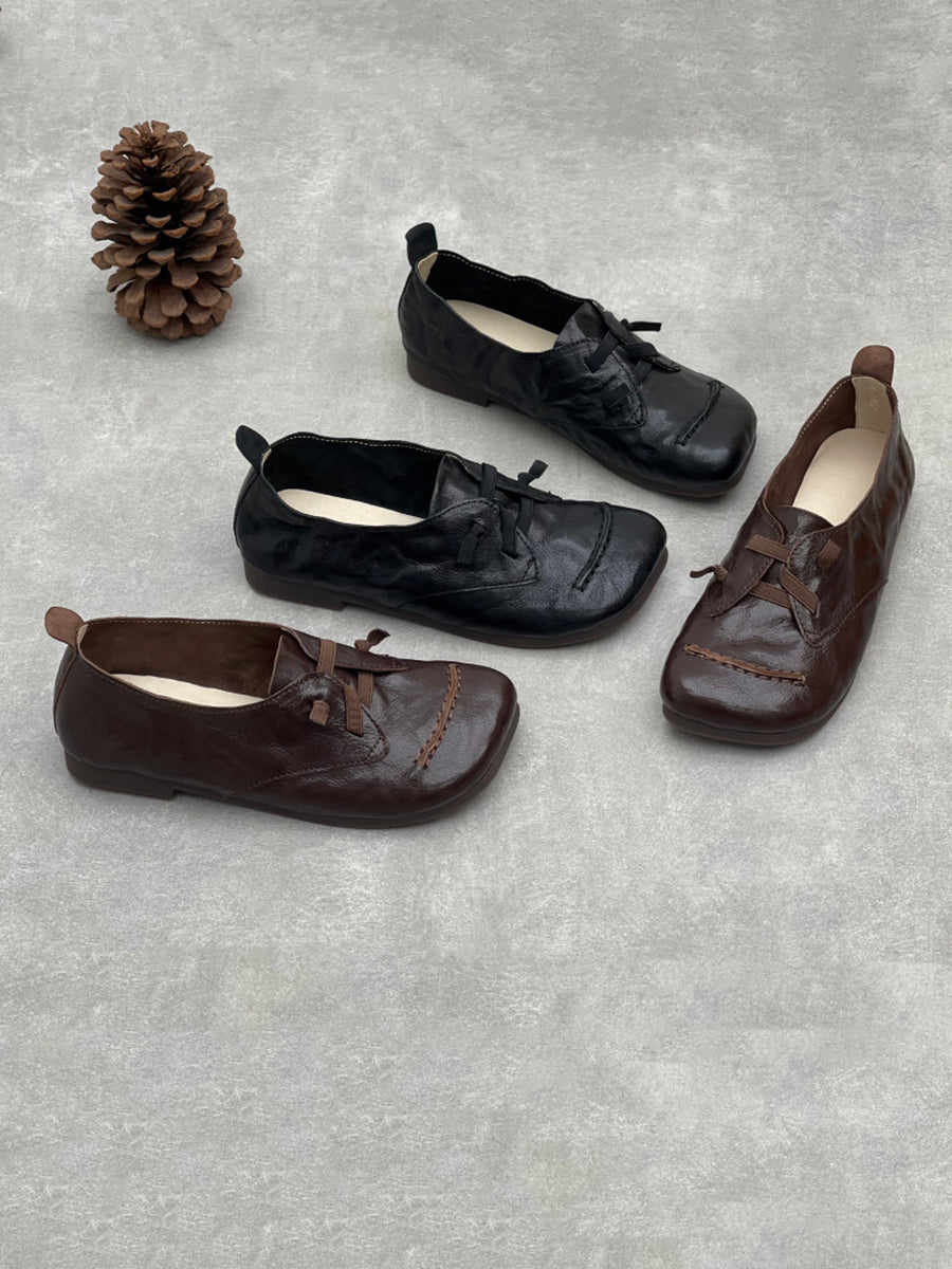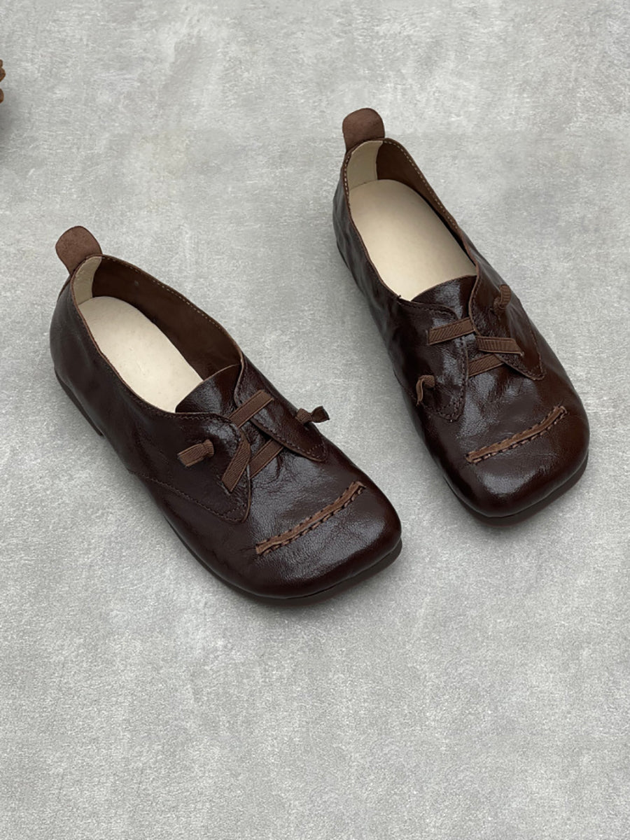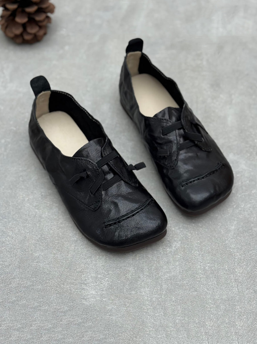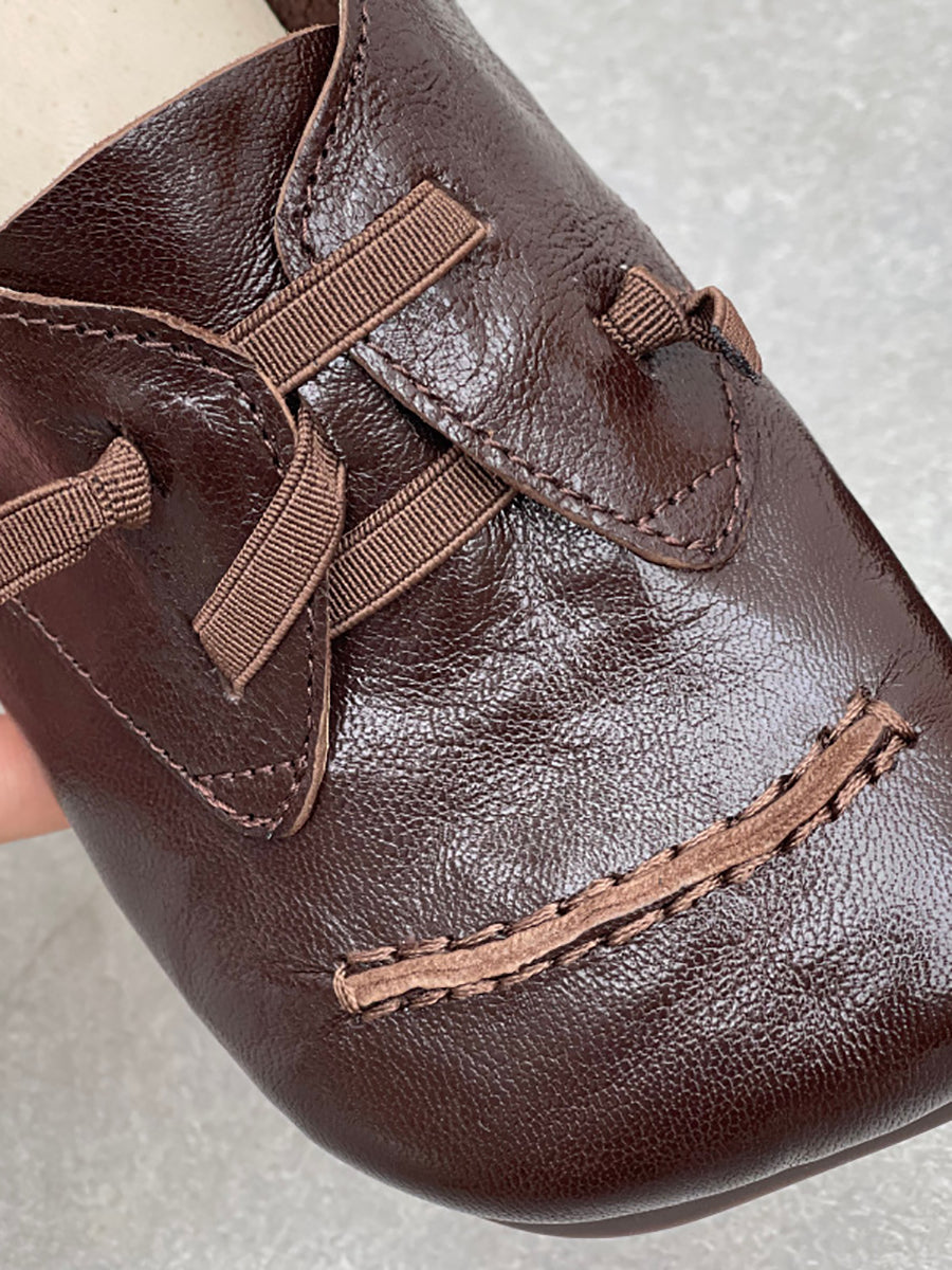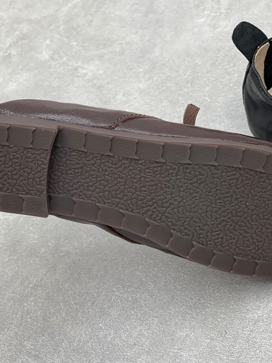 Sapatos femininos de verão vintage em couro macio, estilo rasteiro.