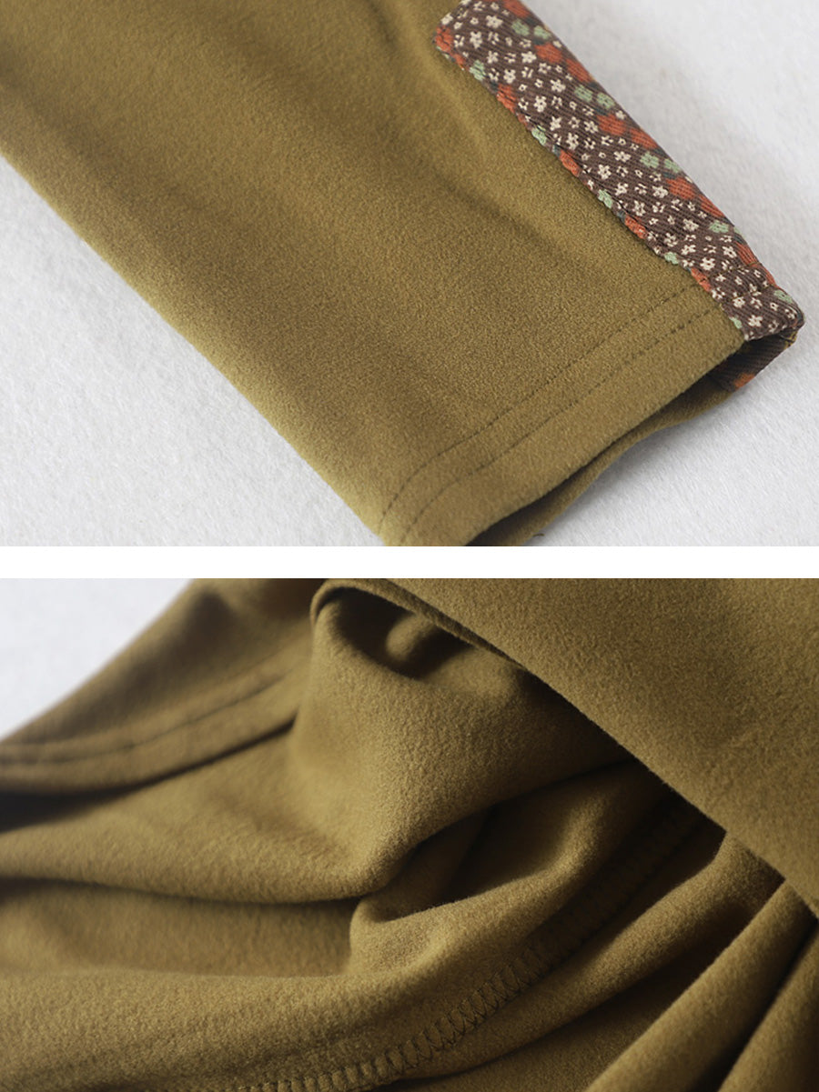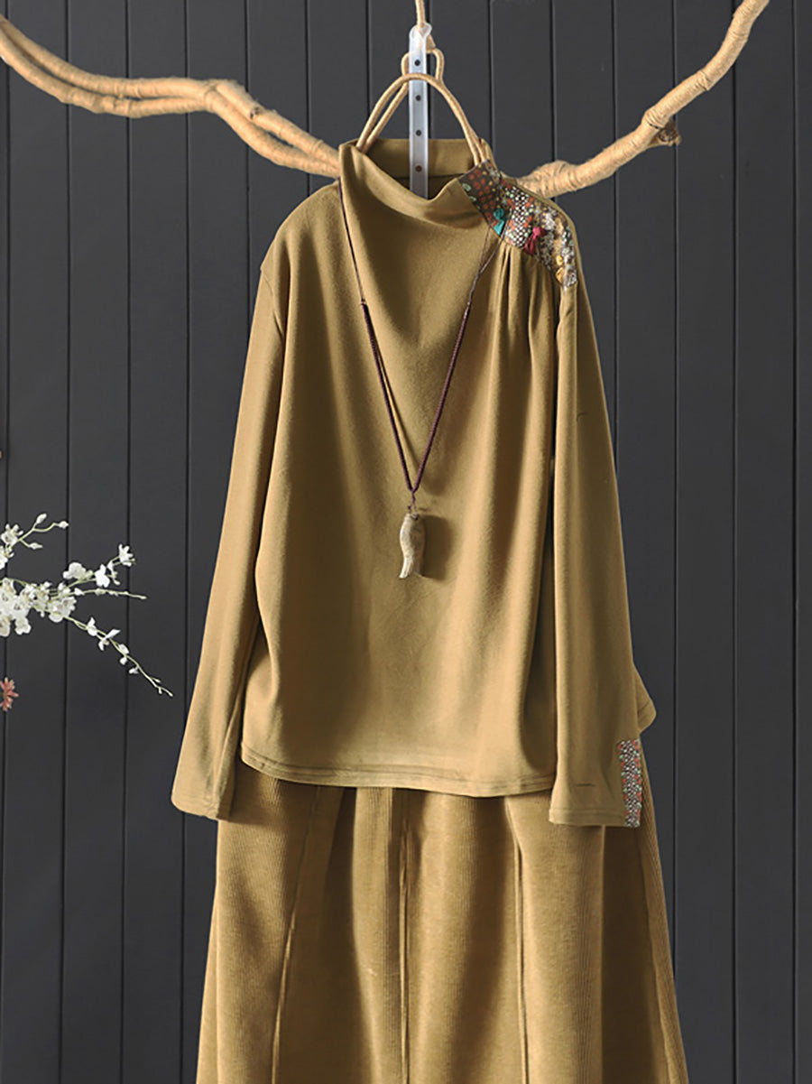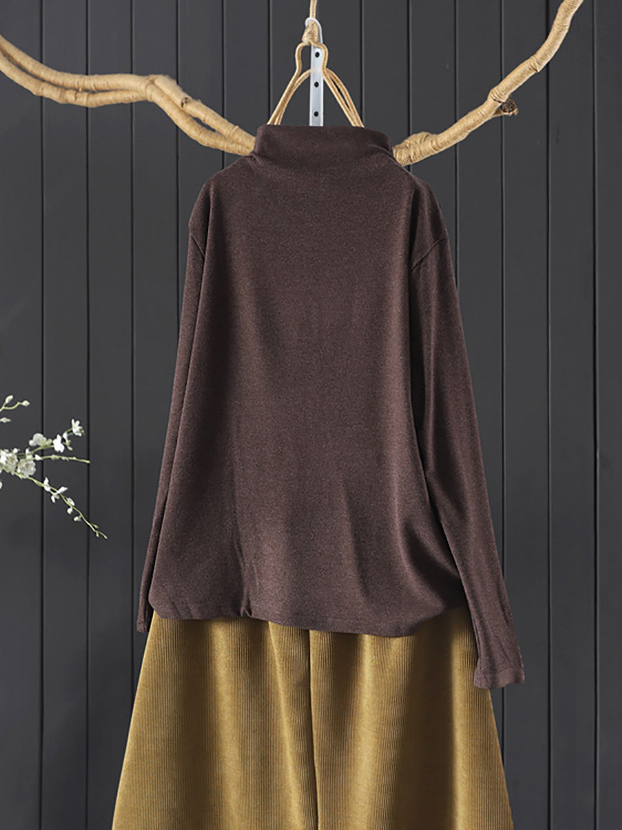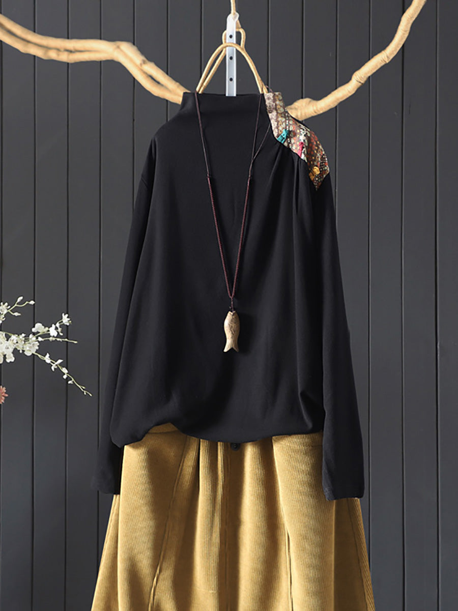 Blusa feminina vintage de gola alta com patchwork para o outono