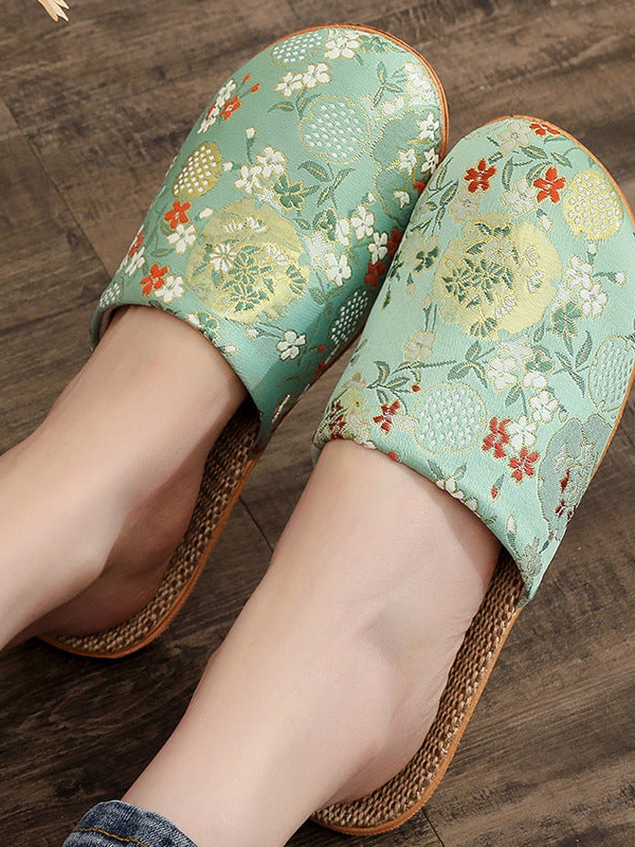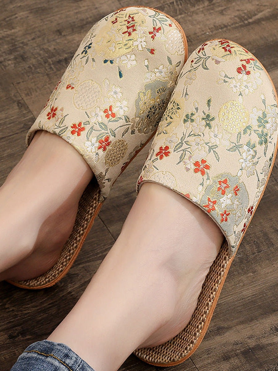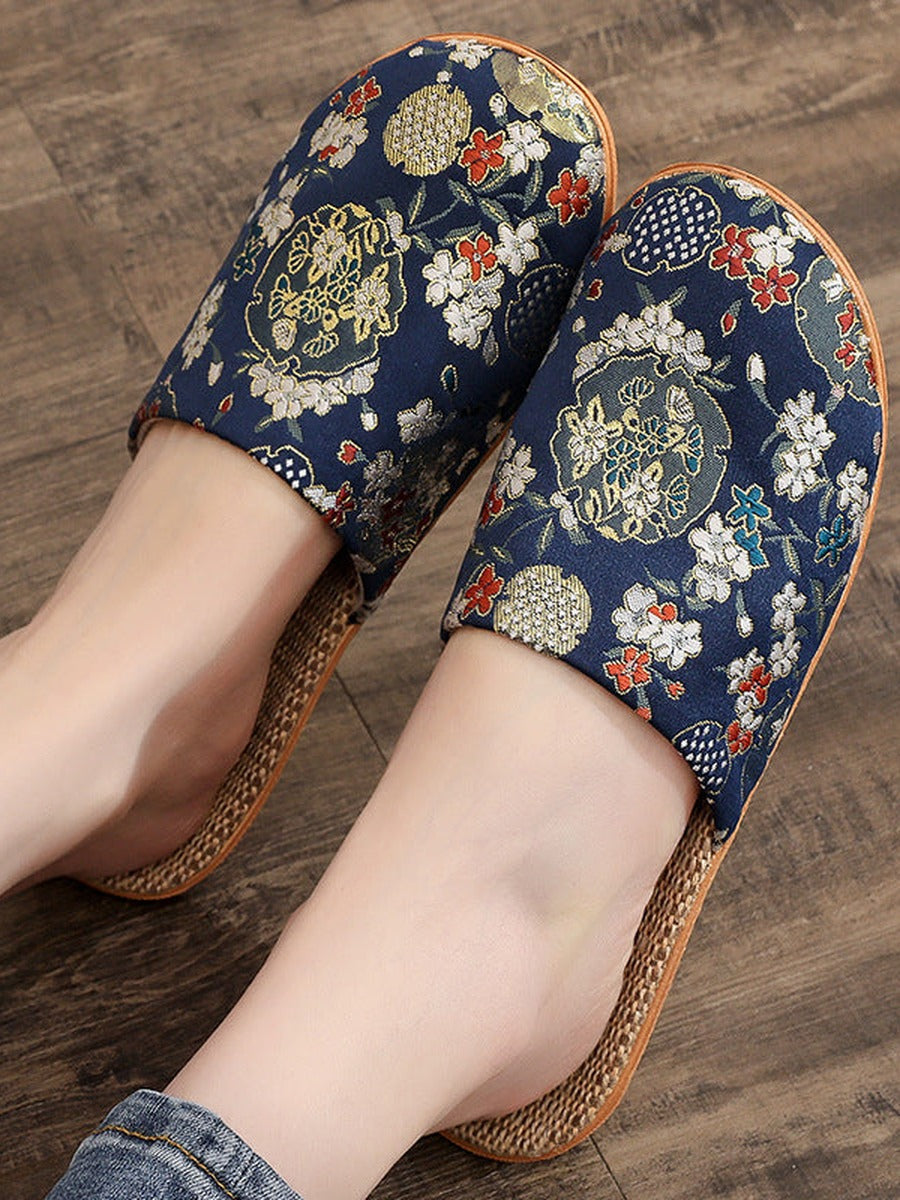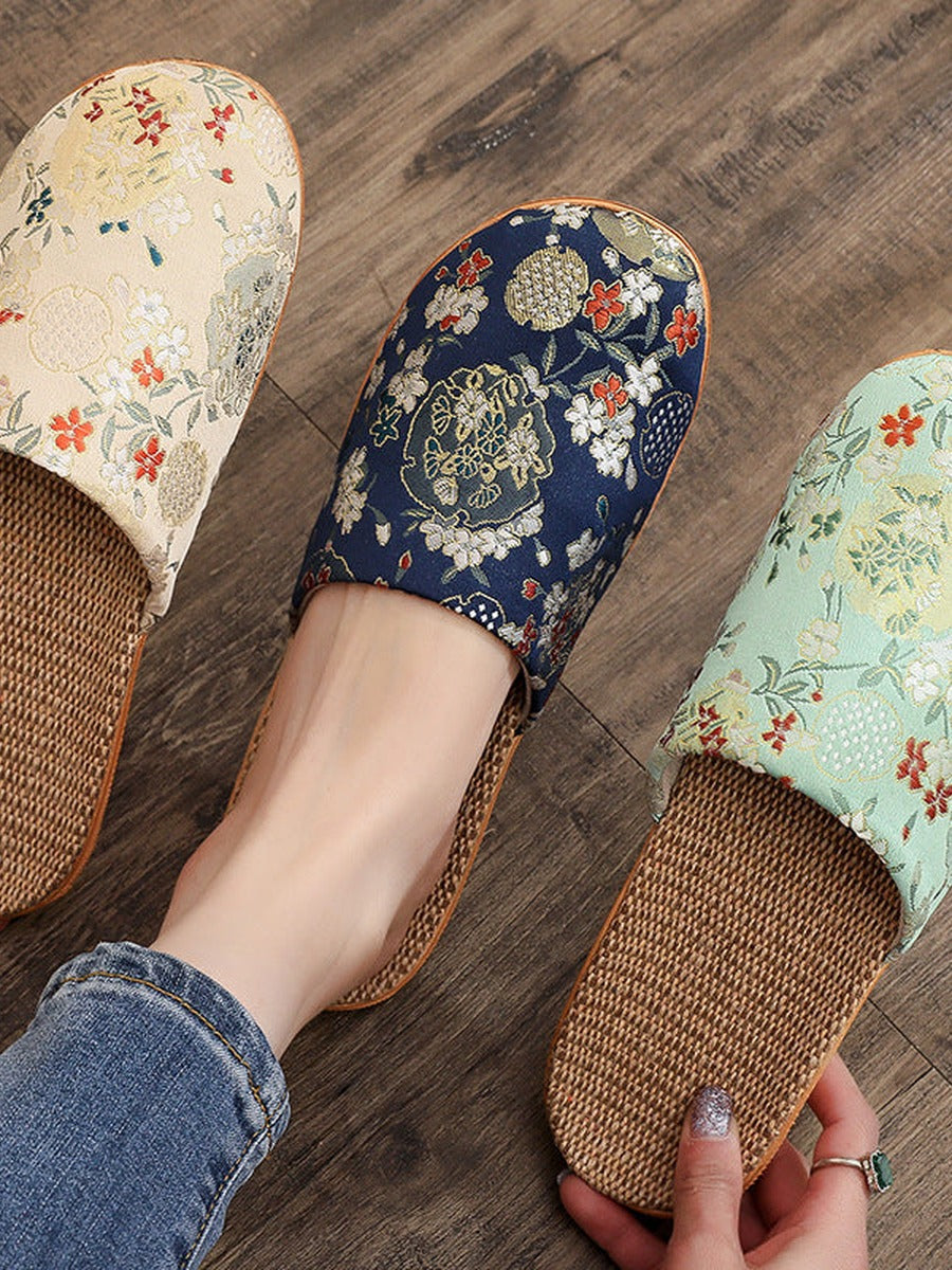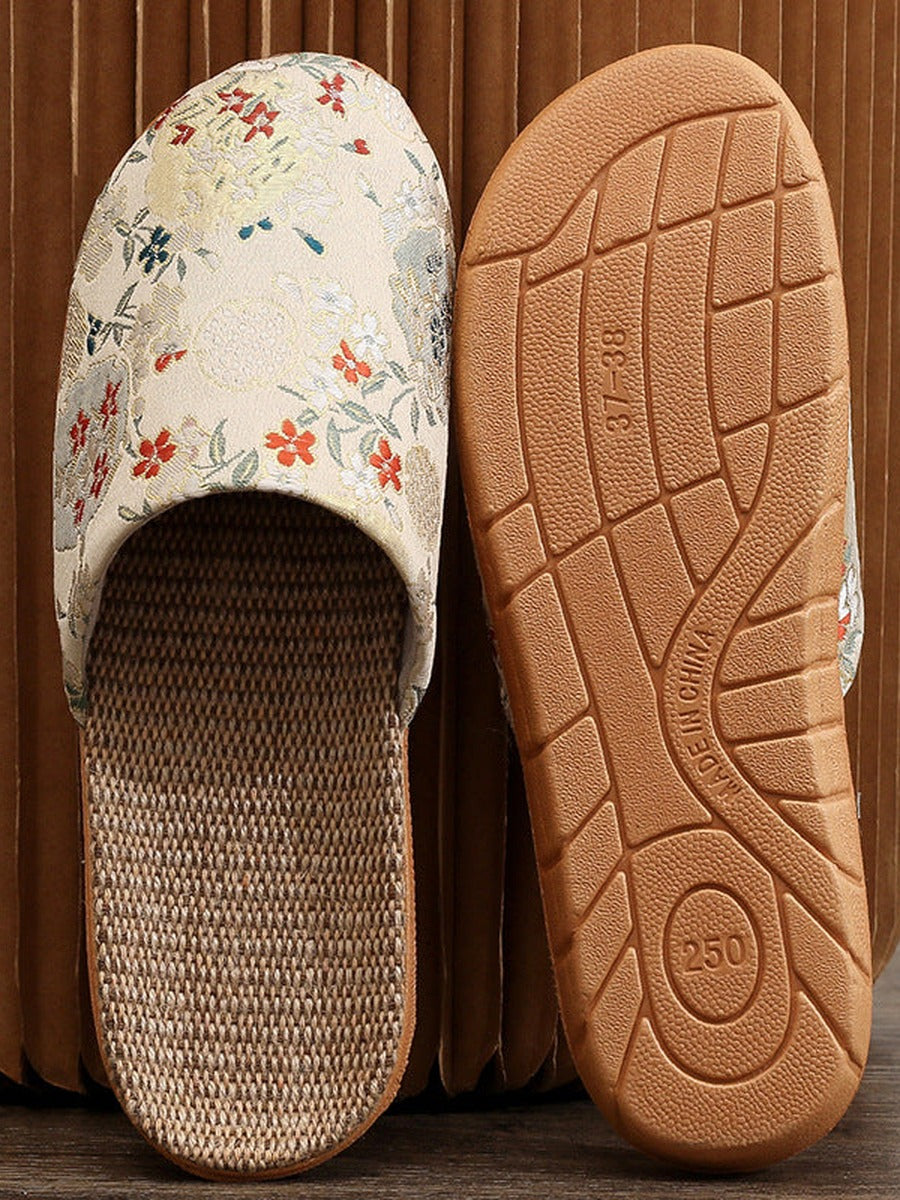 Chinelo feminino vintage de linho bordado em estilo chinês