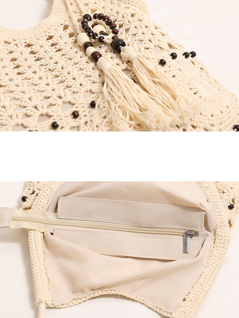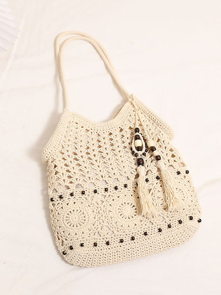 Bolsa de ombro feminina vintage de algodão trançado bolsa de praia