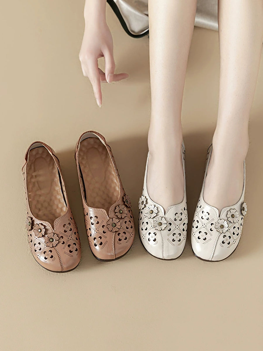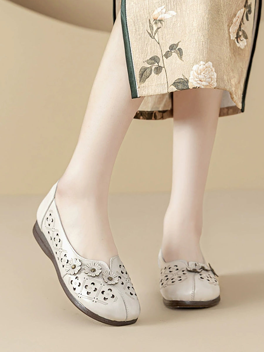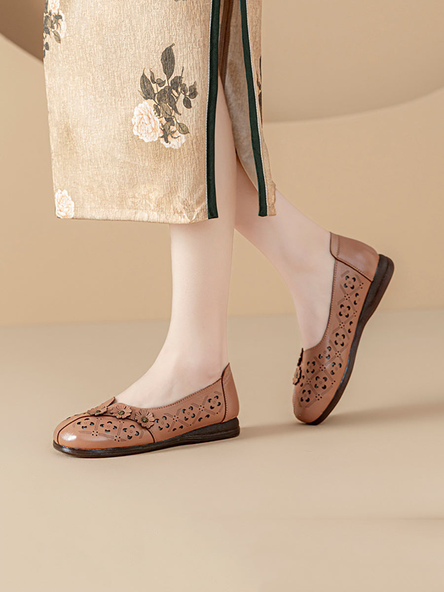 Sandálias femininas vintage de couro legítimo com estampa floral.