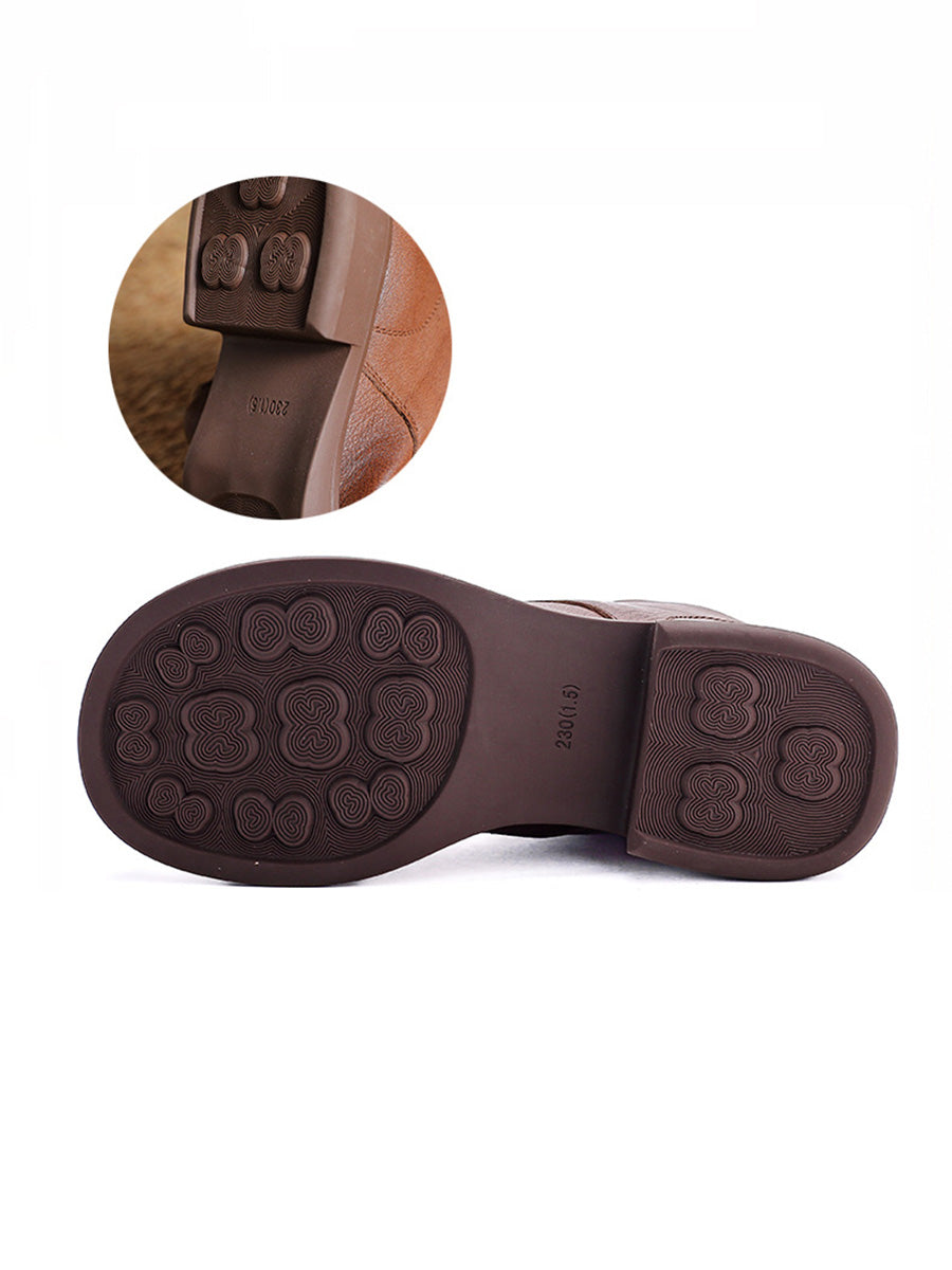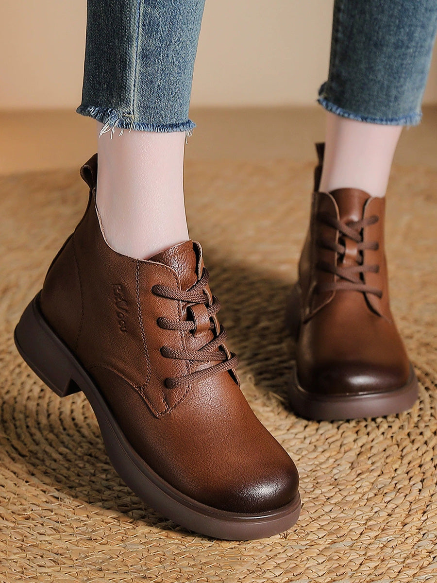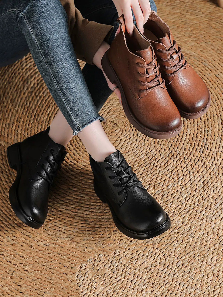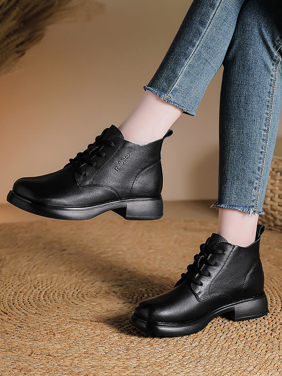 Botas de cano curto femininas vintage em couro legítimo com salto baixo