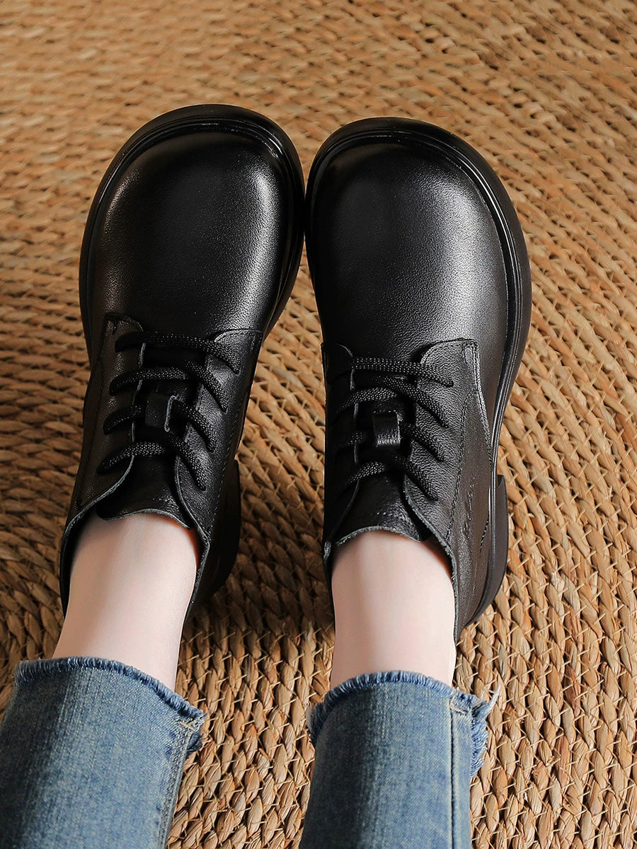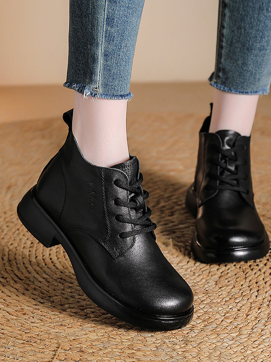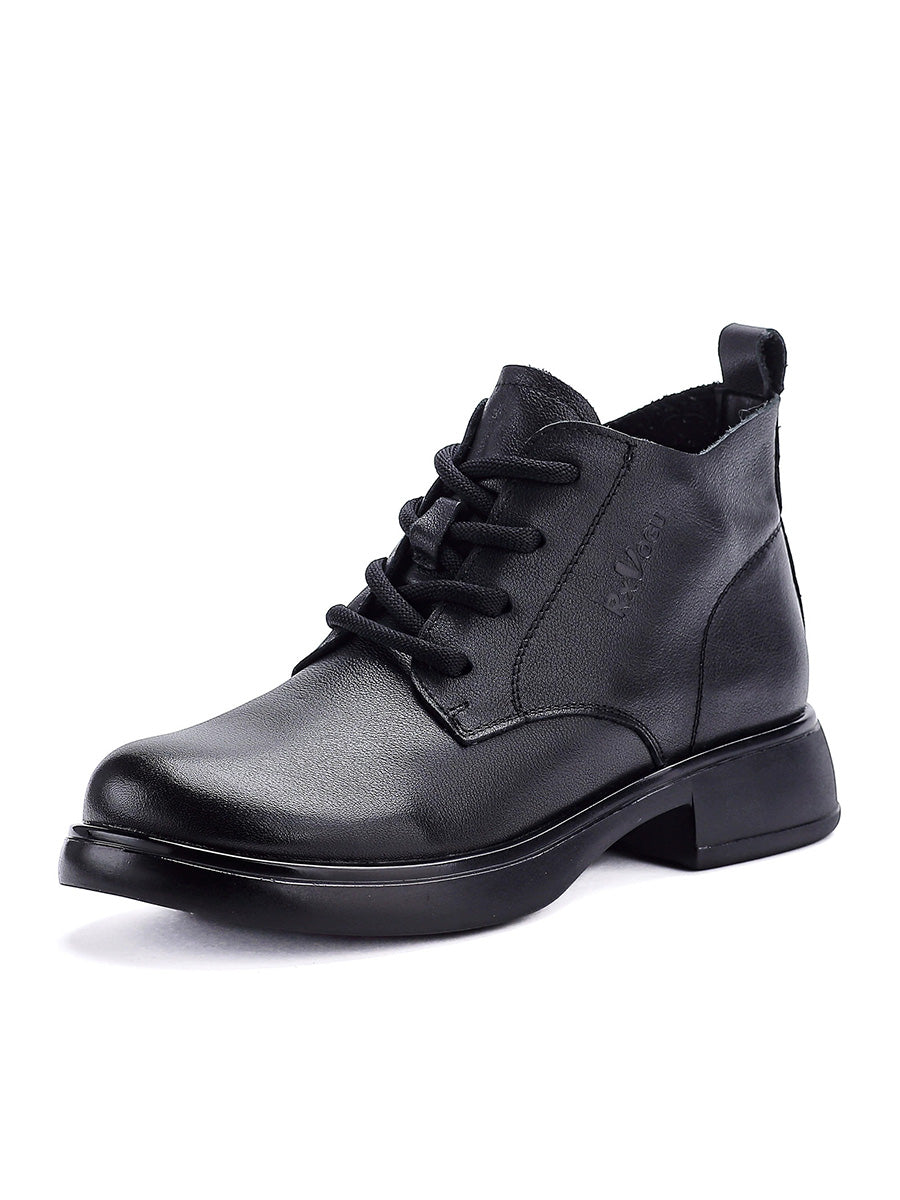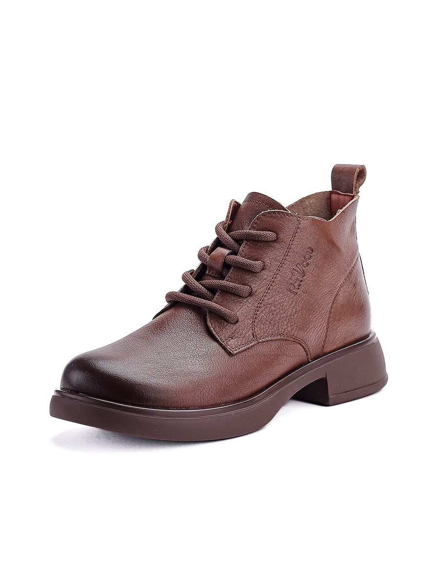 Botas de cano curto femininas vintage em couro legítimo com salto baixo