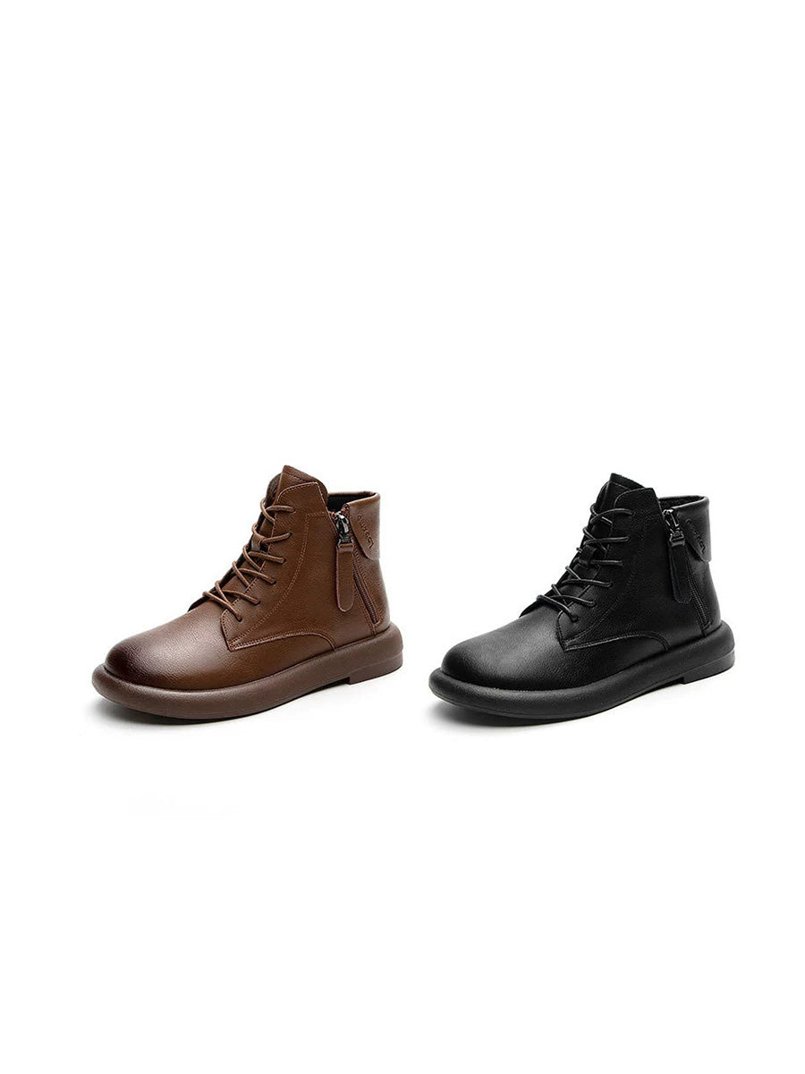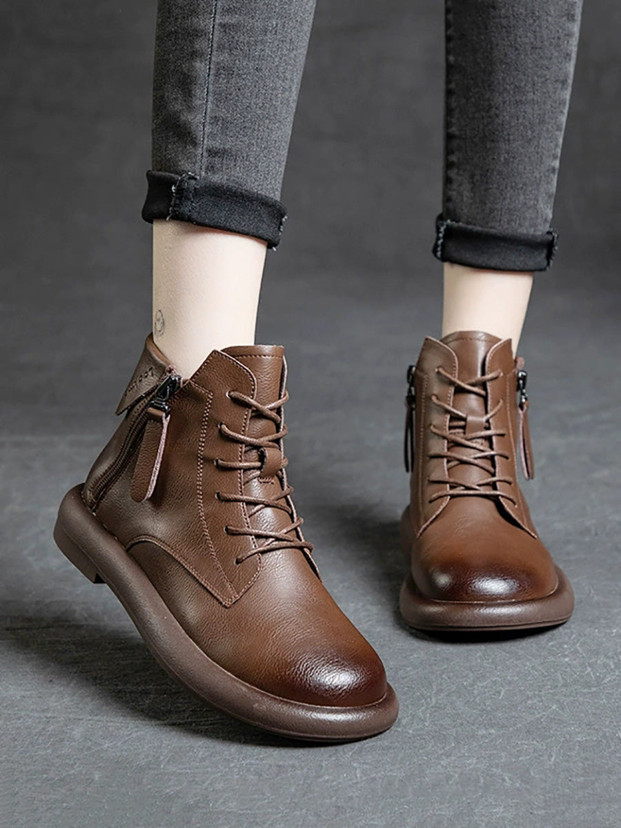Botas de cano curto femininas vintage em couro legítimo com salto baixo
