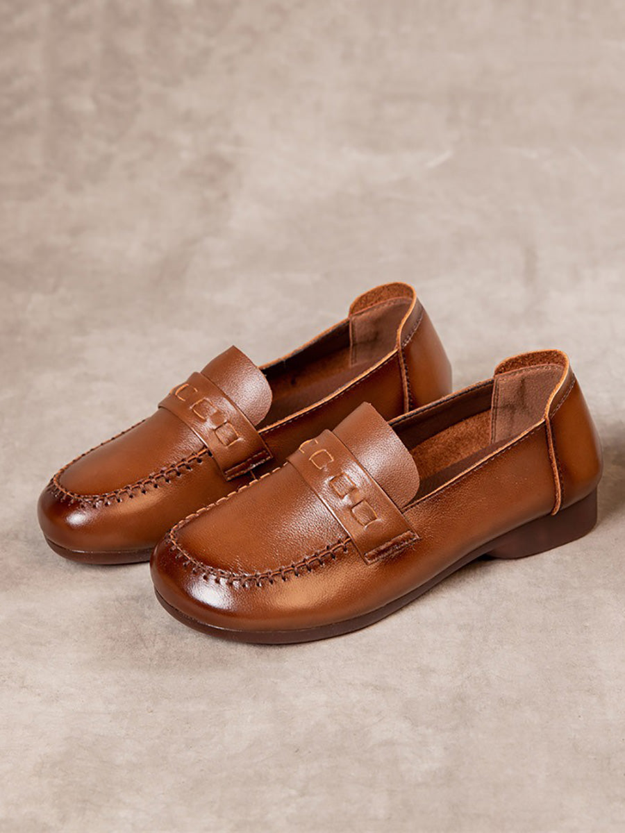 Sapatos de salto baixo de couro legítimo vintage feminino
