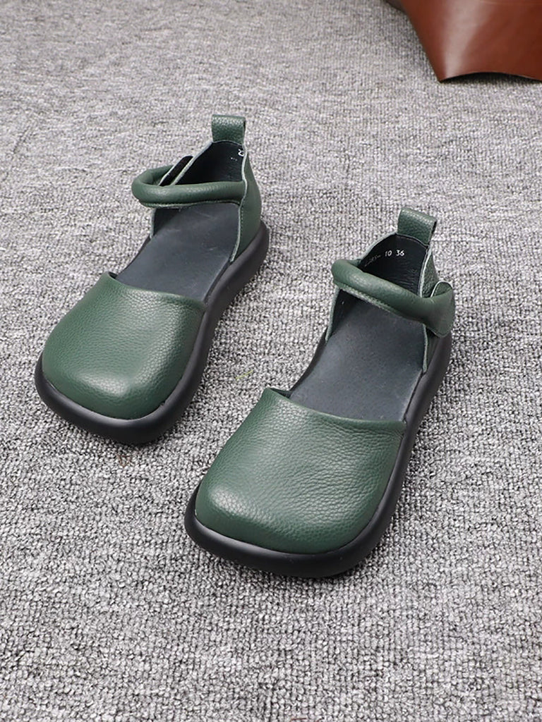 Sapatos baixos macios de couro legítimo vintage para mulheres