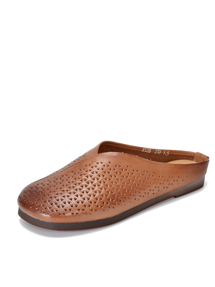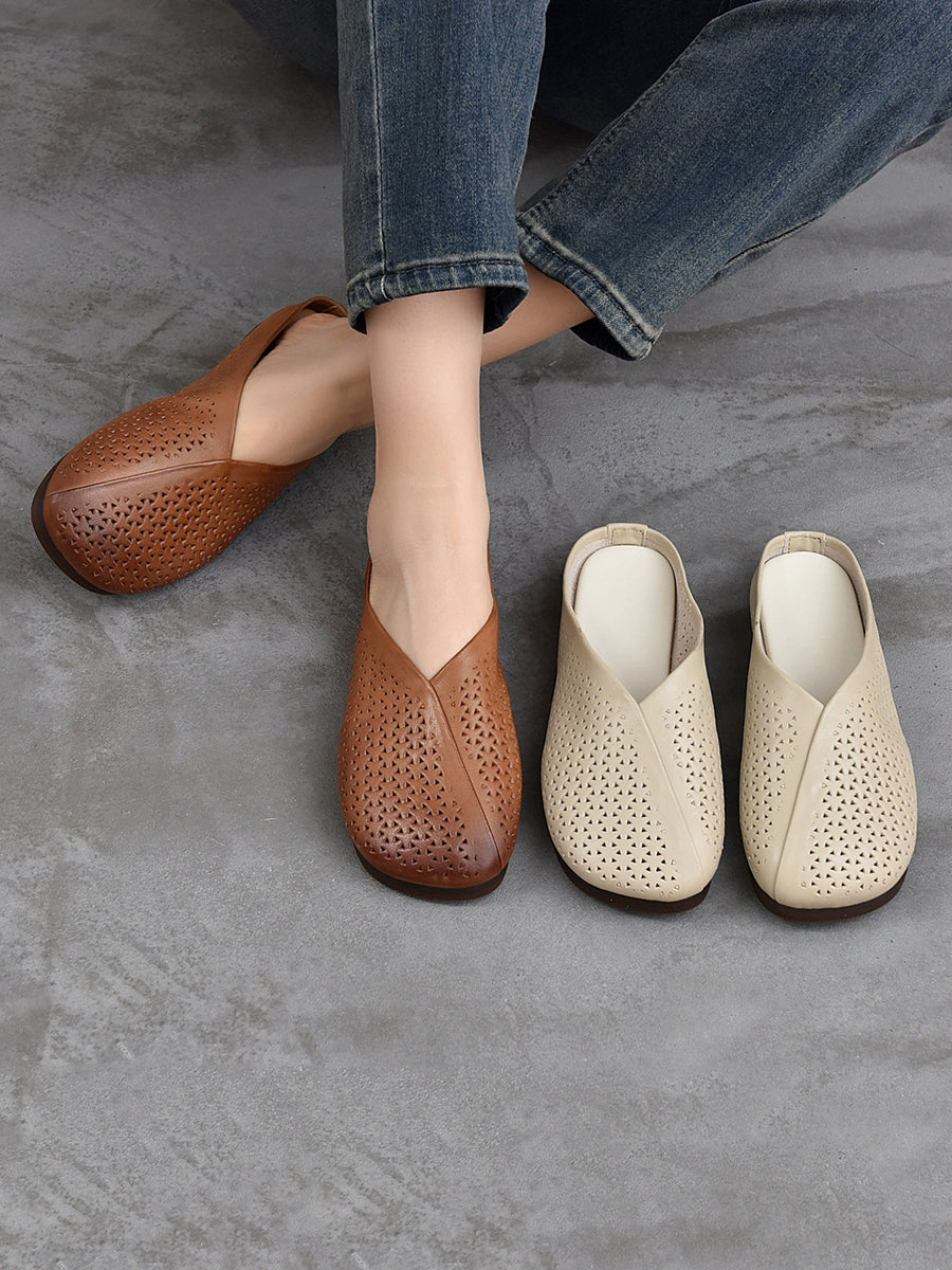 Chinelo feminino vintage de couro genuíno macio e rasteiro