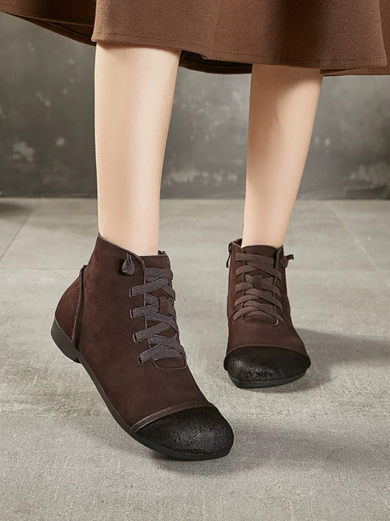 Botas femininas vintage de couro legítimo emendadas no tornozelo