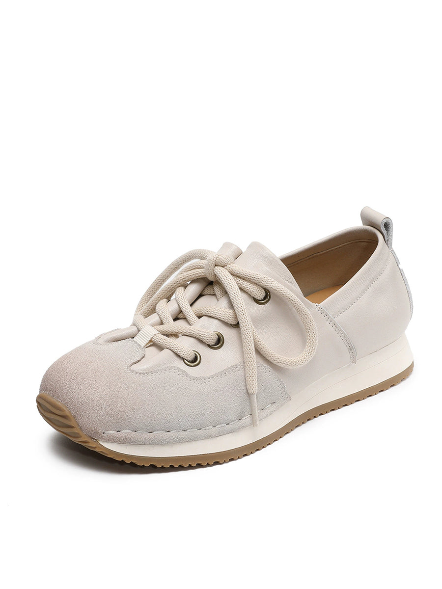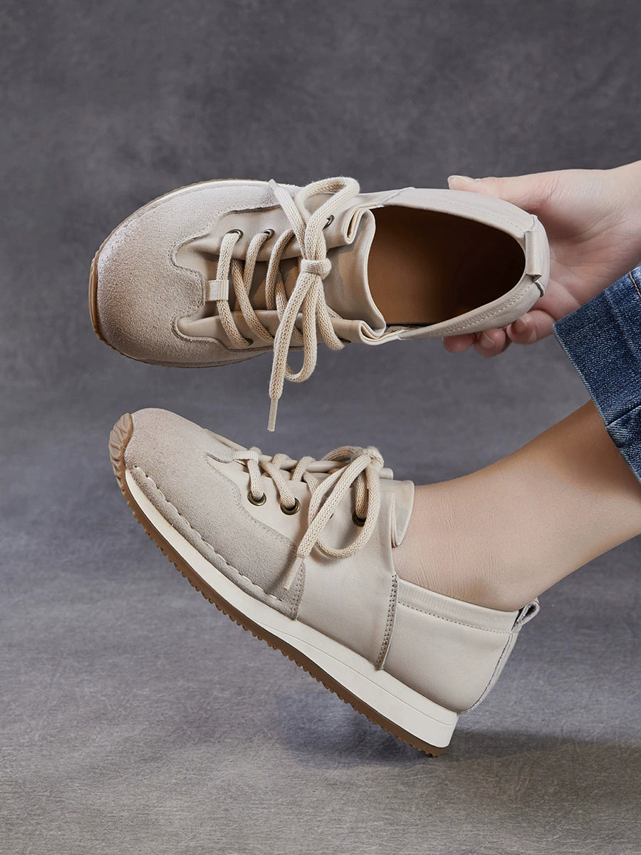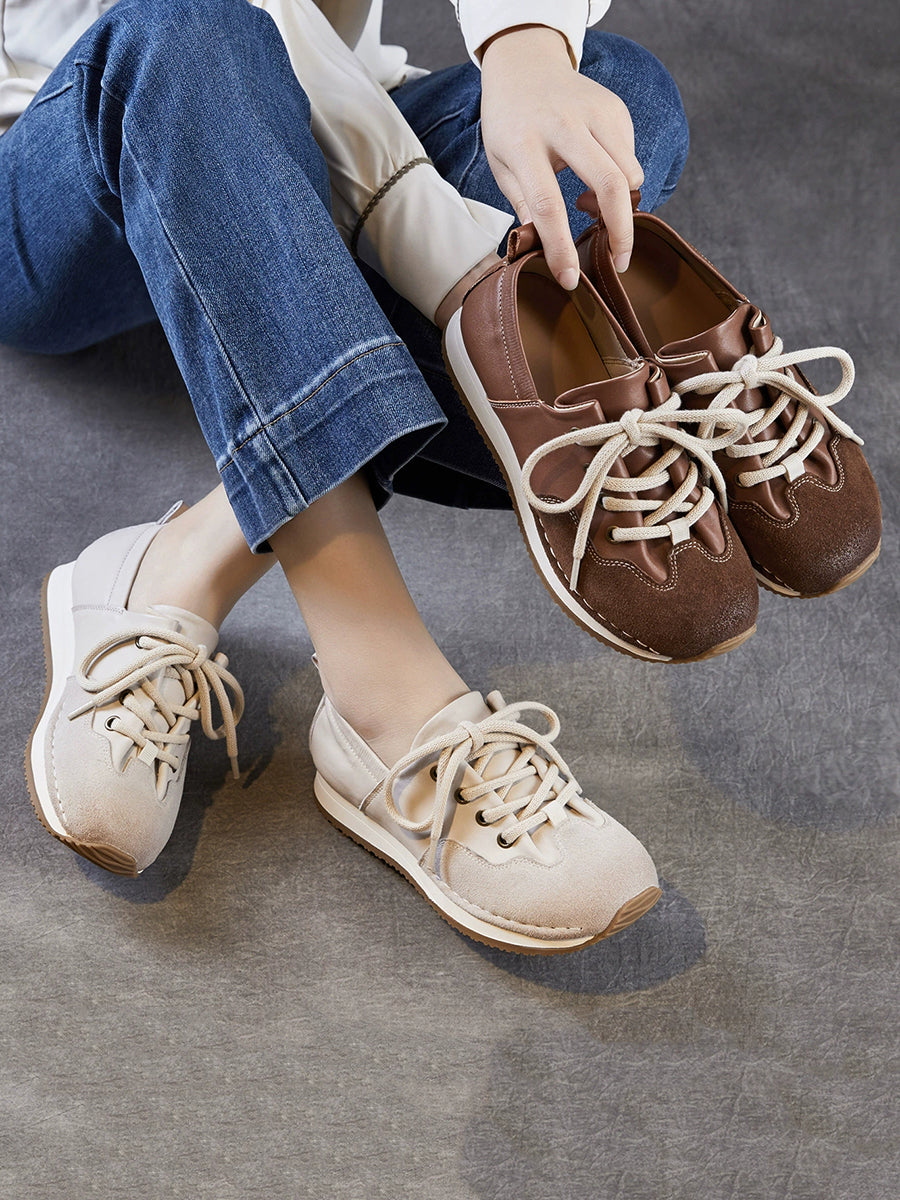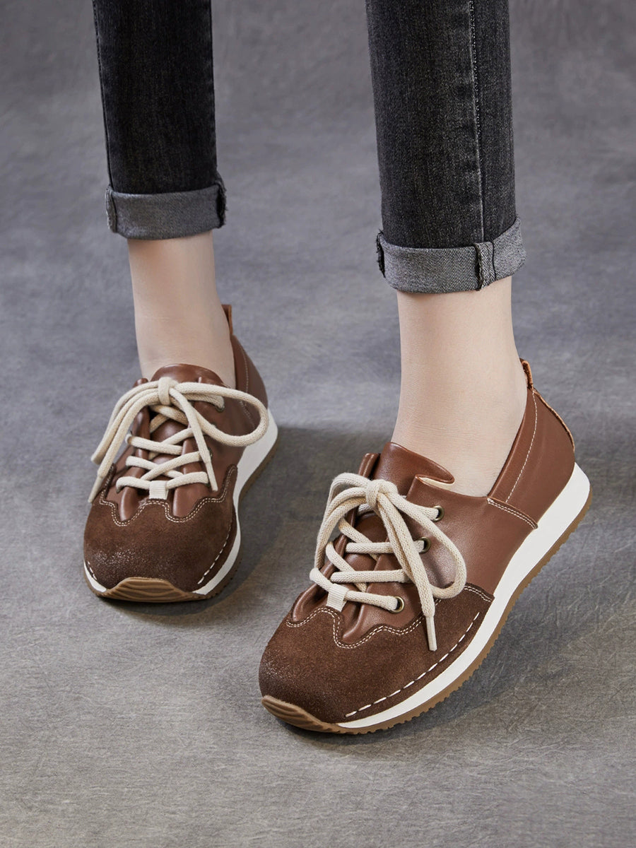 Sapatos femininos vintage de couro genuíno com detalhes em patchwork
